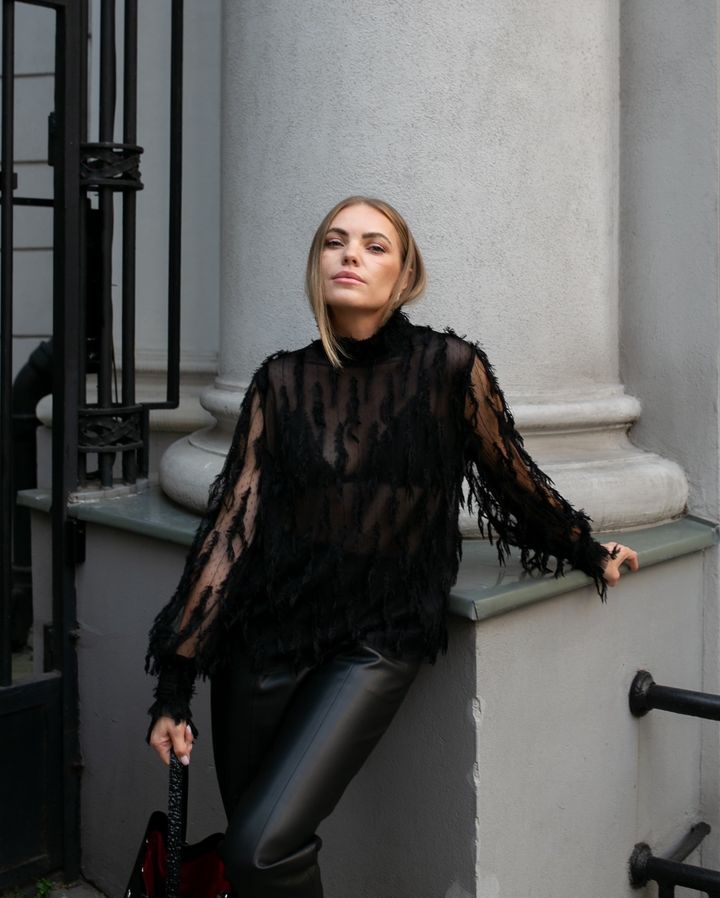En semi transparent bluse, med smukke fjerlignende applikationer designet i striber, og en elegant finish ved hals og ærmer. Blusen har en normal pasform.