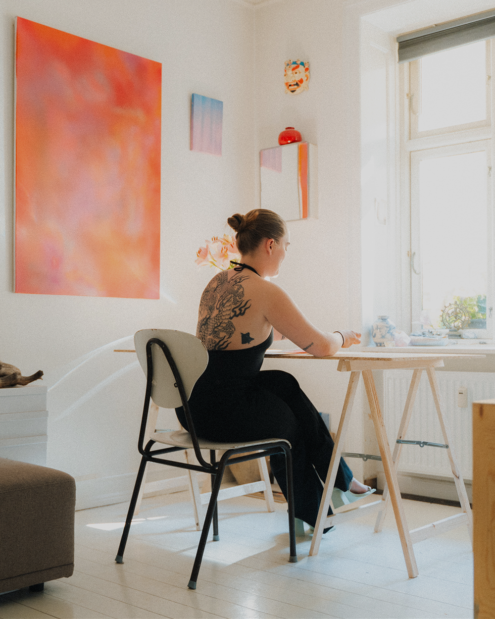 Jeg er en kunstner baseret i London. Jeg arbejder primært med abstrakte oliemalerier og har to uddannelser inden for grafik og illustration fra Royal College of Art og Camberwell College...