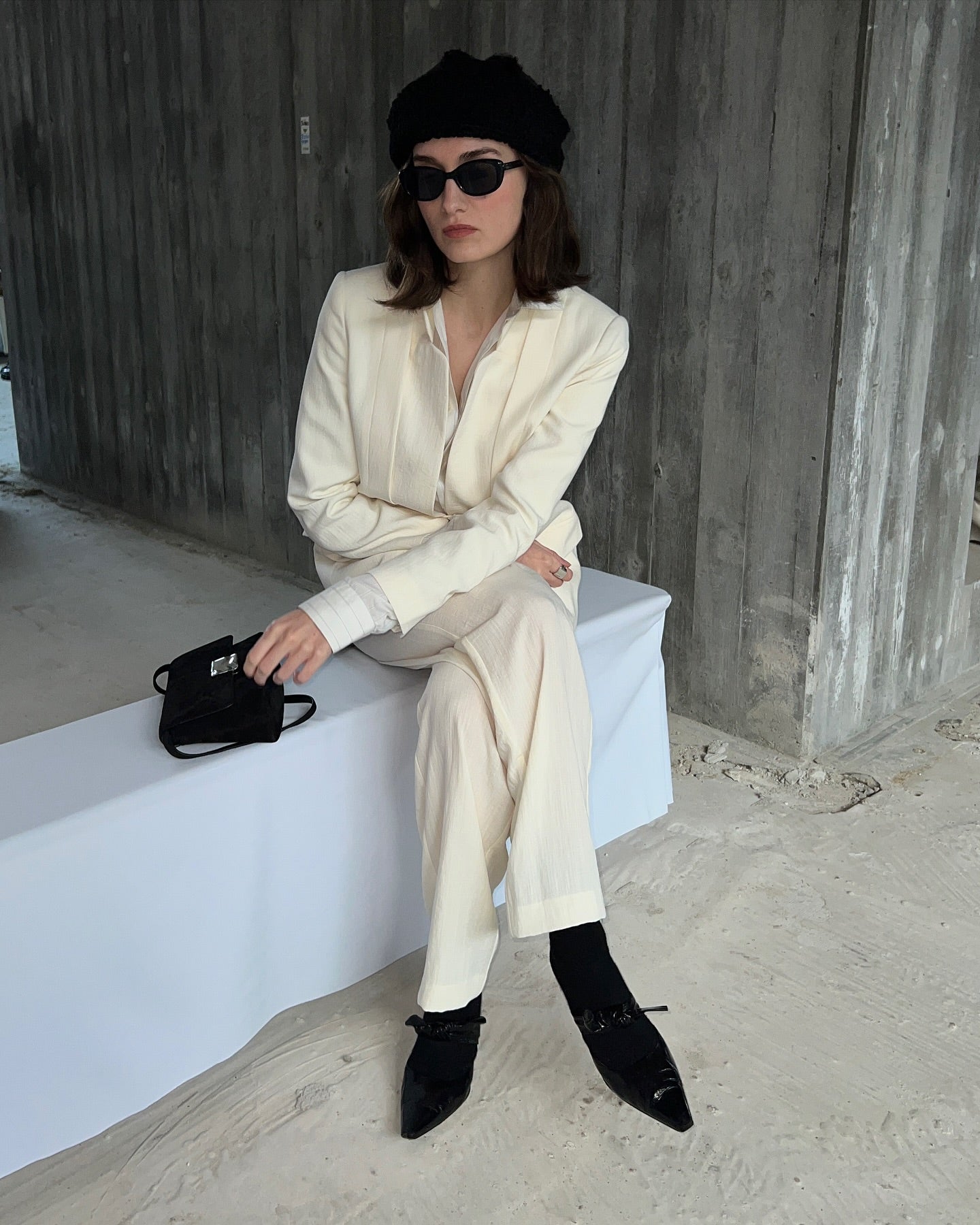 Smukke jakkesæts bukser med elegante detaljerede lommer i siderne. Disse bukser har en lynlås lukning foran.