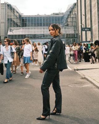 Læderjakke designet med chunky lynlåse og smukke rillede polstrings detaljer. Denne jakke har lommer, en normal pasform og er lavet af 100% lammelæder. Fås i farven Sort.