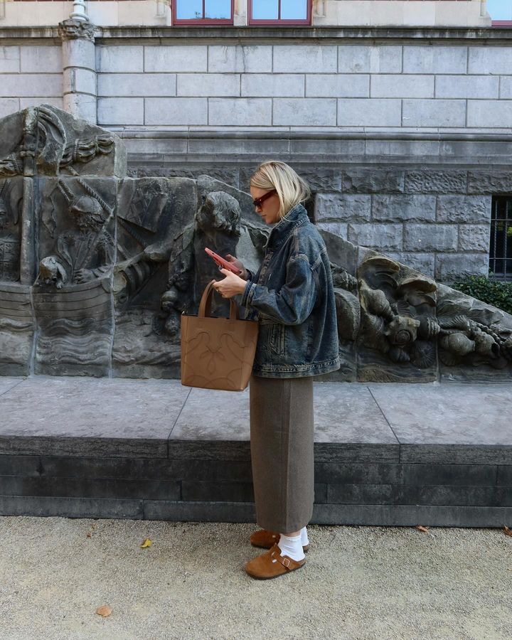 Stor taske med elegante western-inspirerede syninger. Denne alsidige taske er designet med muligheden for at benytte en skulderrem eller en mindre hank. Tasken er lavet af læder.