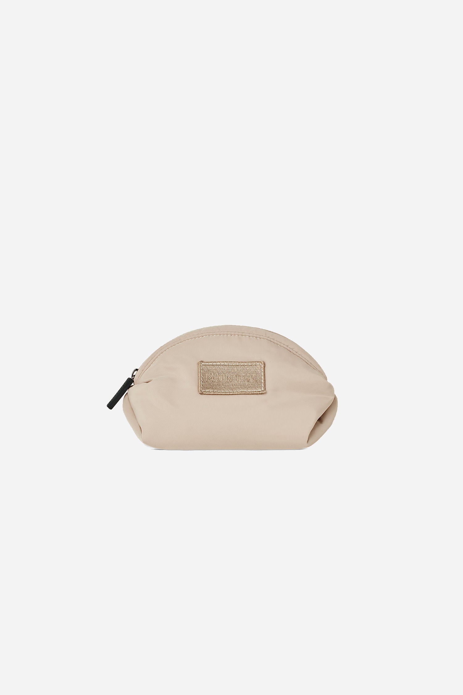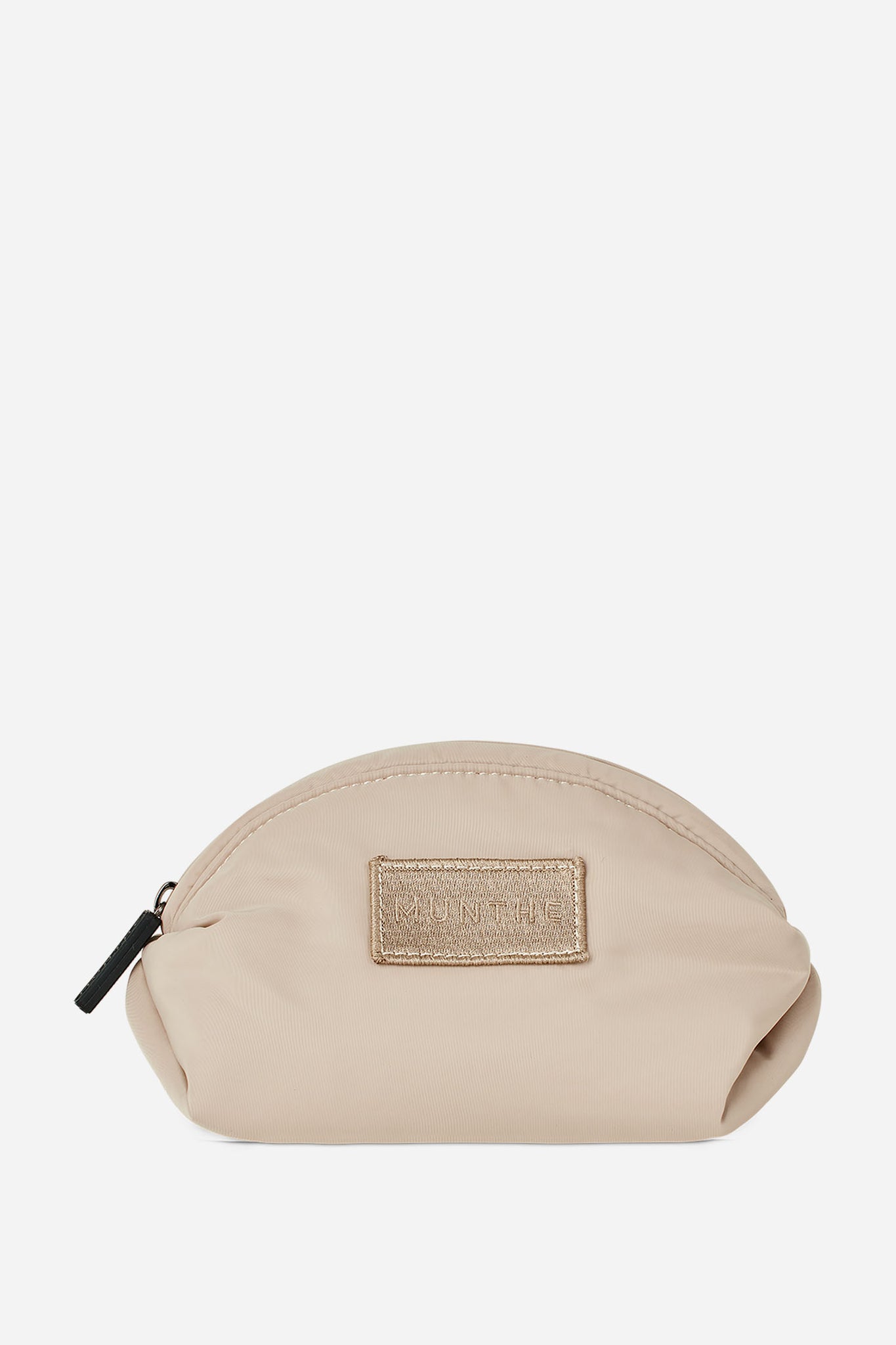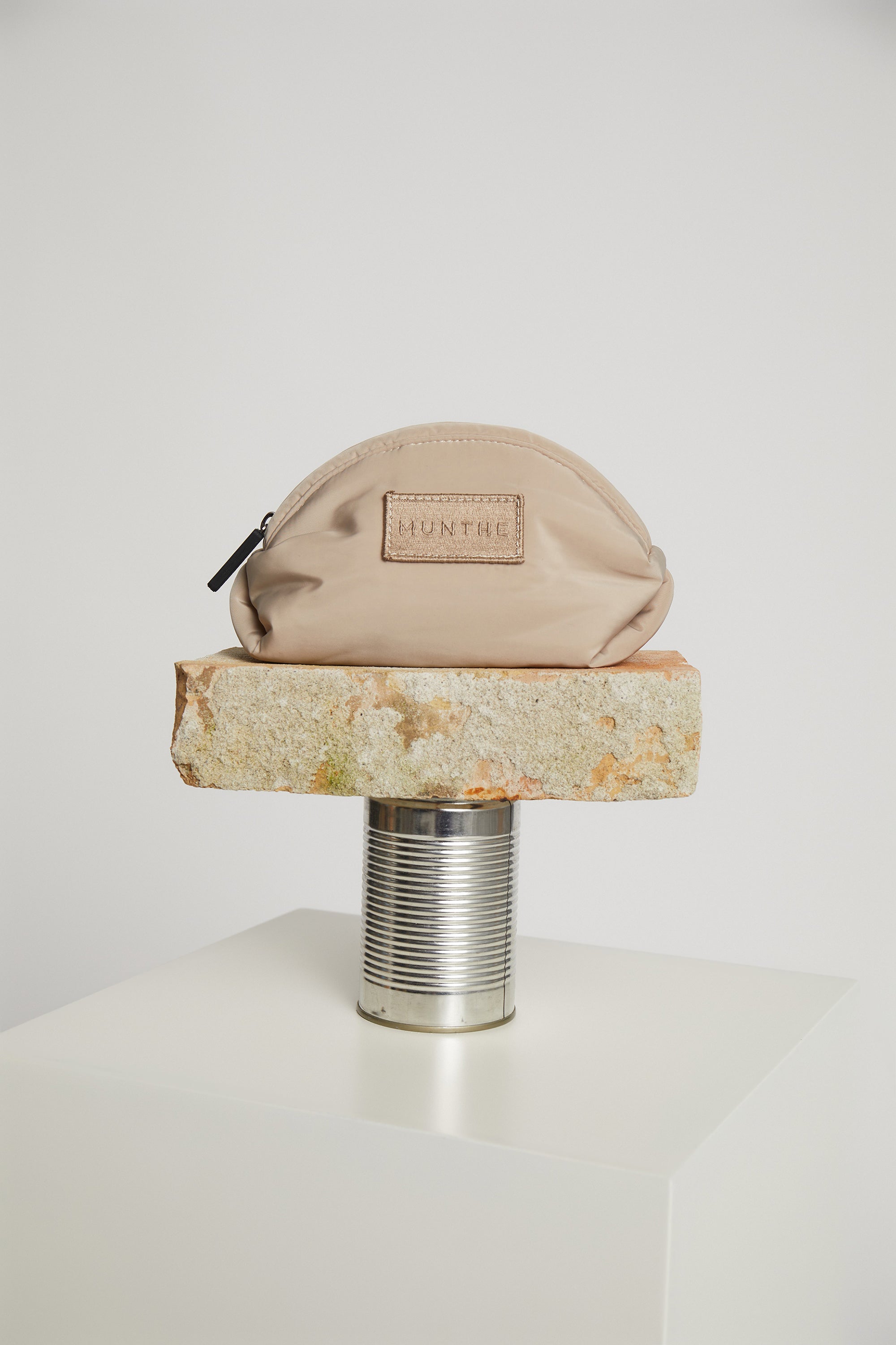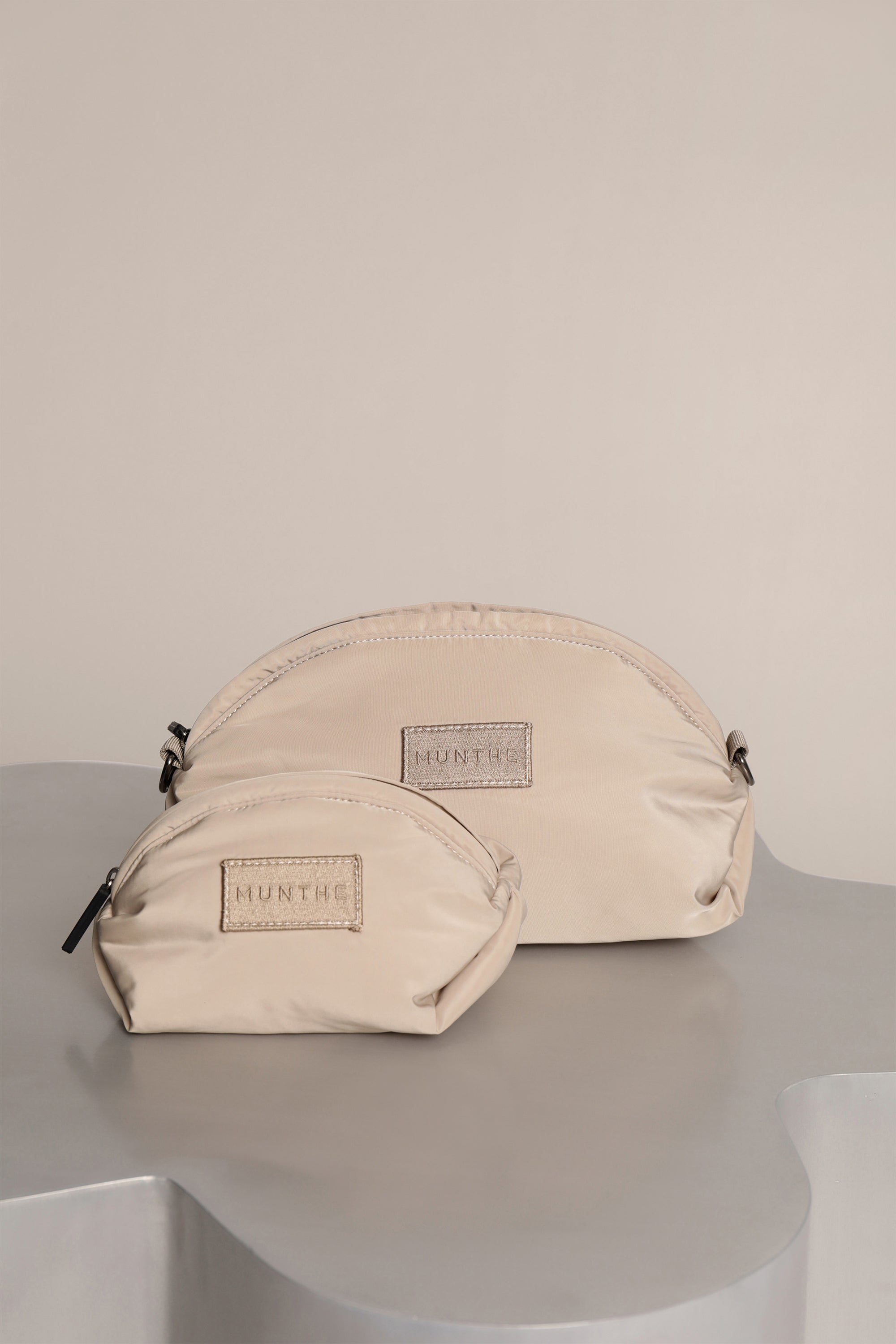 En lille taske med et elegant MUNTHE logo og lynlås. Tasken har en størrelse som kan indeholde nøgler, makeup eller andre små ting. Tasken er den lille taske af de to tasker på billedet.