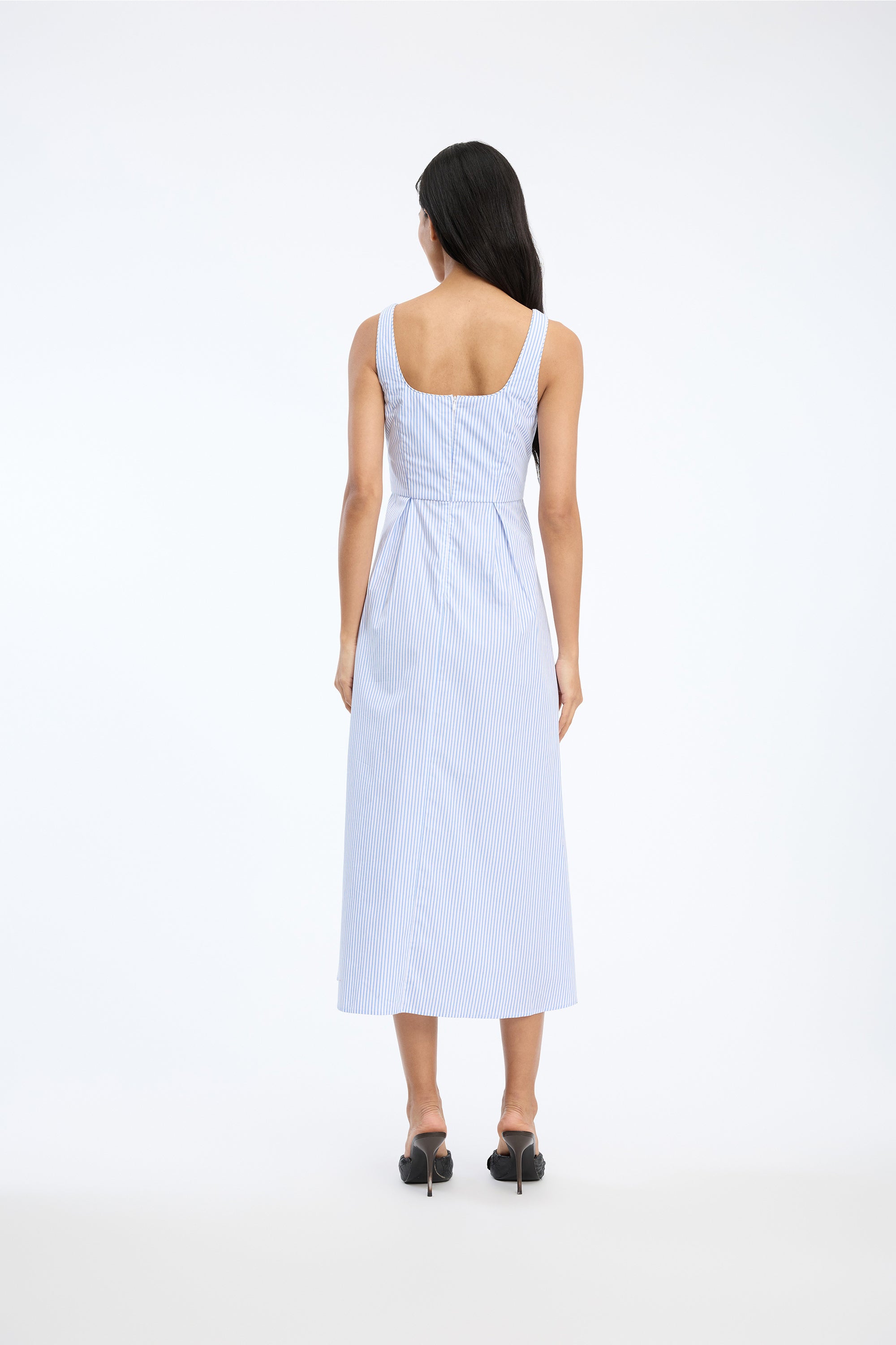 Kjole i en struktureret, blomsterpræget blondekvalitet med en tætsiddende overdel og en let A-formet silhuet. Modellen har skulderstropper, rund udskæring og en lynlås i ryggen. Den teksturerede overflade skaber et diskret spil i materialet, mens silhuetten giver kjolen en flatterende pasform.