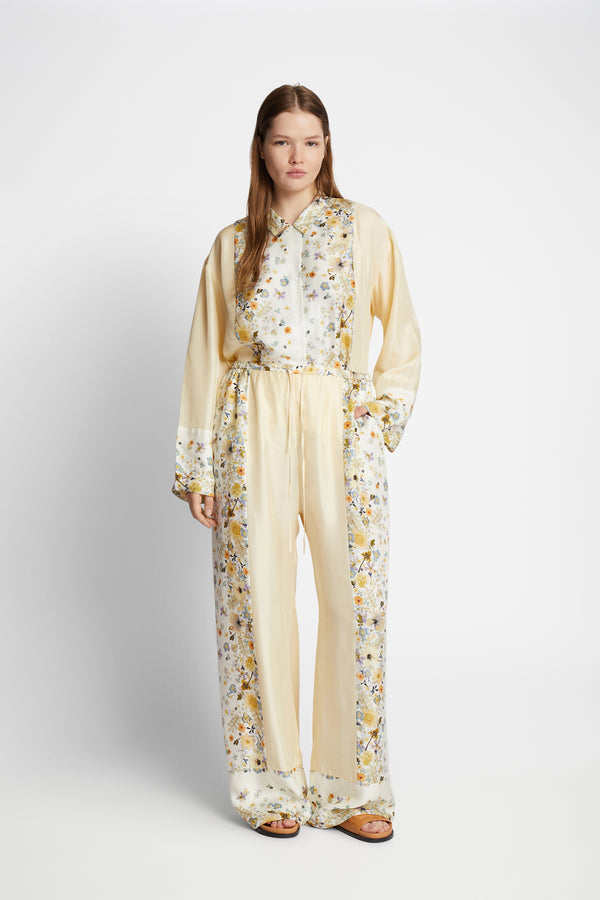 Bukser lavet af 100% silke, designet med et elegant print, som er lavet af blomster Naja Munthe har plantet i sin egen have. Disse bukser har lommer og en bindebånds detalje i taljen.