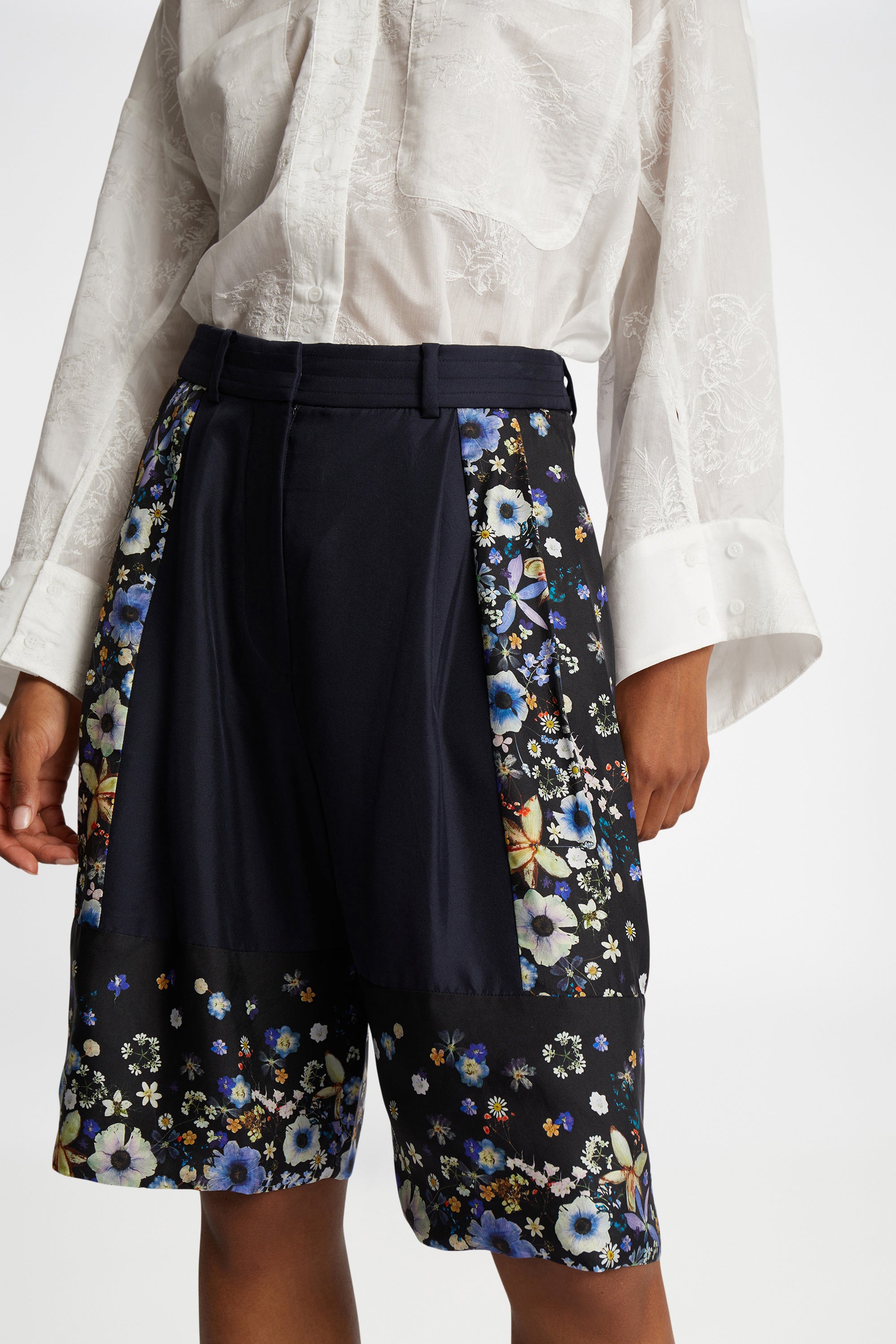 Smukke shorts lavet af 100% silke, designet med et elegant print lavet af blomster, Naja Munthe har plantet i sin egen have. Disse shorts har lommer, bæltestropper og en smukt designet linning.