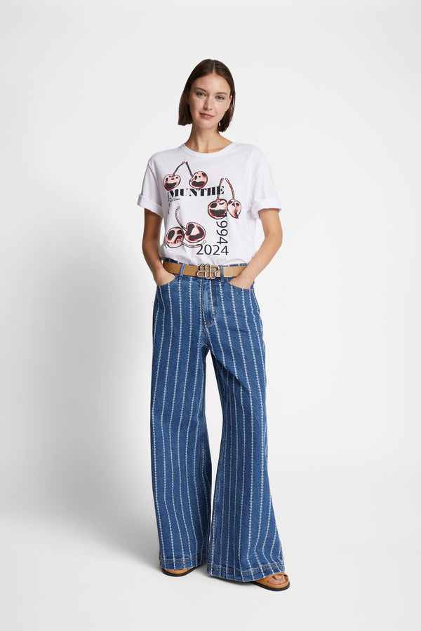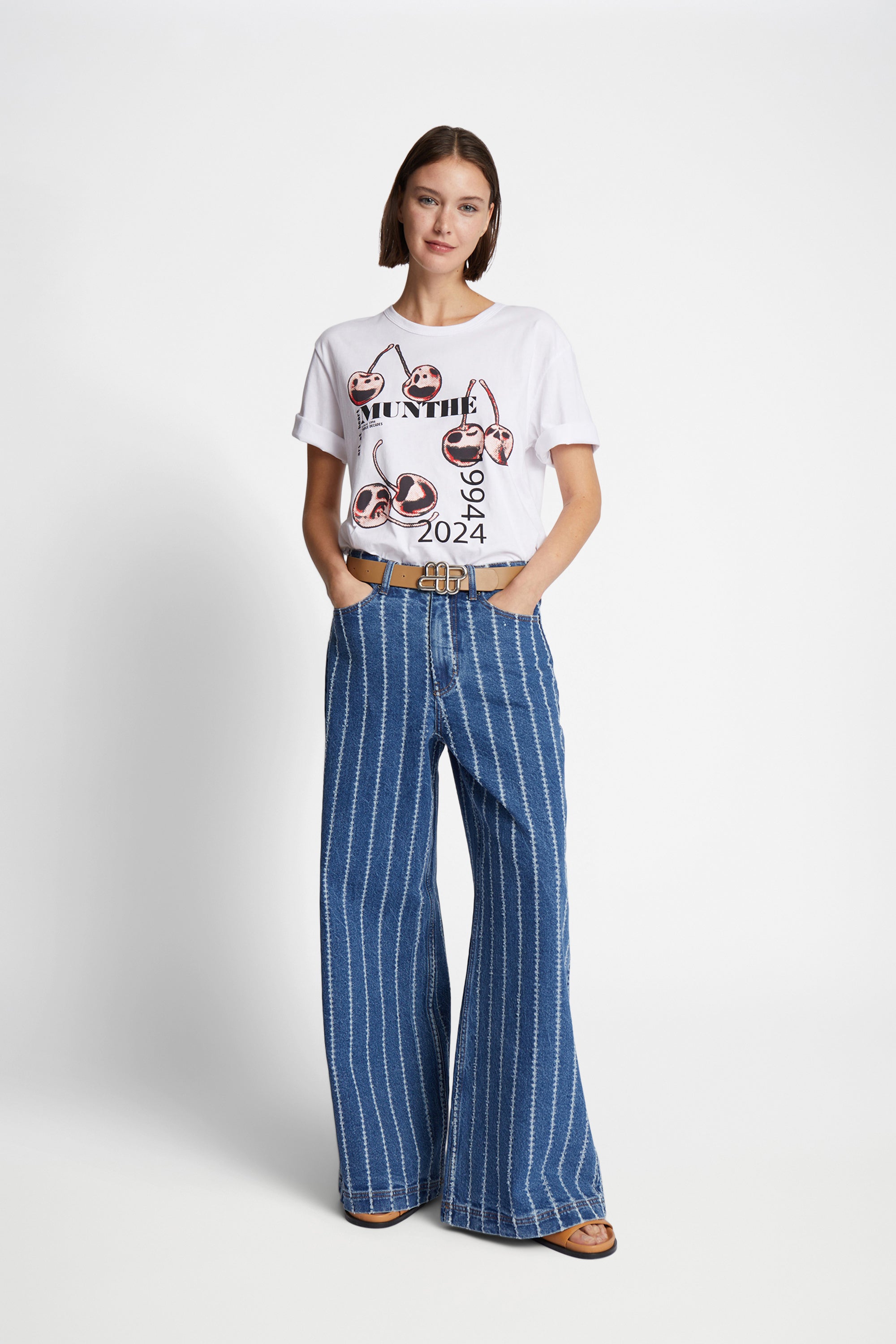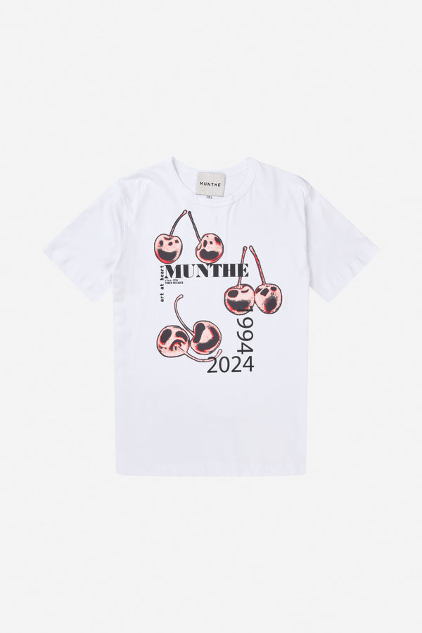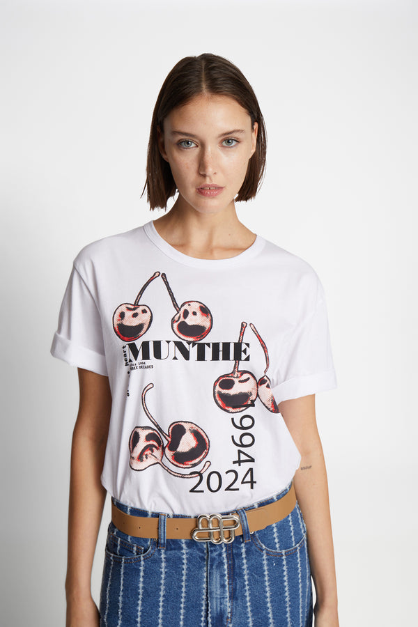 Elegant T-shirt med et grafisk MUNTHE 30-års jubilæumsprint. T-shirten har en normal pasform, rund hals, korte ærmer og er lavet af 100% økologisk bomuld.