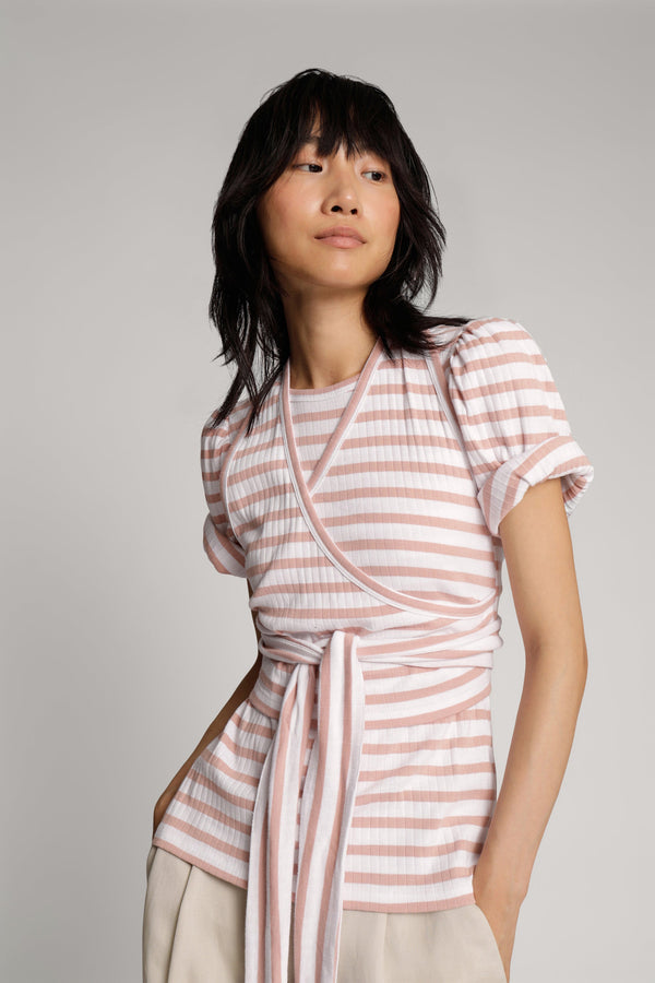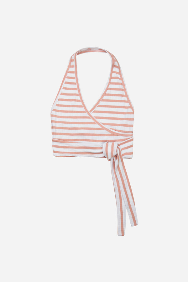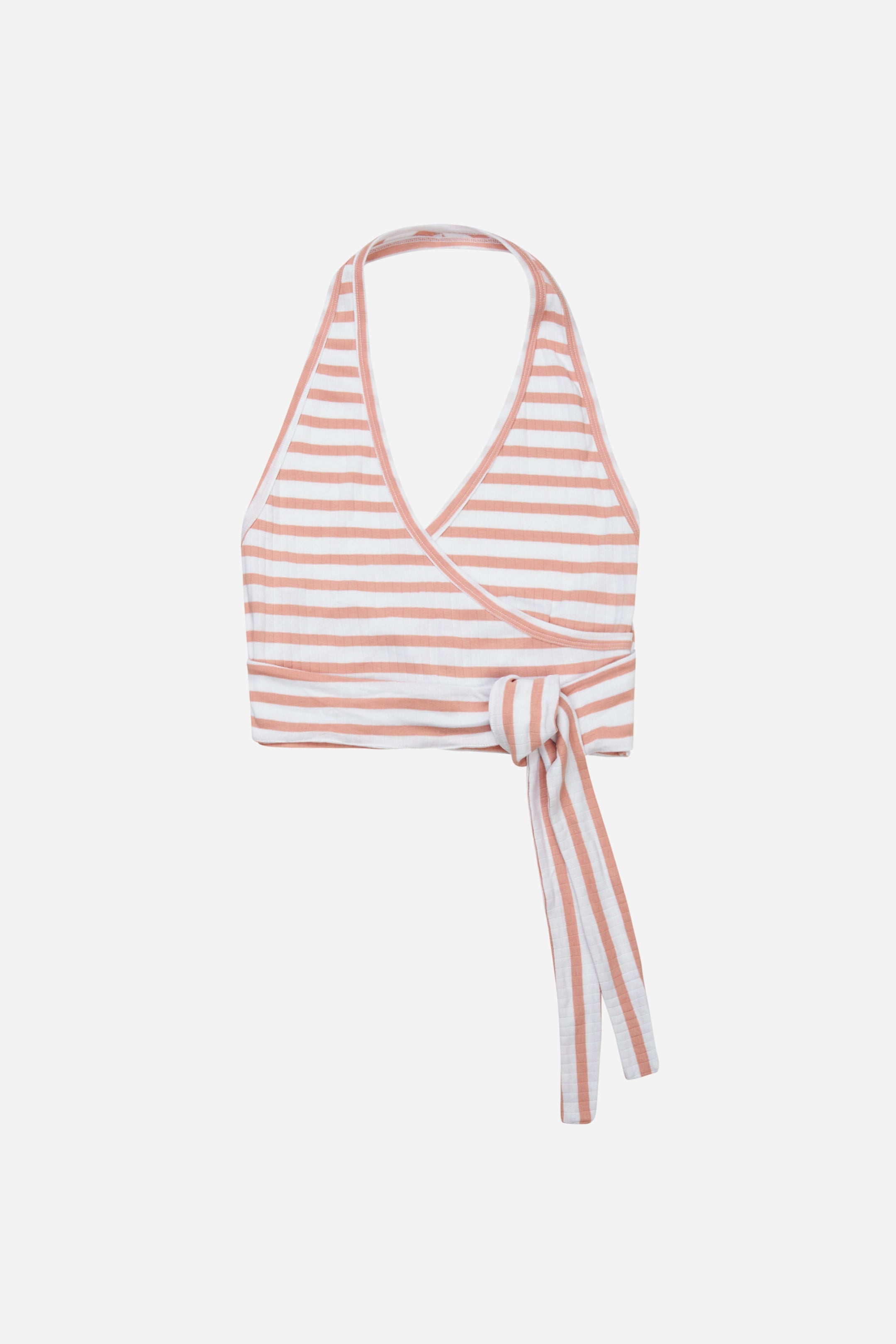 Stribet halterneck top med en elegant binde detalje omkring taljen. Toppen er lavet af 100% økologisk bomuld. Fås i farven rose.