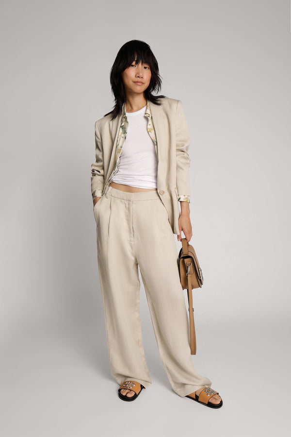 Klassiske jakkesæts bukser med elegante detaljer som pressefolder og lommer i siderne. Bukserne har lynlås foran. Fås i farven gul eller kit.