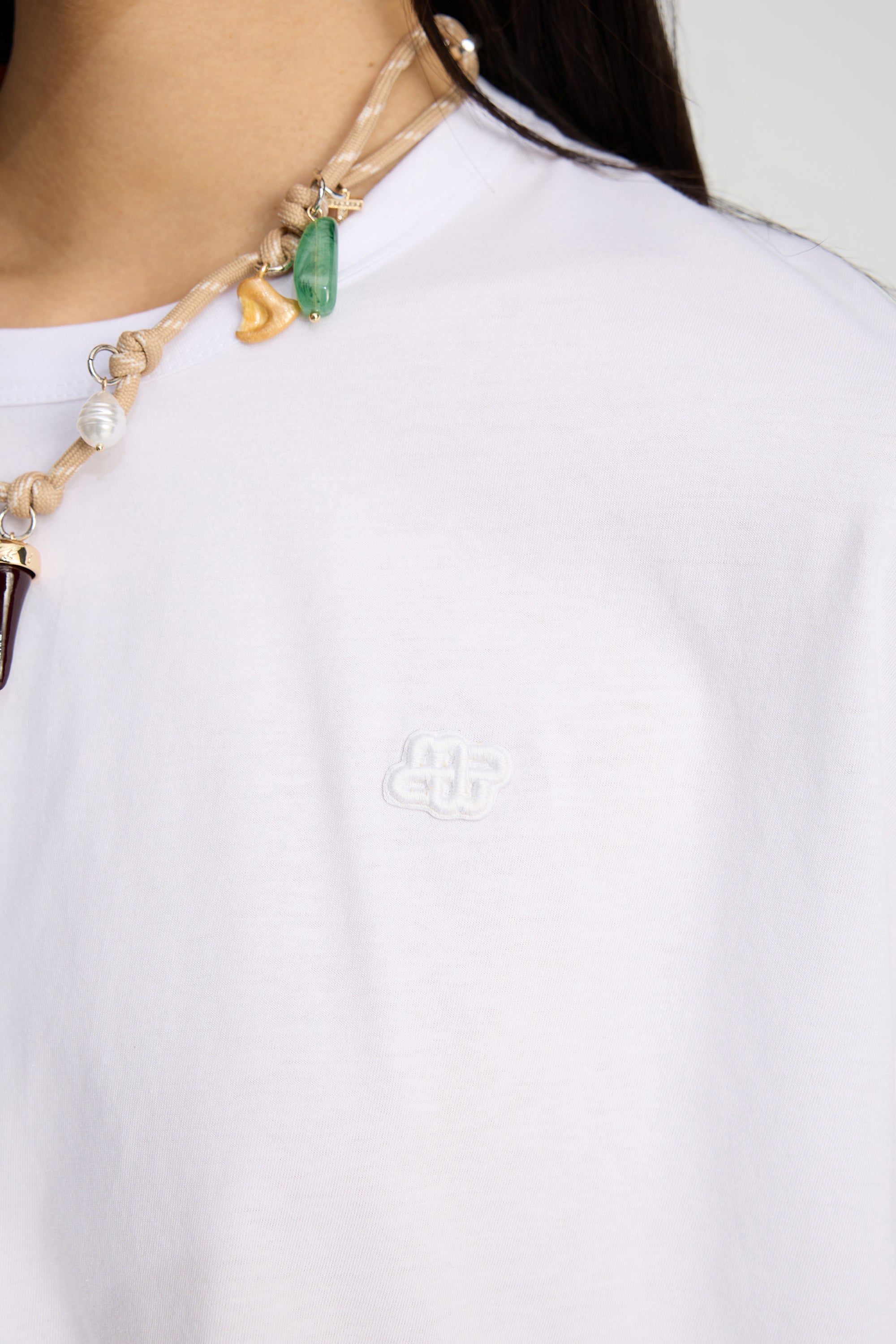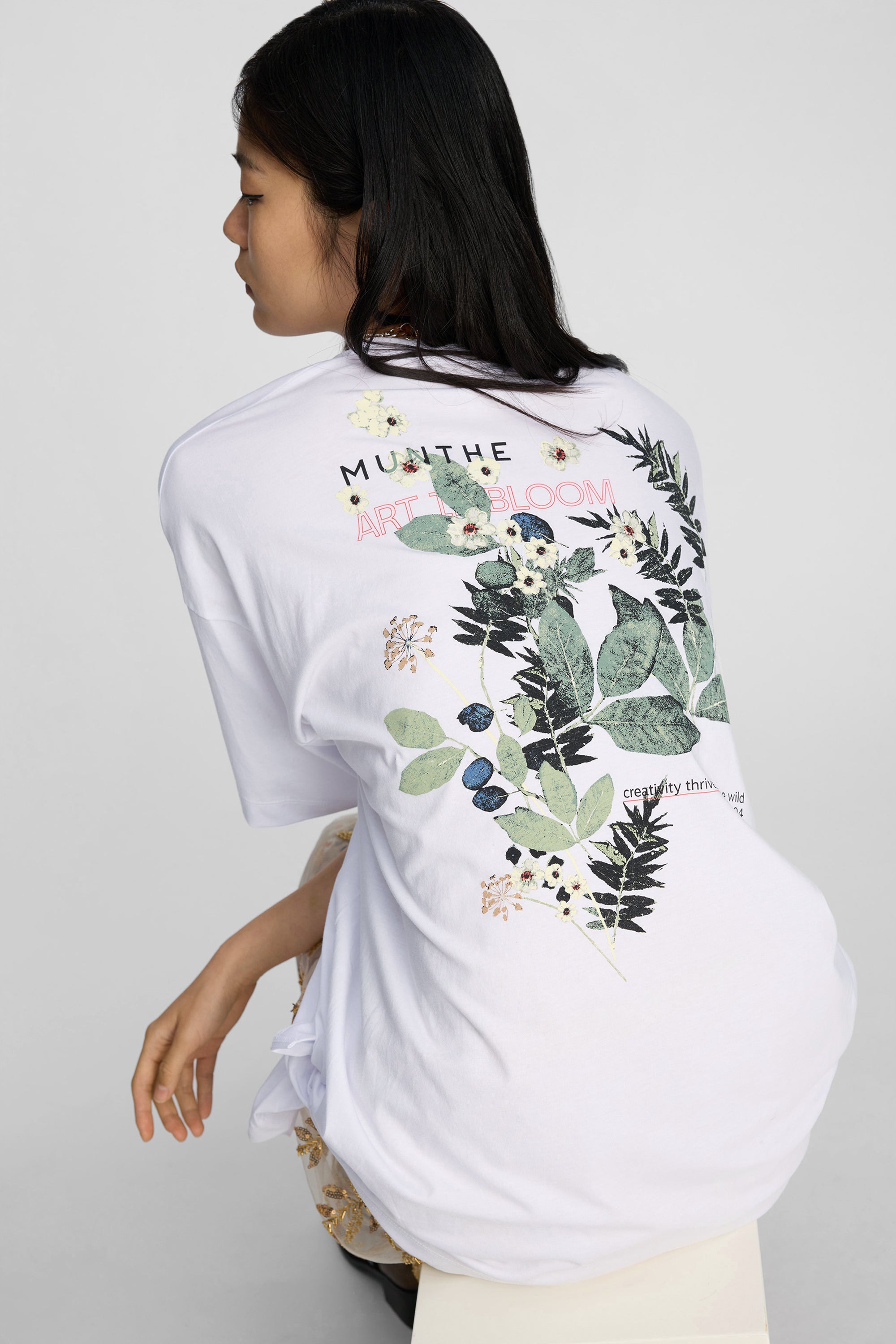 T-shirt med natur print på ryggen og diskret MUNTHE emblem på brystet. Den har en løs pasform, rund halsåbning og korte ærmer.