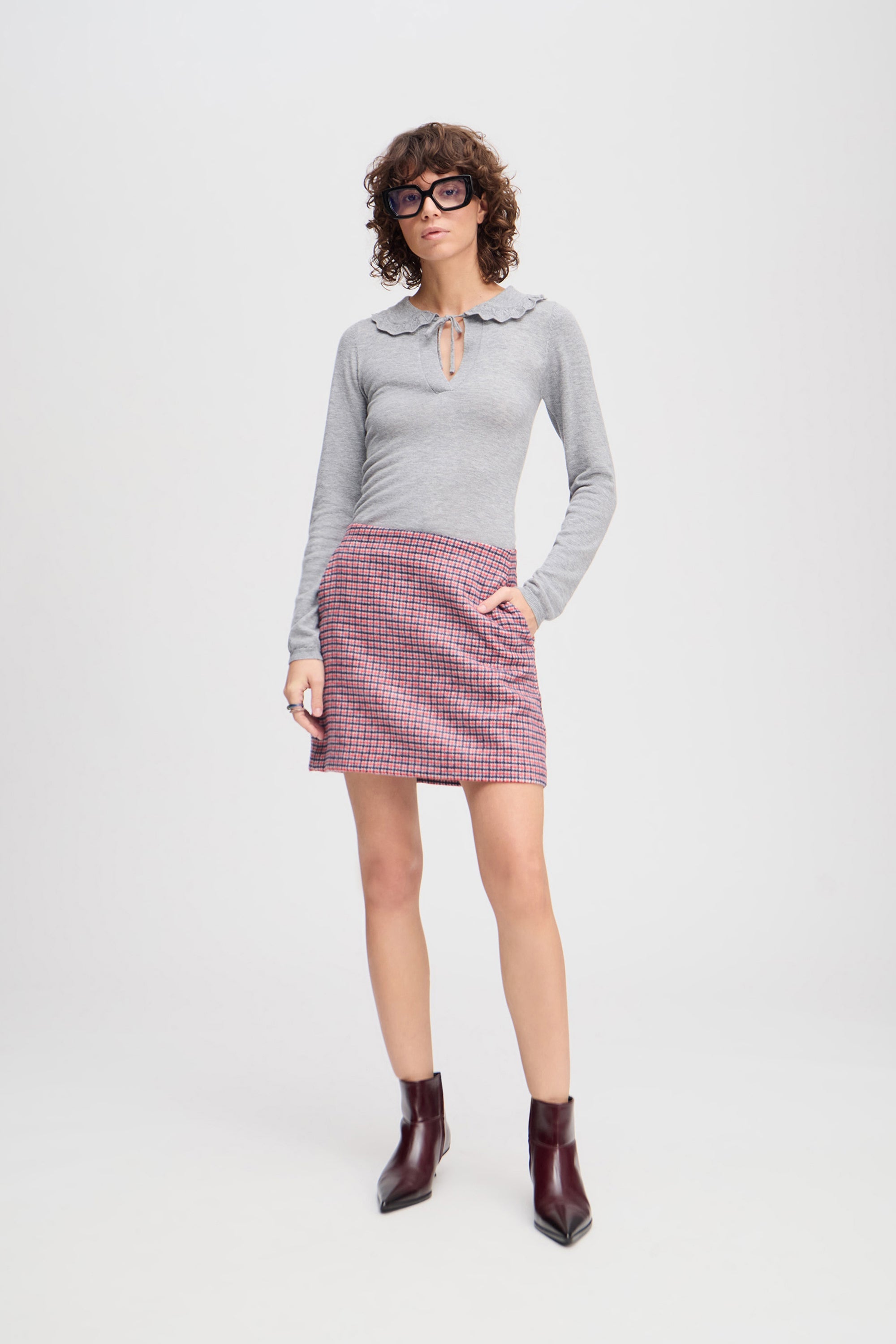 Polo-strik med elegante feminine detaljer ved kraven. Denne strik er lavet af en uldblanding og designet til en kropsnær pasform.