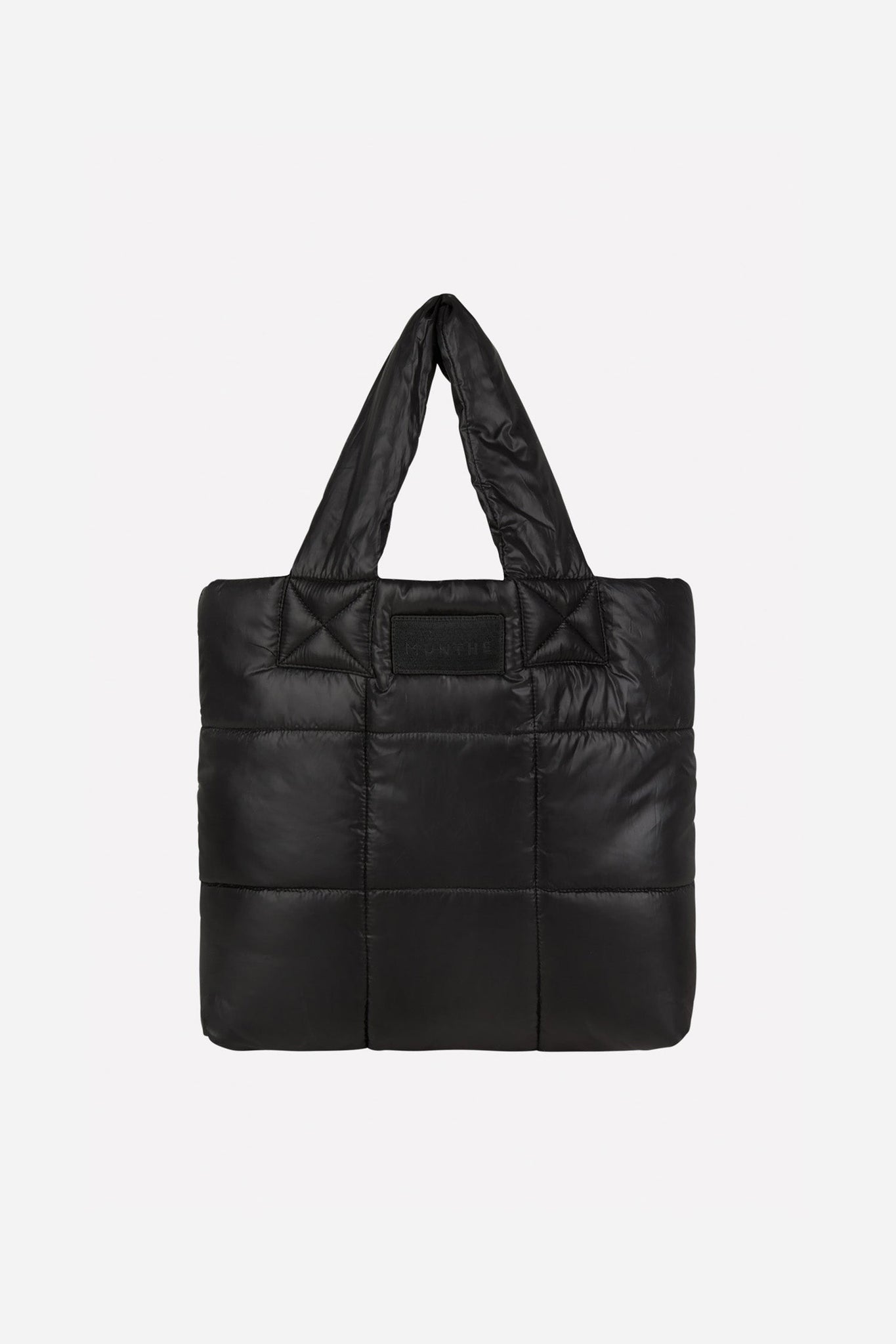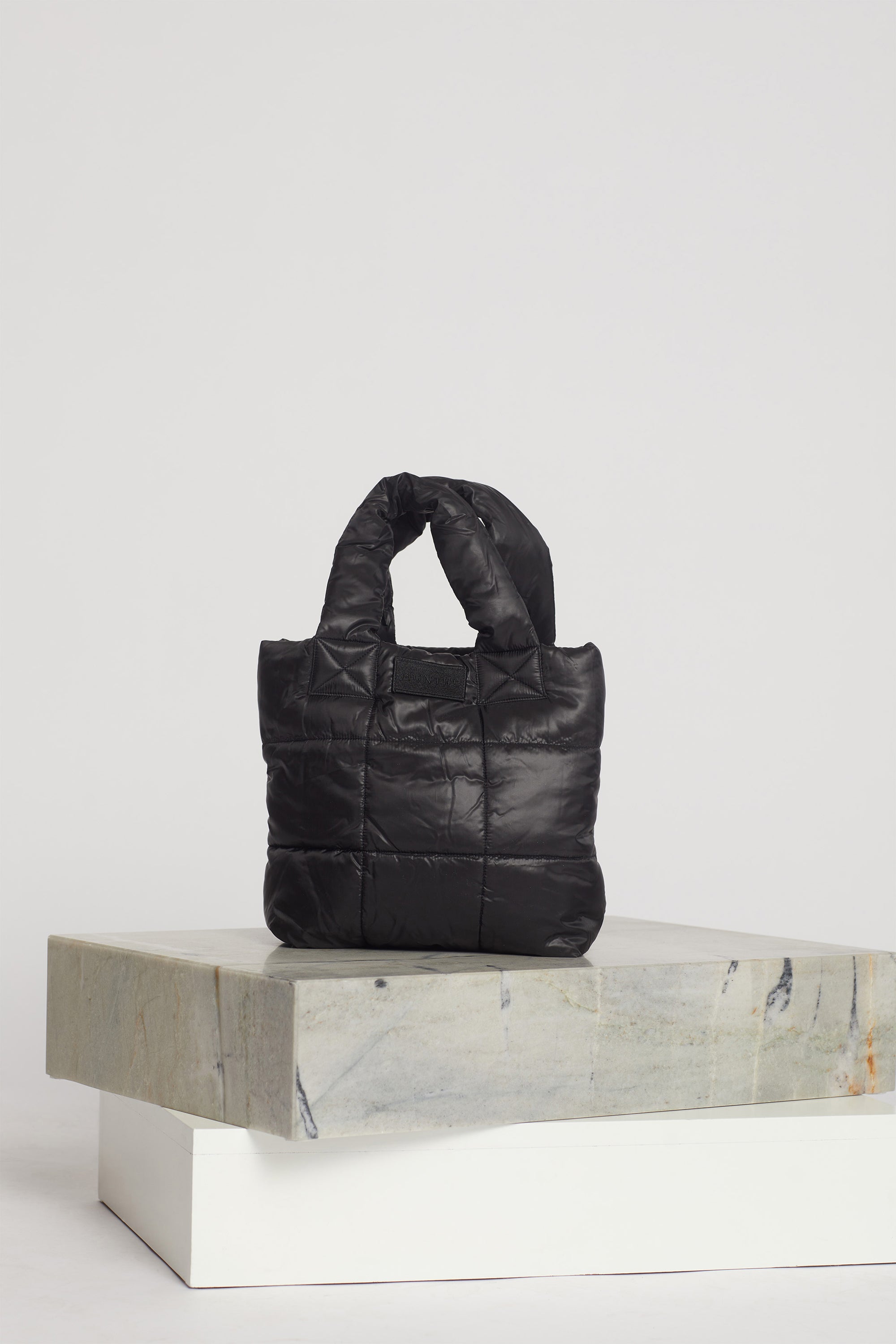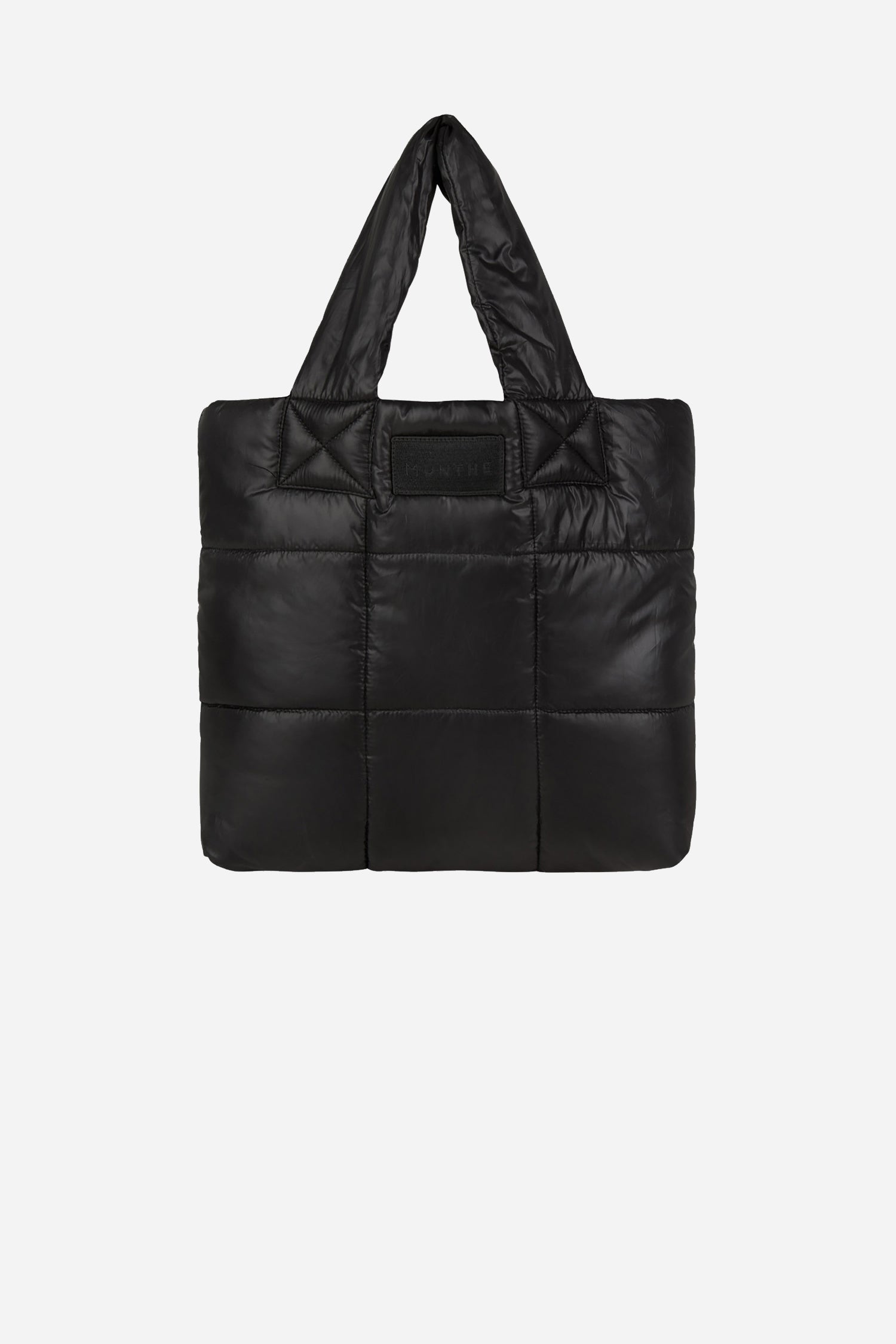 Taske med en blød hank, designet med en elegant polstring struktur og et MUNTHE logomærke. Tasken er lavet af 100% genanvendt polyester.