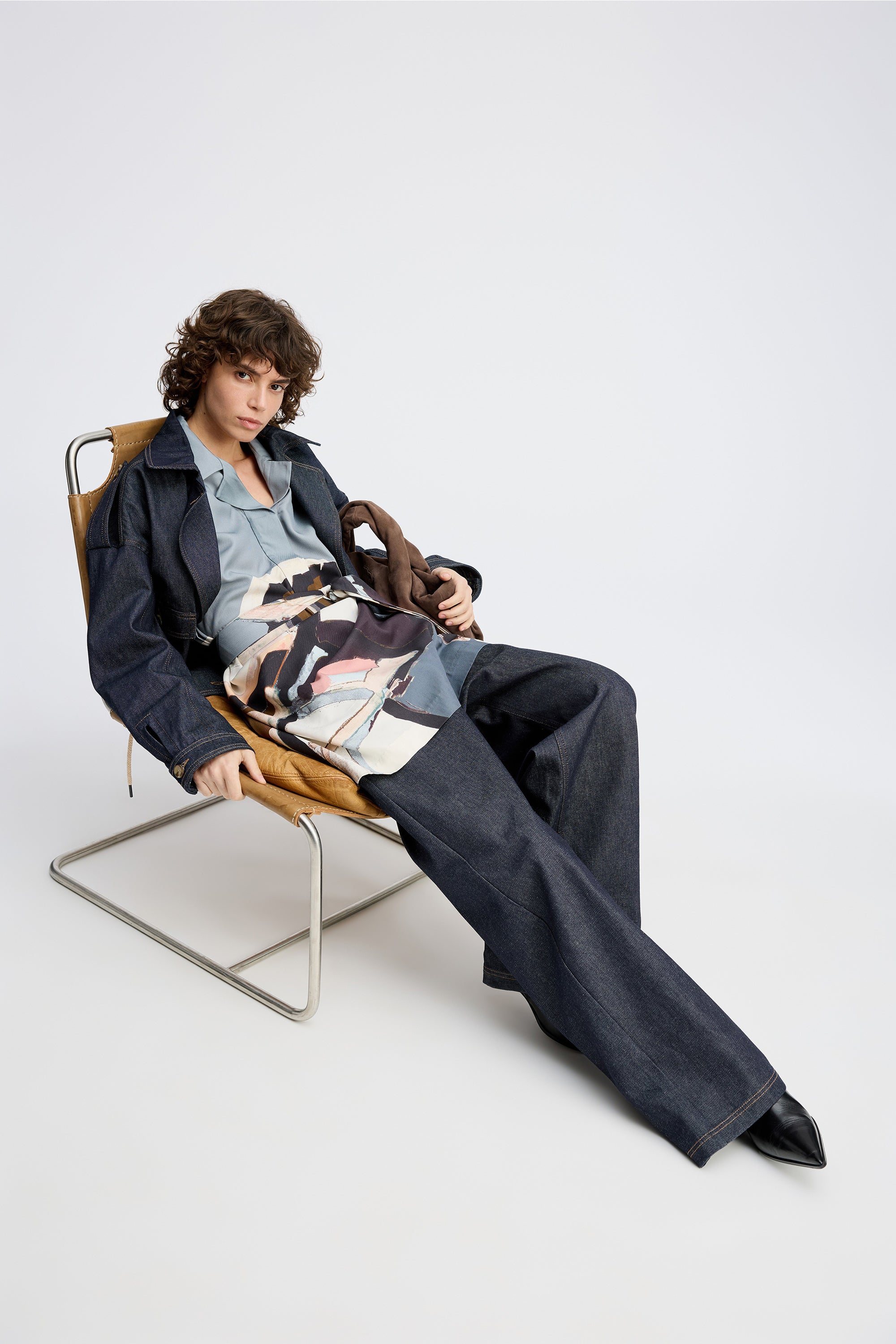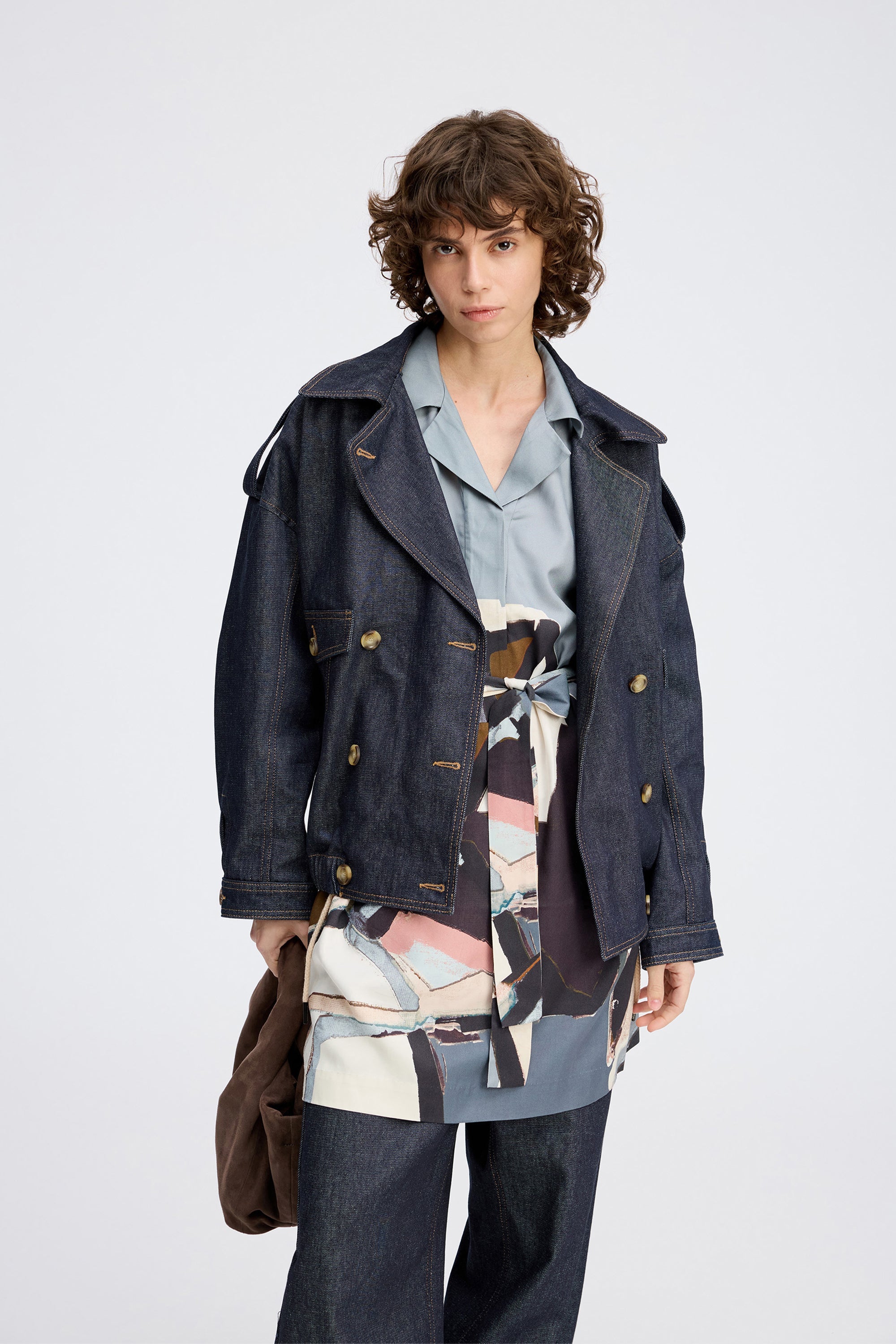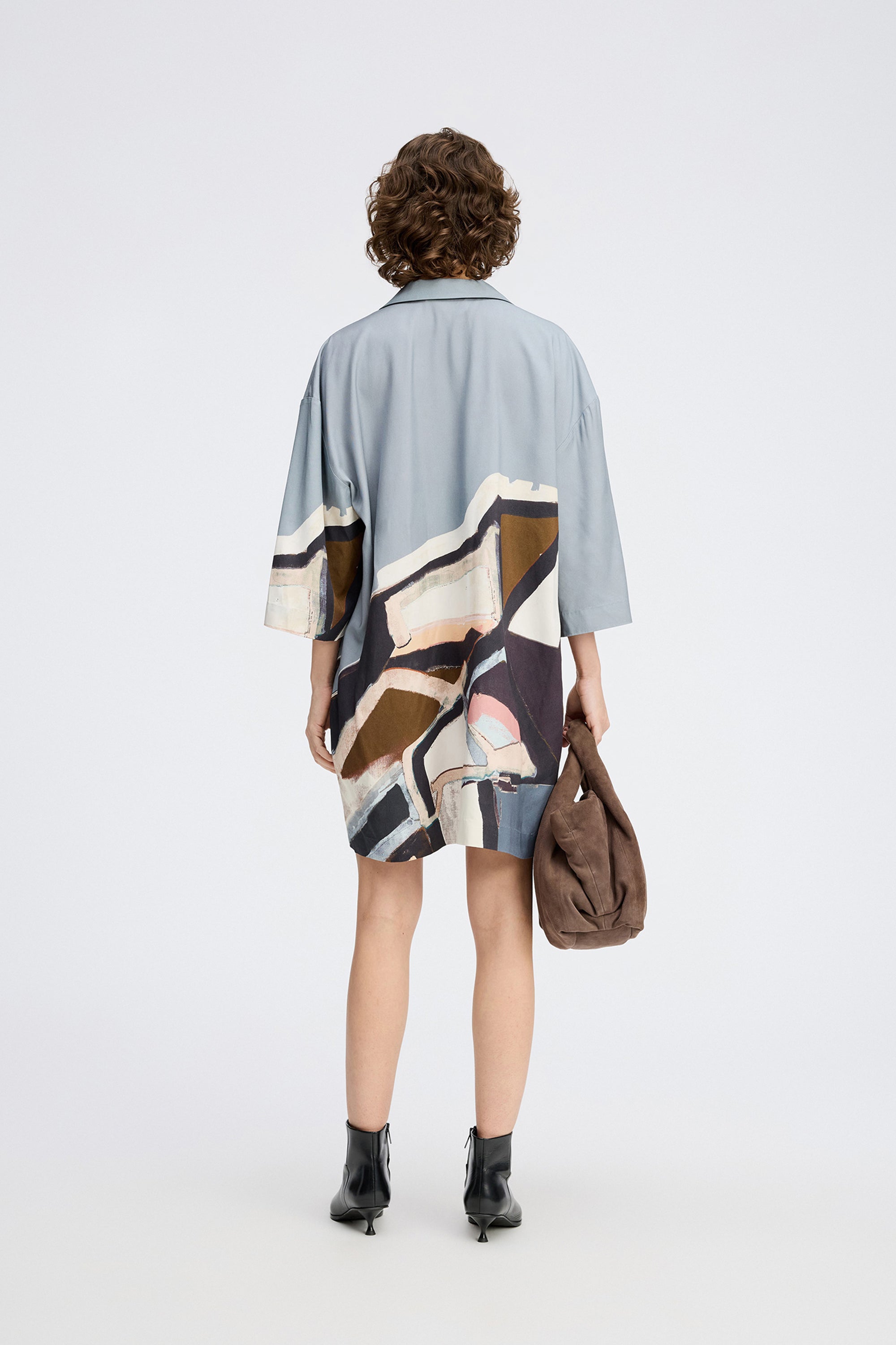 Kortærmet skjorte med smukt, farverigt kunstprint. Designet med åben krave og afslappet pasform – kan styles med eller uden det aftagelige bindebælte for et personligt udtryk.