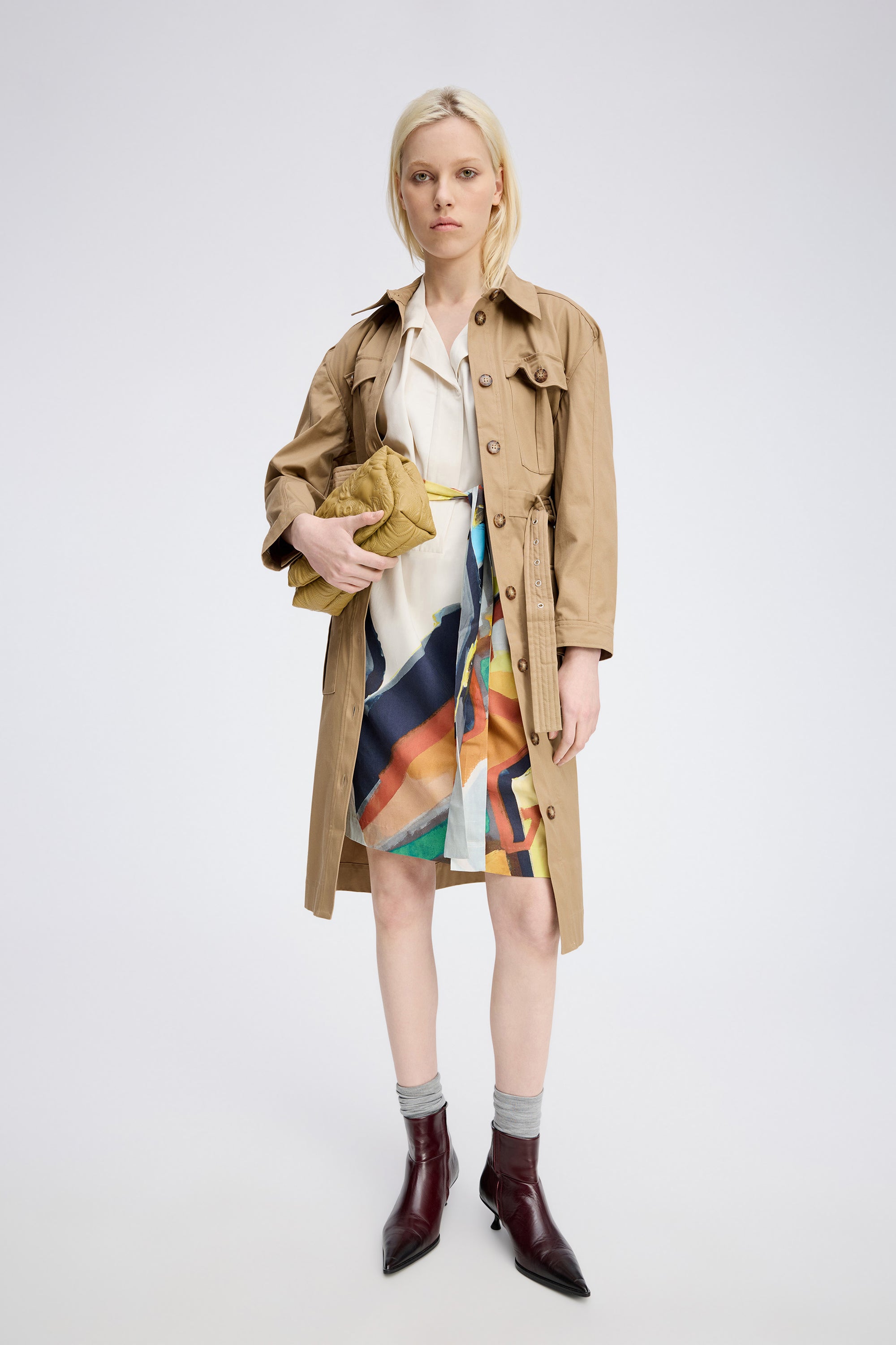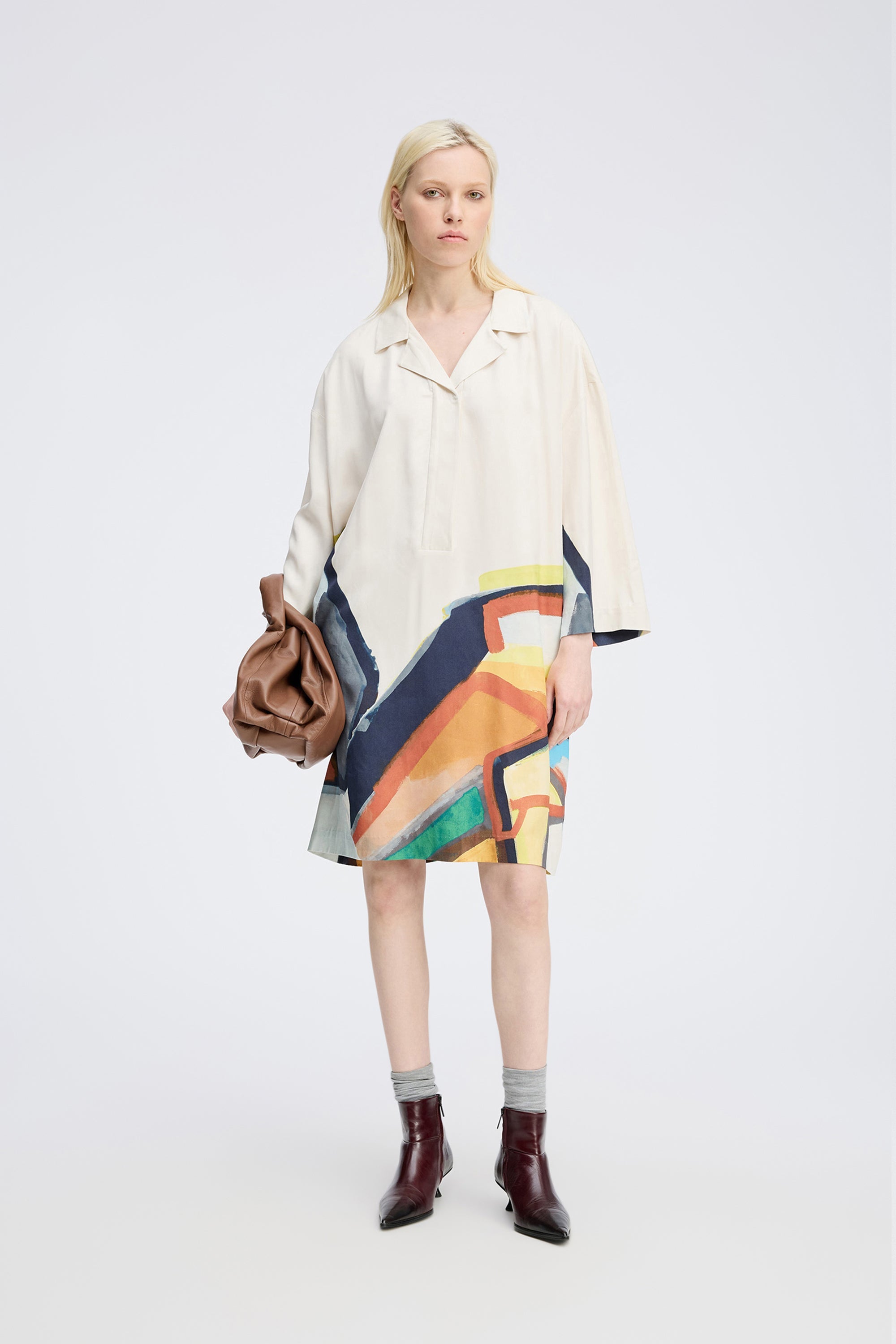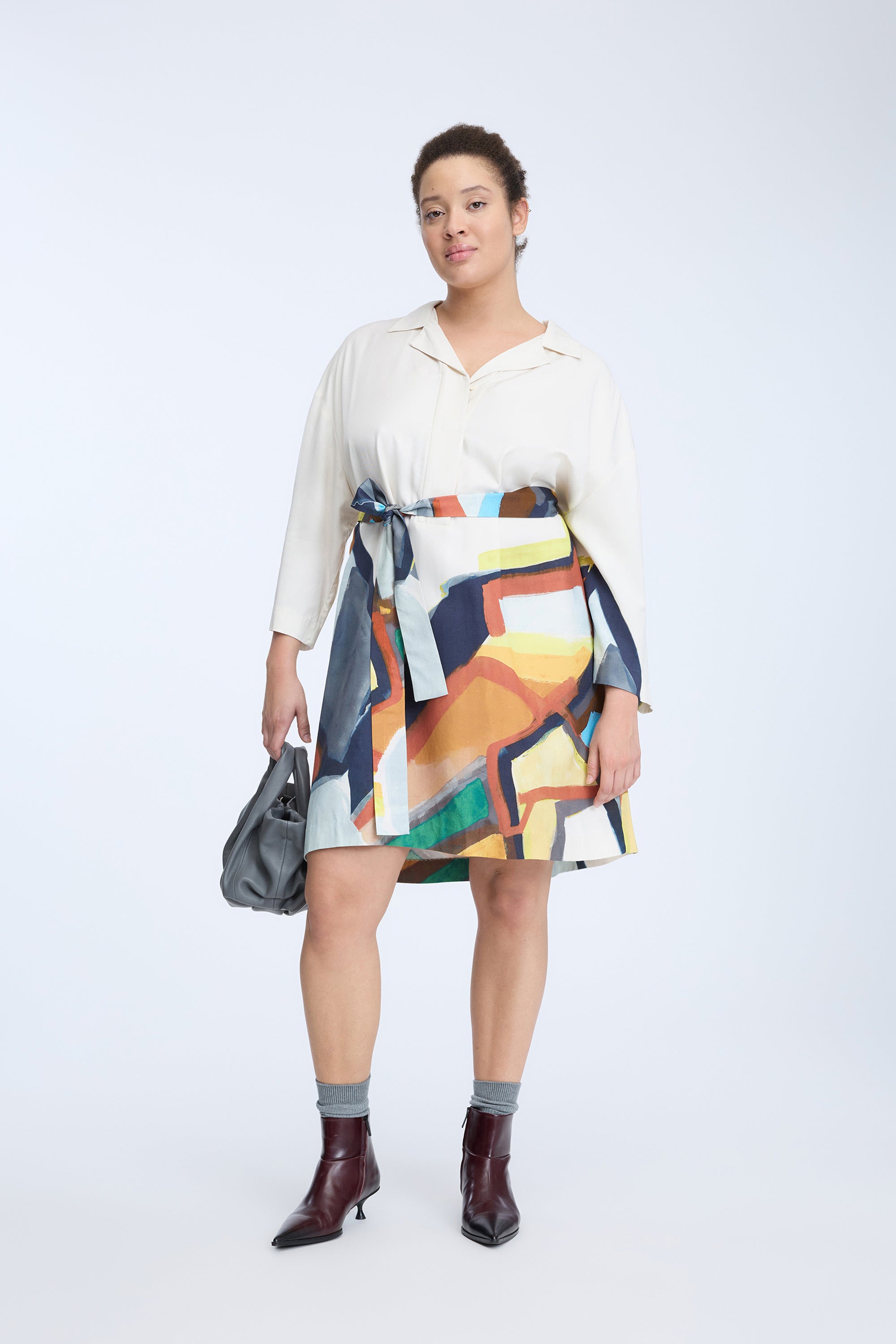 Kortærmet skjorte med smukt, farverigt kunstprint. Designet med åben krave og afslappet pasform – kan styles med eller uden det aftagelige bindebælte for et personligt udtryk.