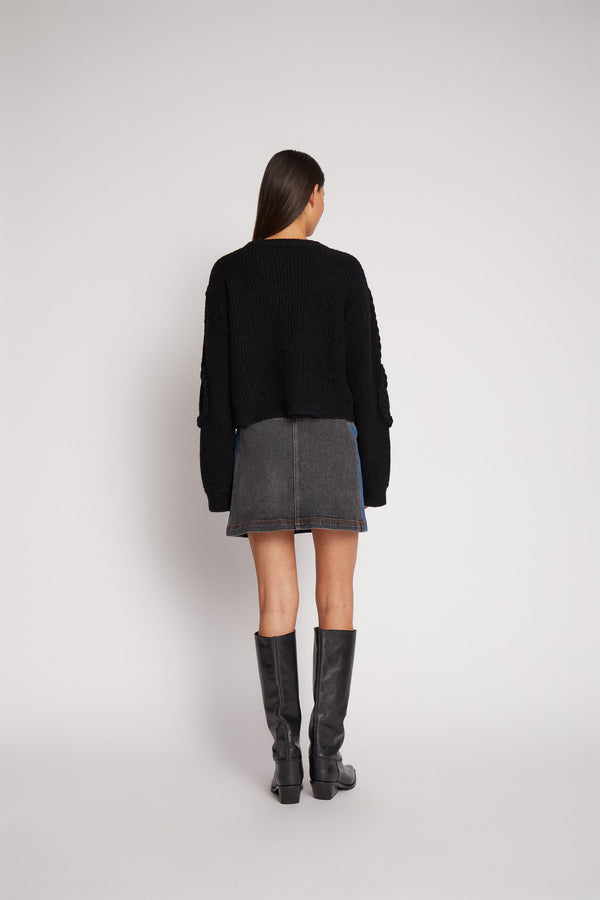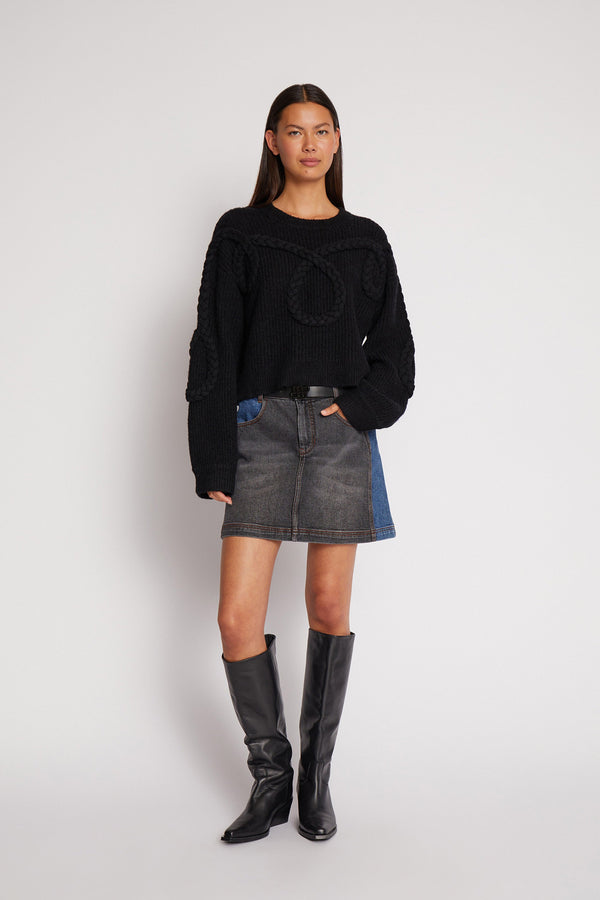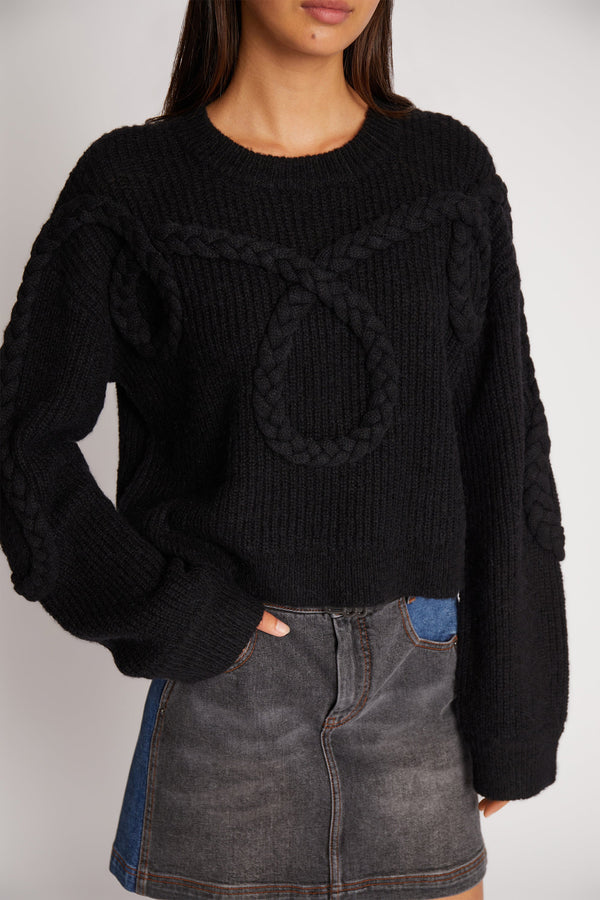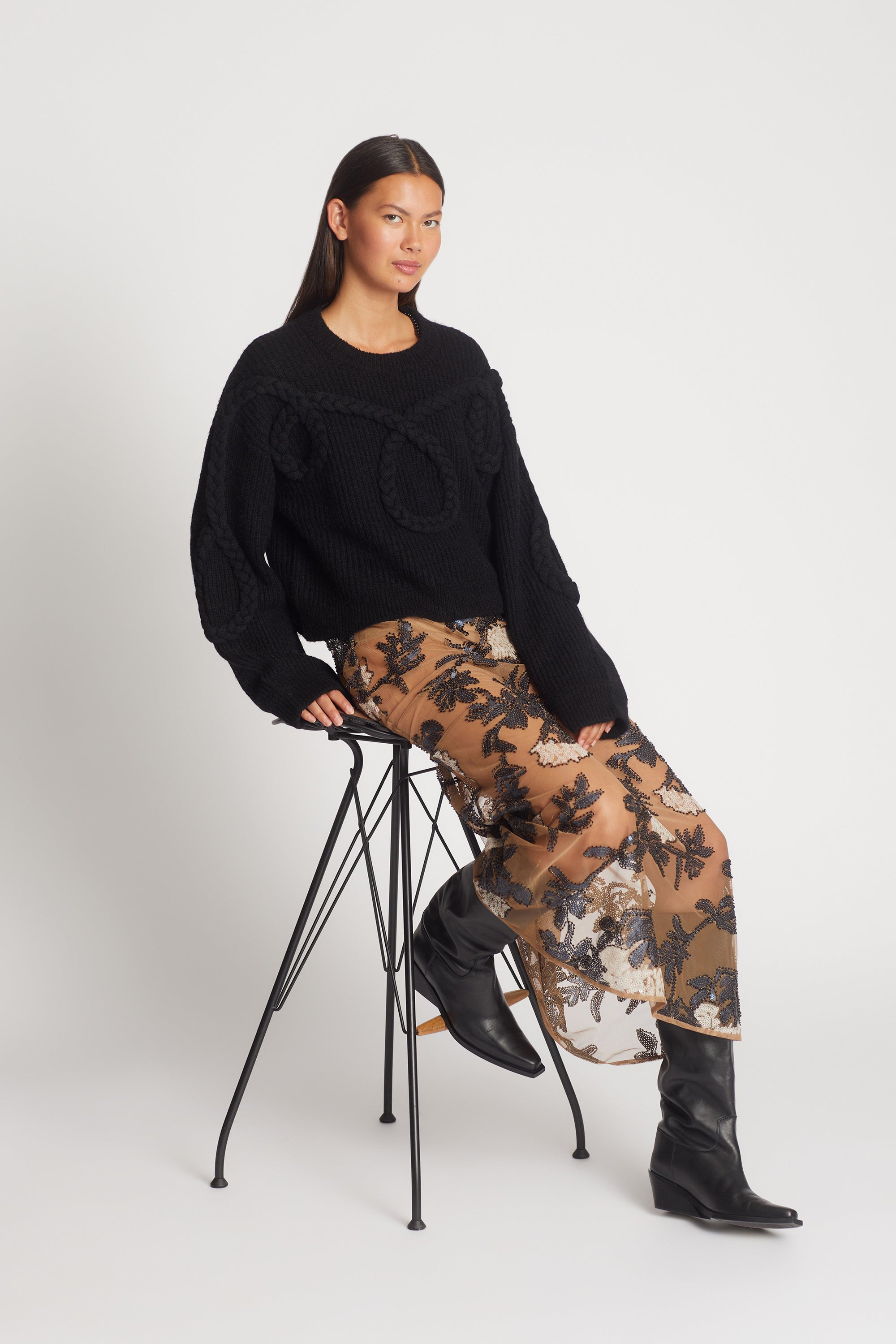 Smuk kort strik, med en elegant western-inspireret applikation foran, samt på ærmerne. Denne strik er lavet af en blød uldblanding og har en løs pasform.