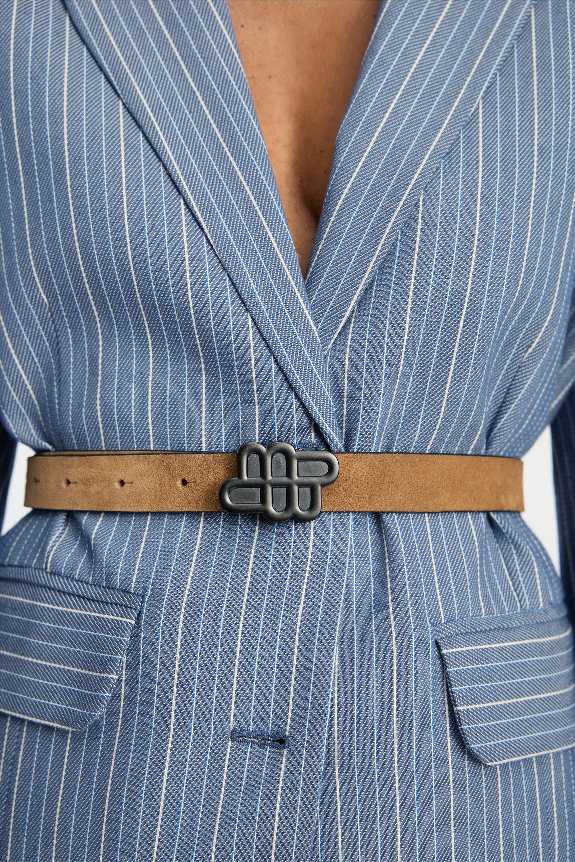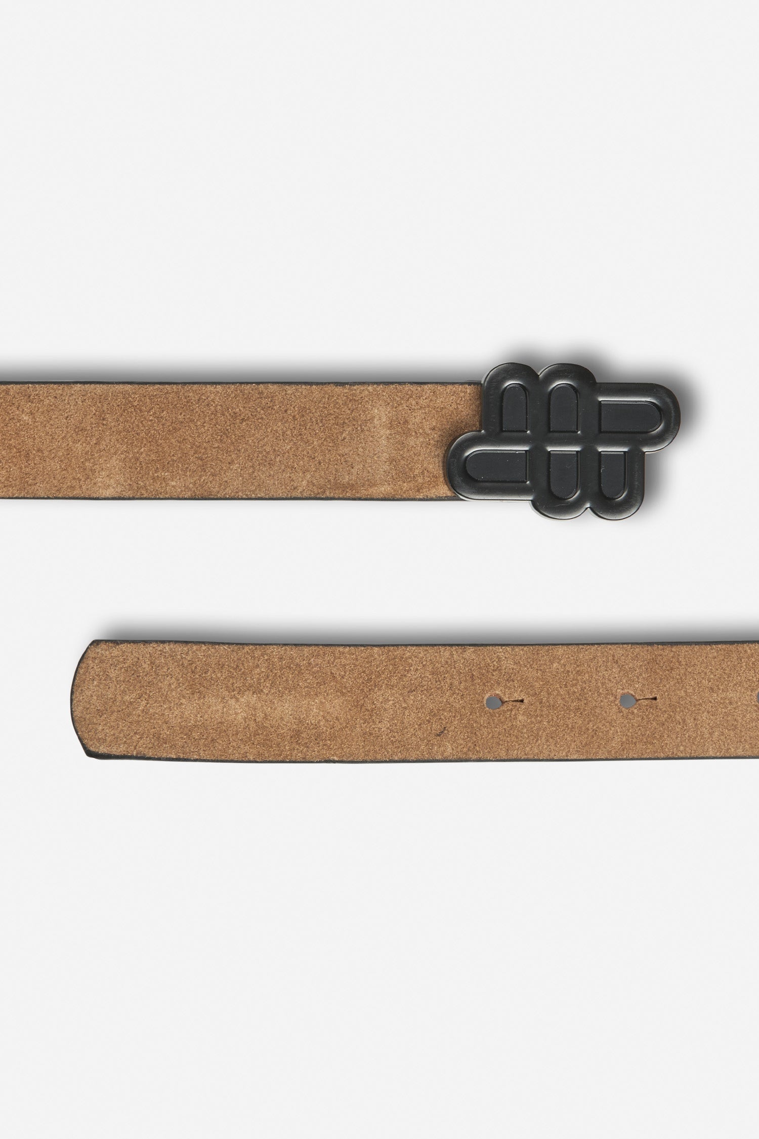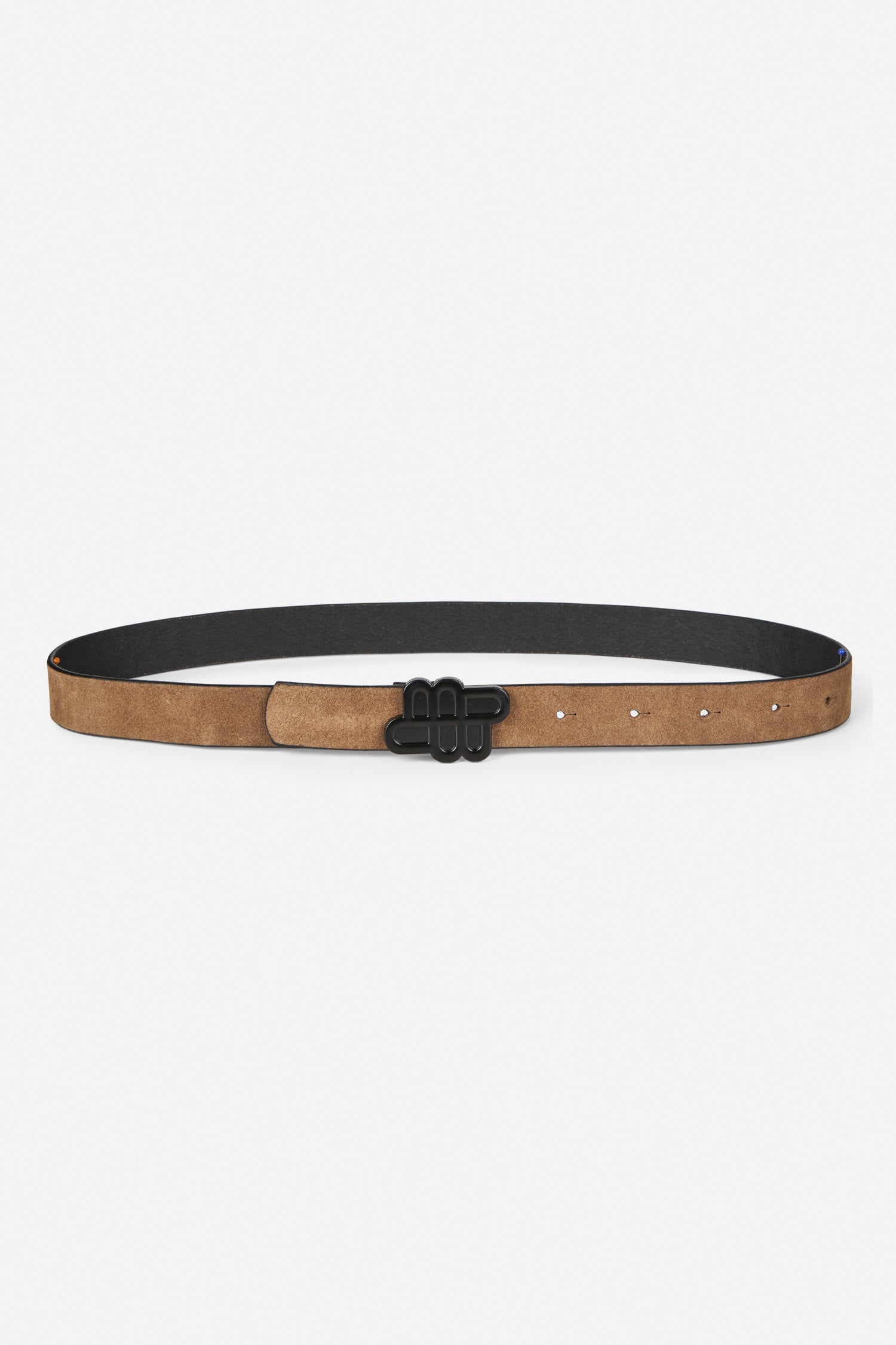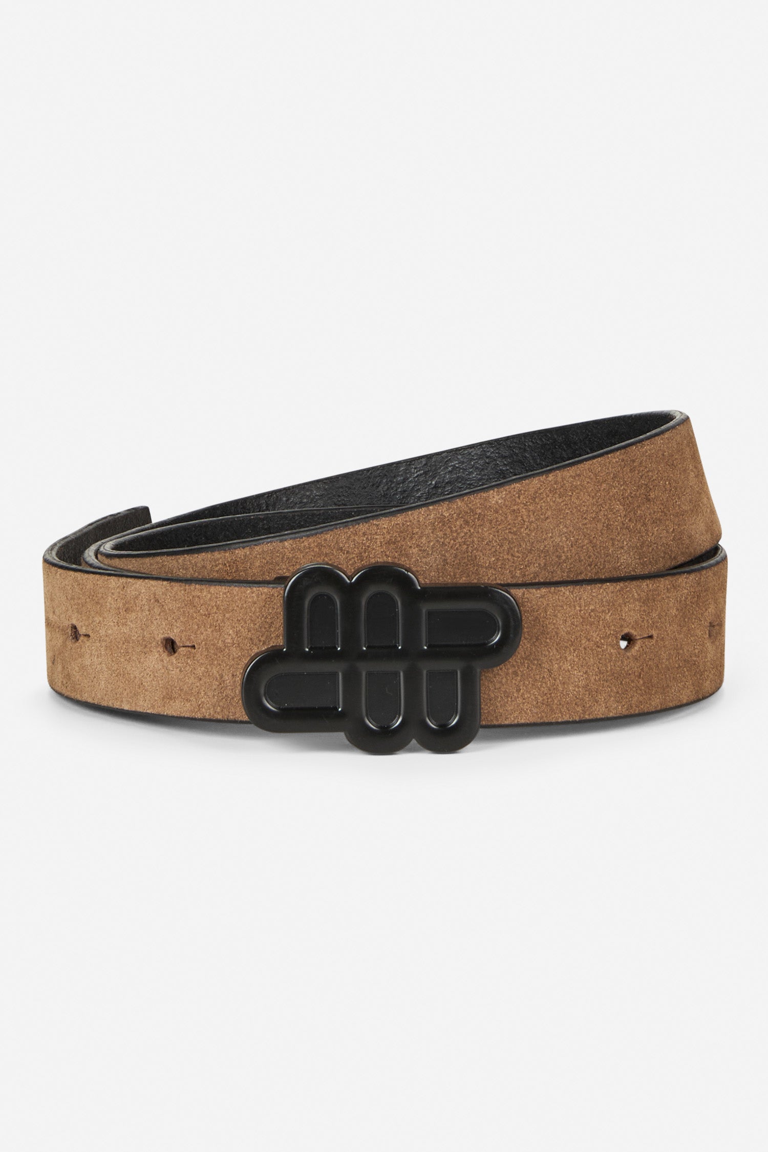 Bælte i brun ruskind med et elegant MUNTHE emblem spænde i sort på.