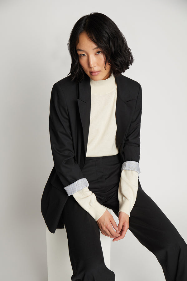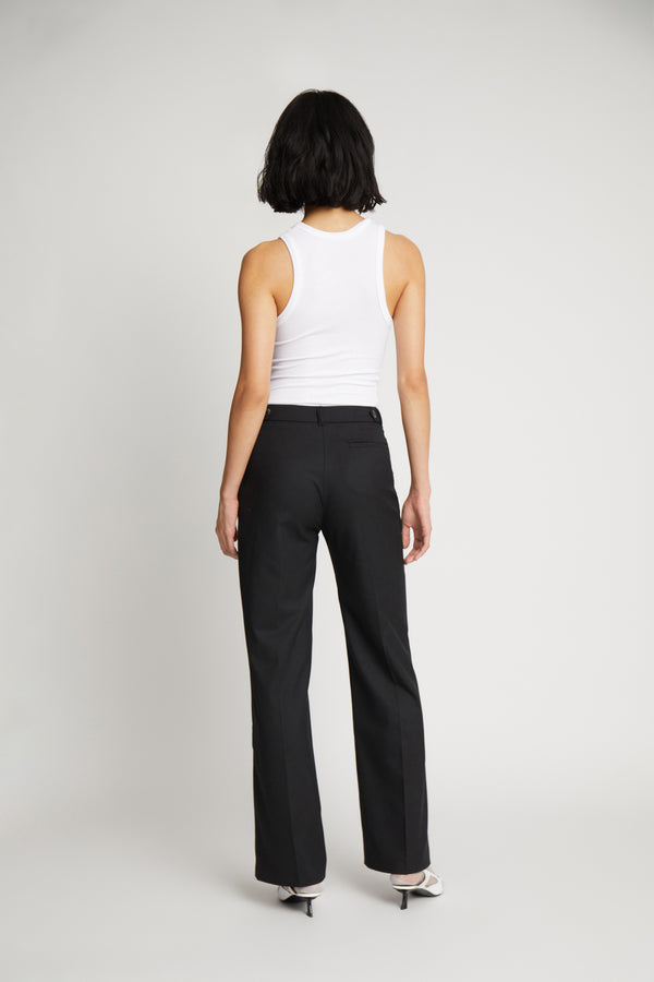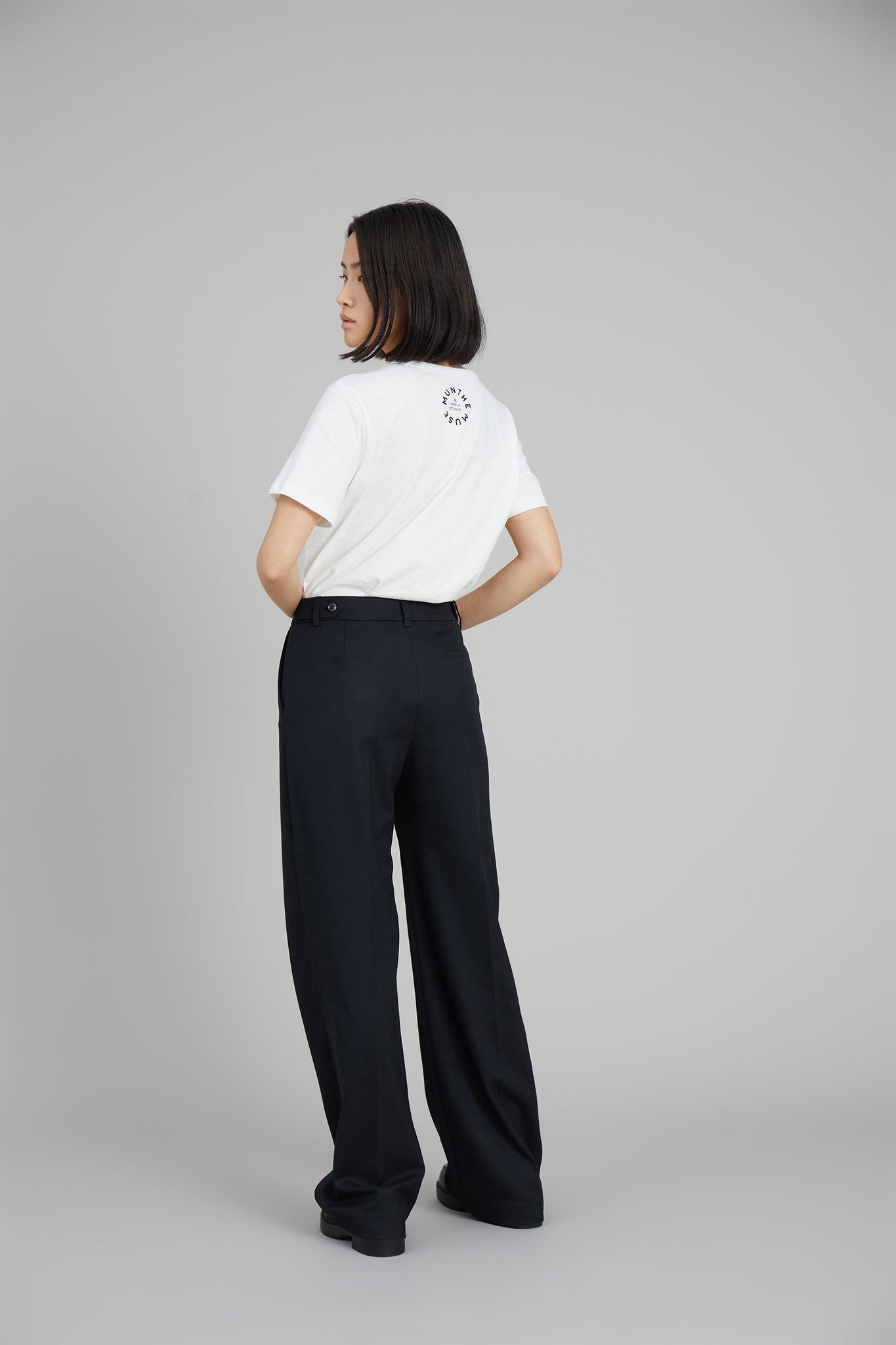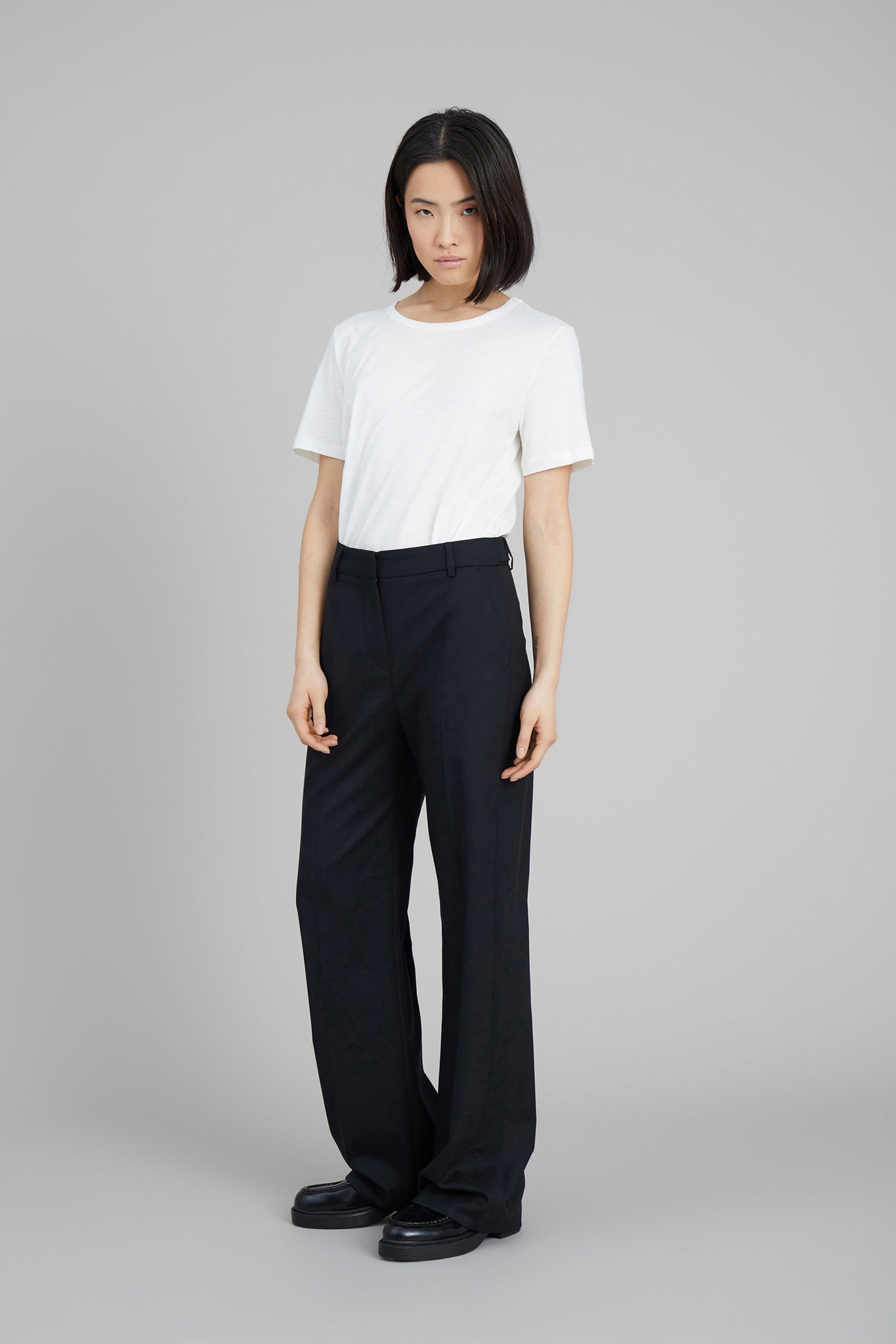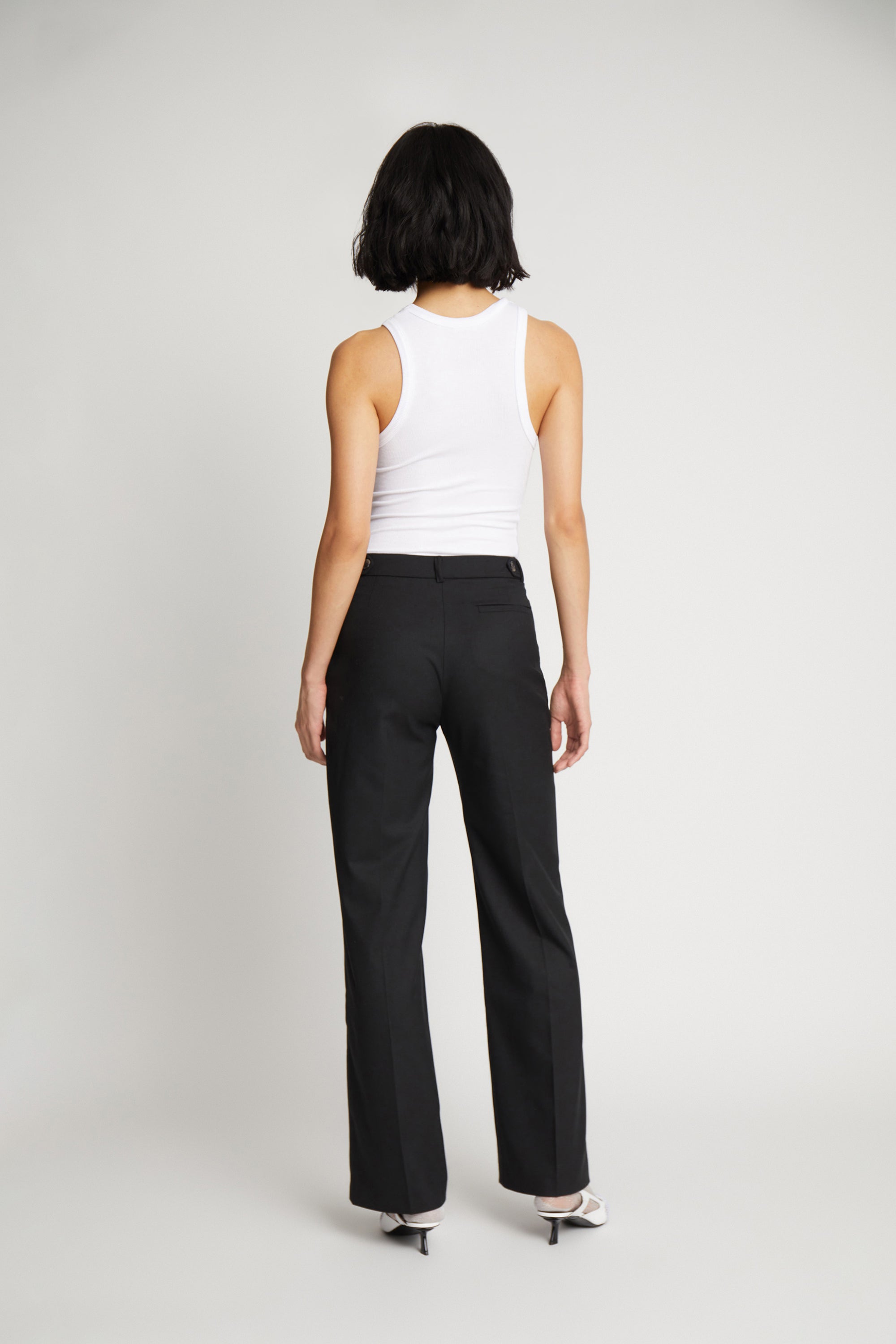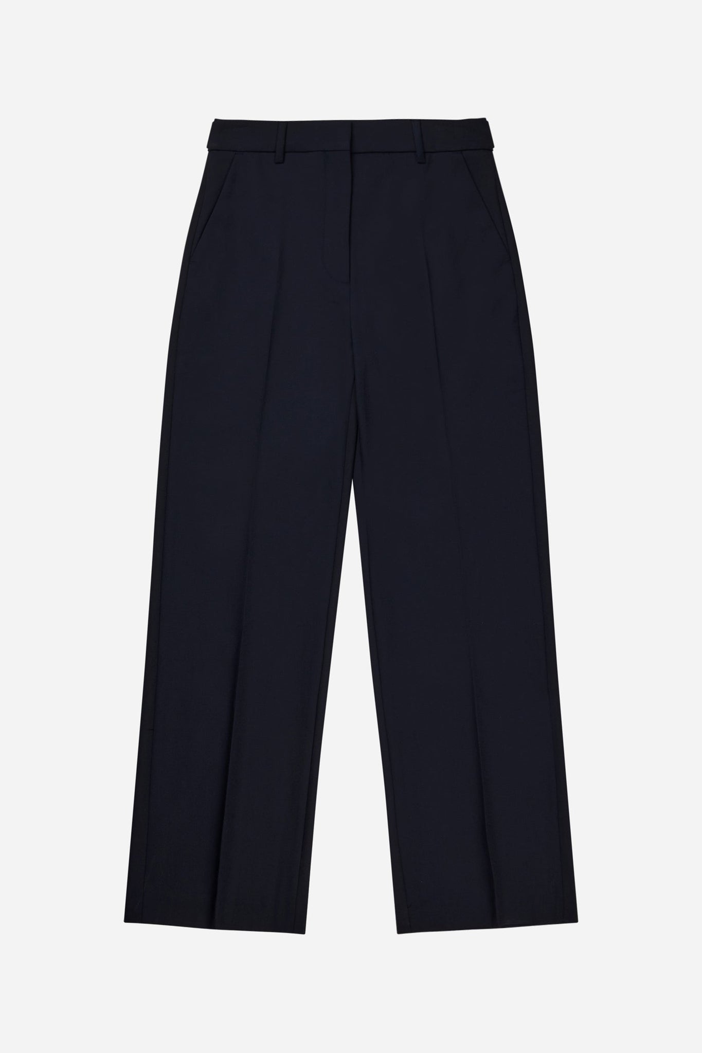 Klassiske bukser lavet i en genanvendt polyester- og uldblanding. Bukserne har sidelommer, bæltestropper i taljen og er designet til en normal pasform.