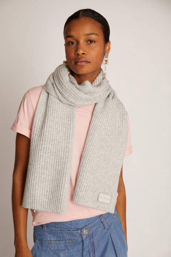Et blødt ribstrikket halstørklæde med et elegant MUNTHE logo patch.