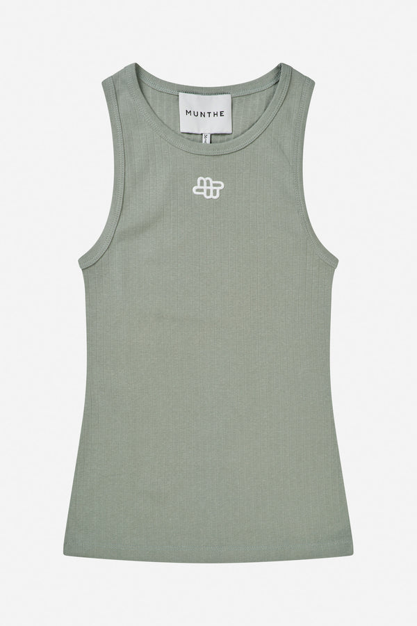 Tank top i 100 % økologisk bomuld med et elegant MUNTHE emblem broderi på brystet. Denne Tank top er designet til en tæt pasform med en rund halsudskæring.