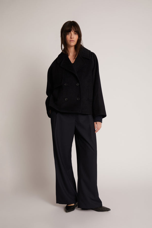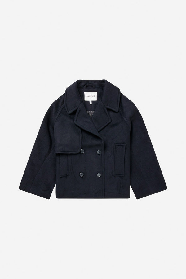 En smuk klassisk jakke, lavet af en blød uldblanding. Jakken er lavet til en normal pasform med lommer, dobbeltradet knaplukning foran og en elegant bred krave.