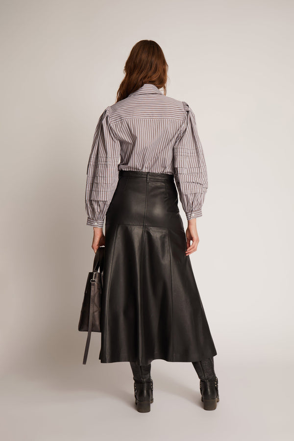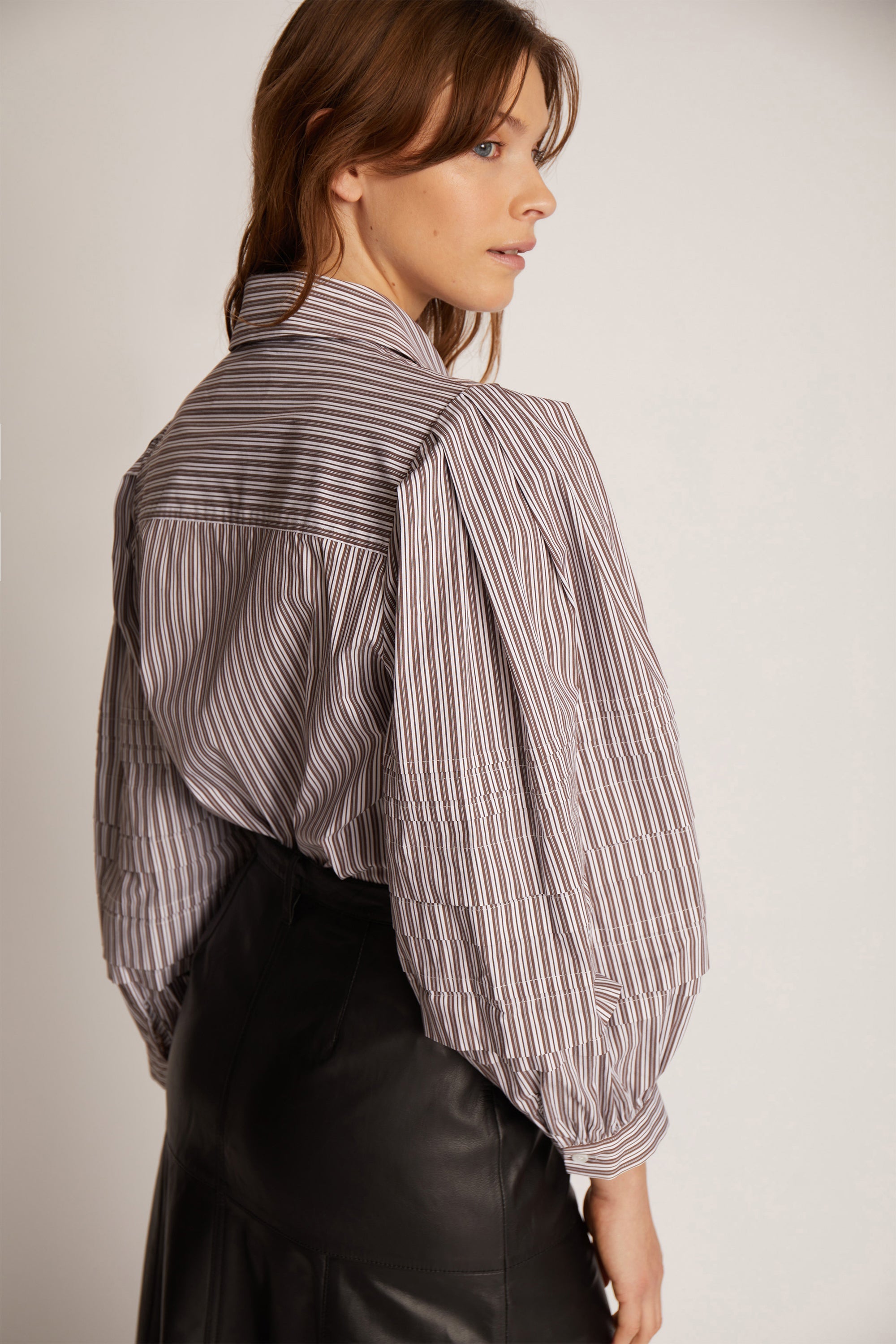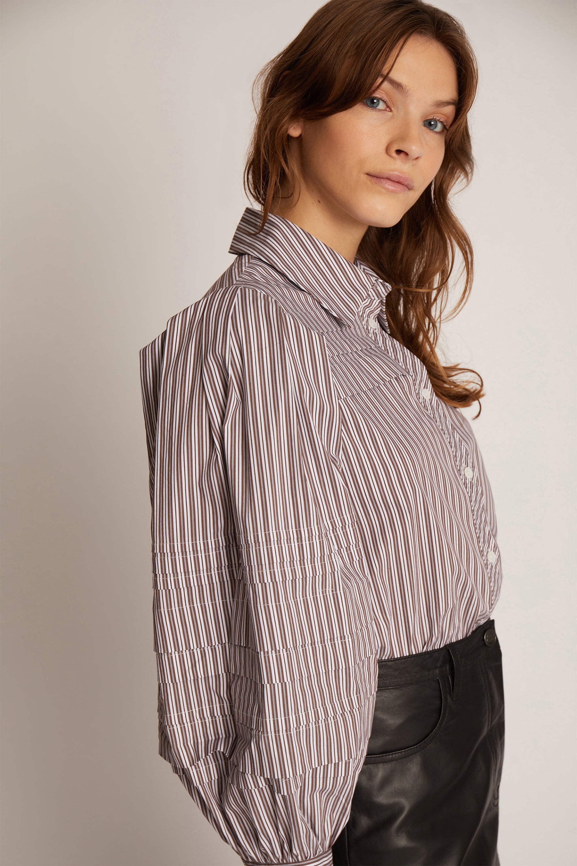 Skjorte med elegante striber med et twist langs knaplukningen. Skjorten er designet med smukke flæse detaljer på bryst og ærmer. Skjorten har en normal pasform, en klassisk krave og tynde manchetter.