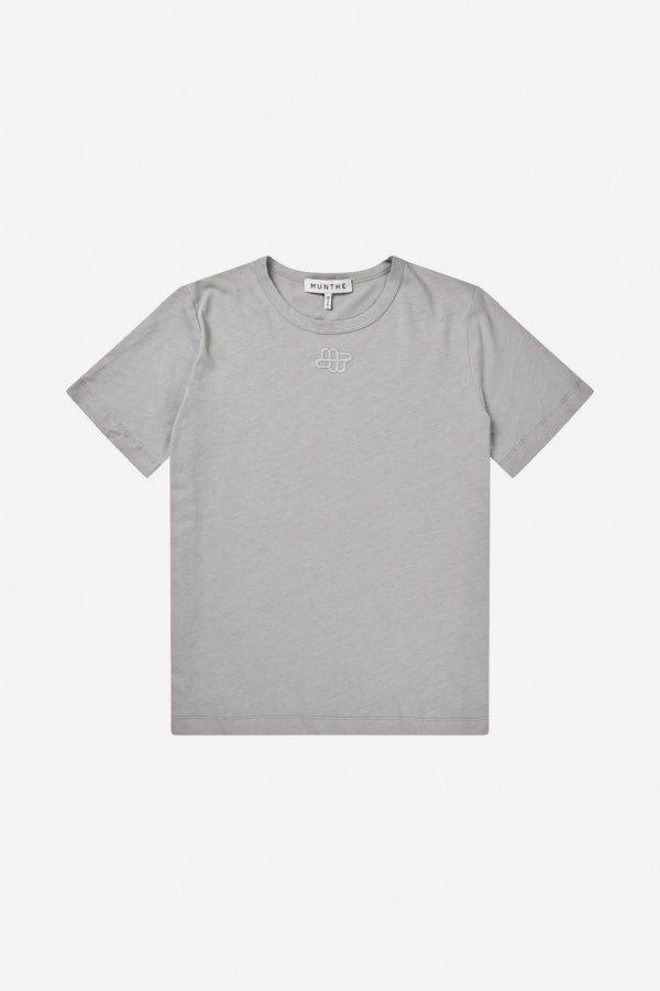 T-shirt i 100 % økologisk bomuld med et elegant MUNTHE emblem broderi foran ved brystet. T-shirten er designet til en normal pasform med rund hals og korte ærmer.