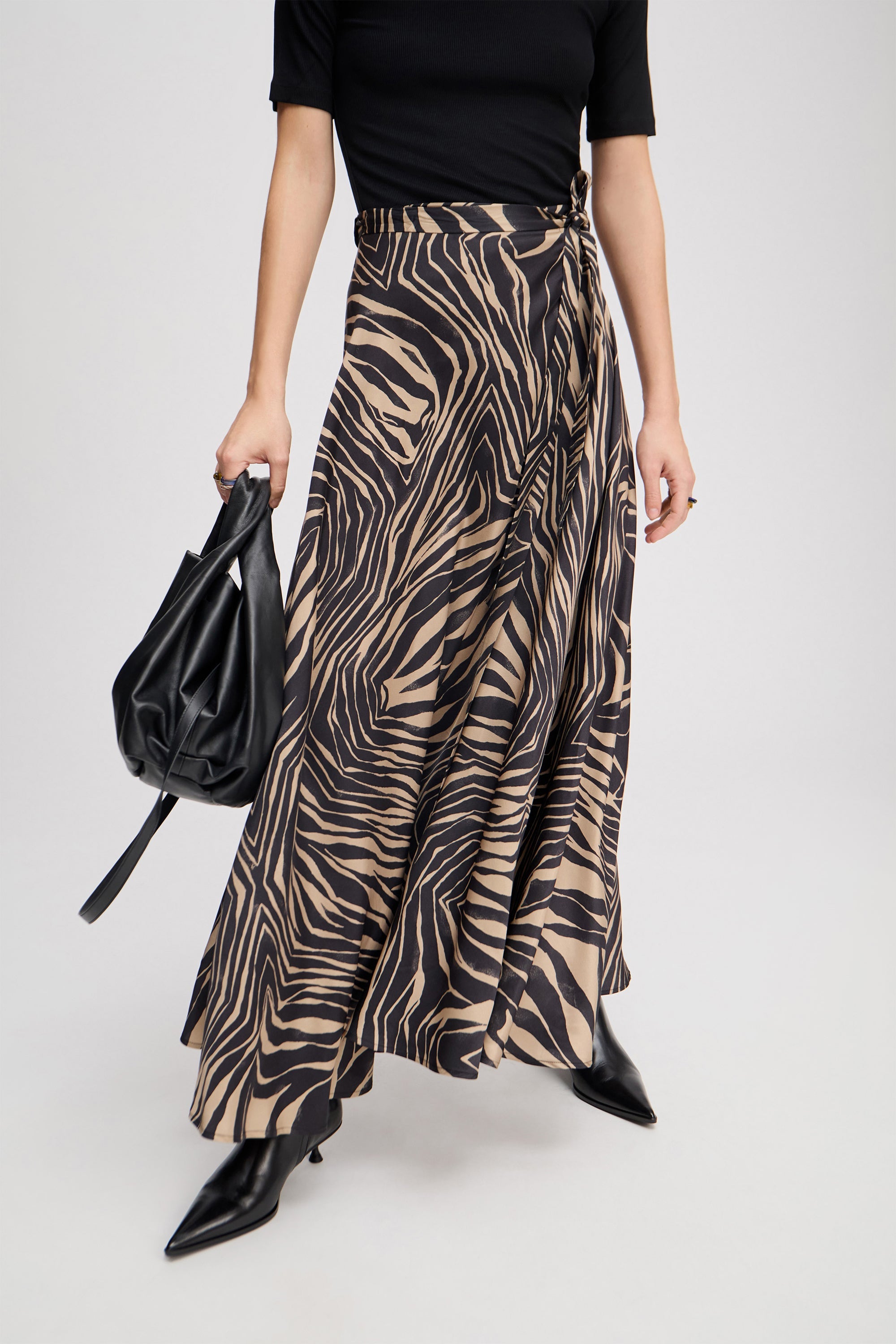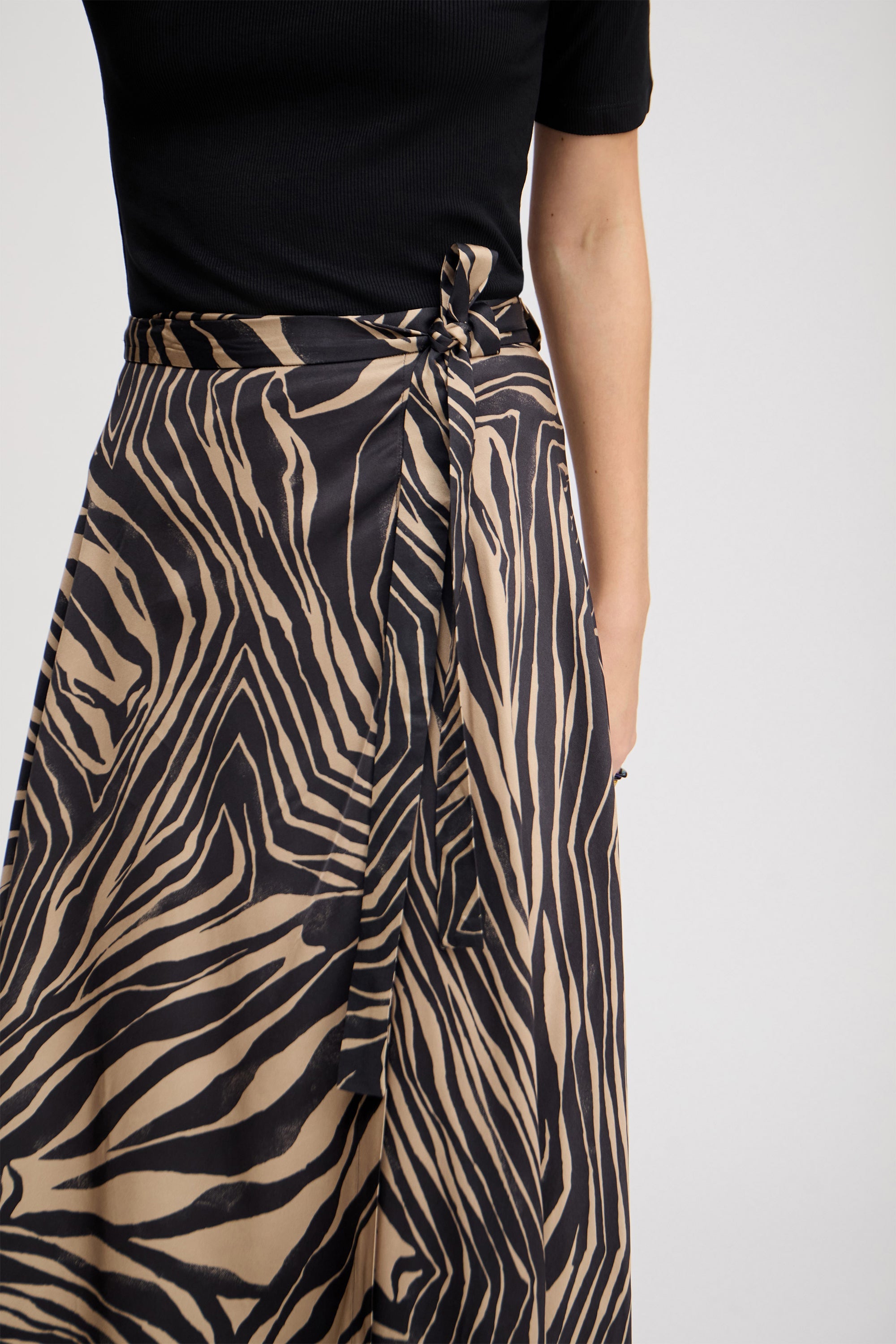 Smuk slå-om-nederdel med et elegant all-over-print. Nederdelen har et let udtryk og er designet i en almindelig pasform, der kan bindes i taljen.