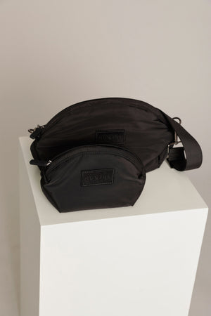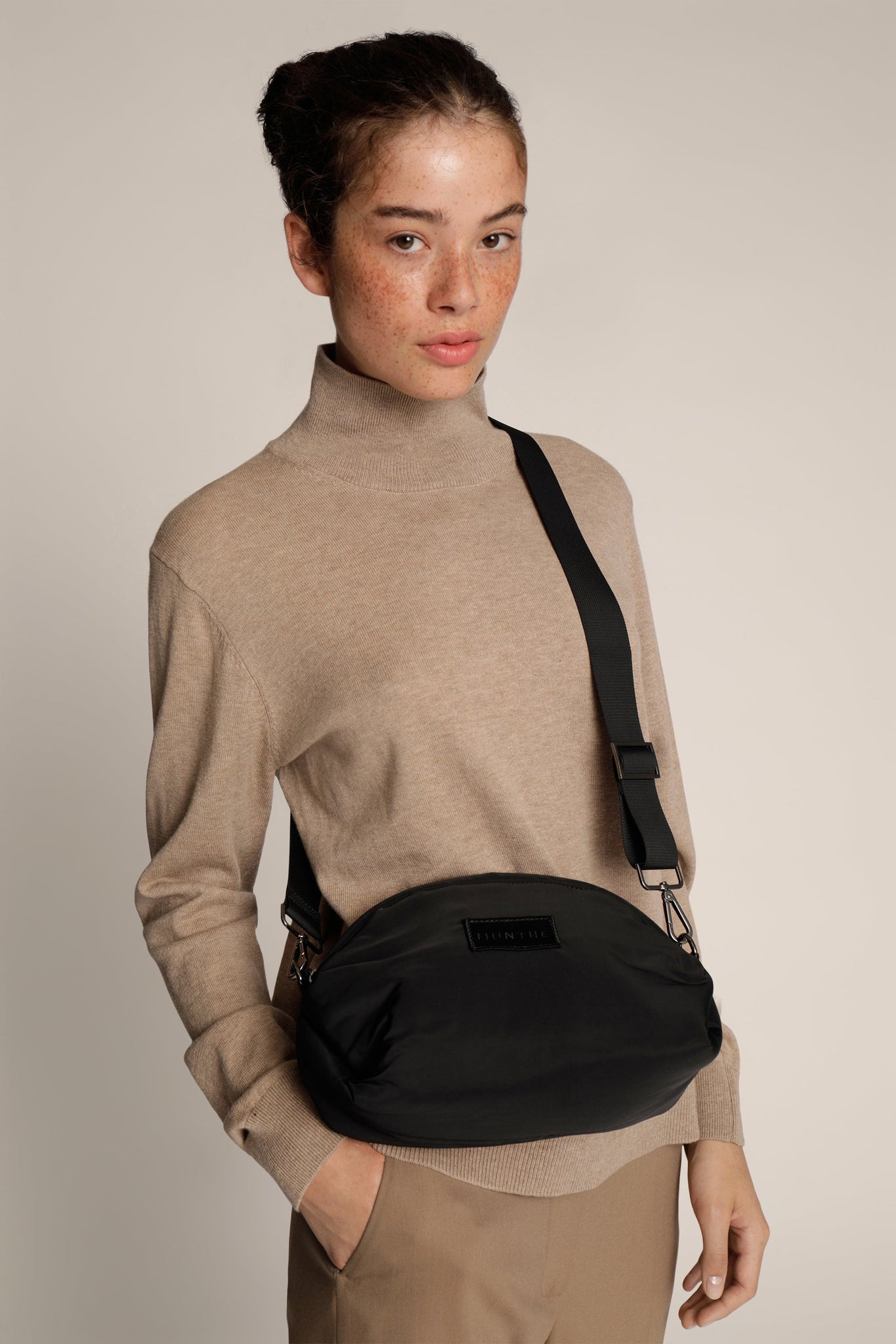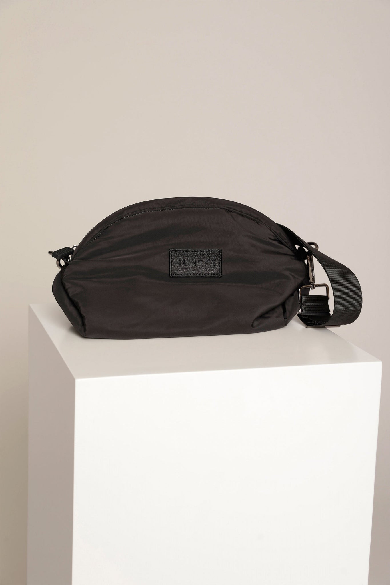 En mellem størrelse taske med et elegant MUNTHE logo og en lynlås lukning. Tasken kan bæres cross-body eller som skuldertaske ved hjælp af den aftagelige rem. Størrelsen kan rumme fx telefon, pung og eller mellem størrelse genstande. Den har en lille lomme inden i.