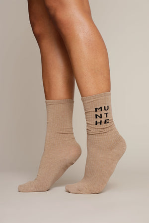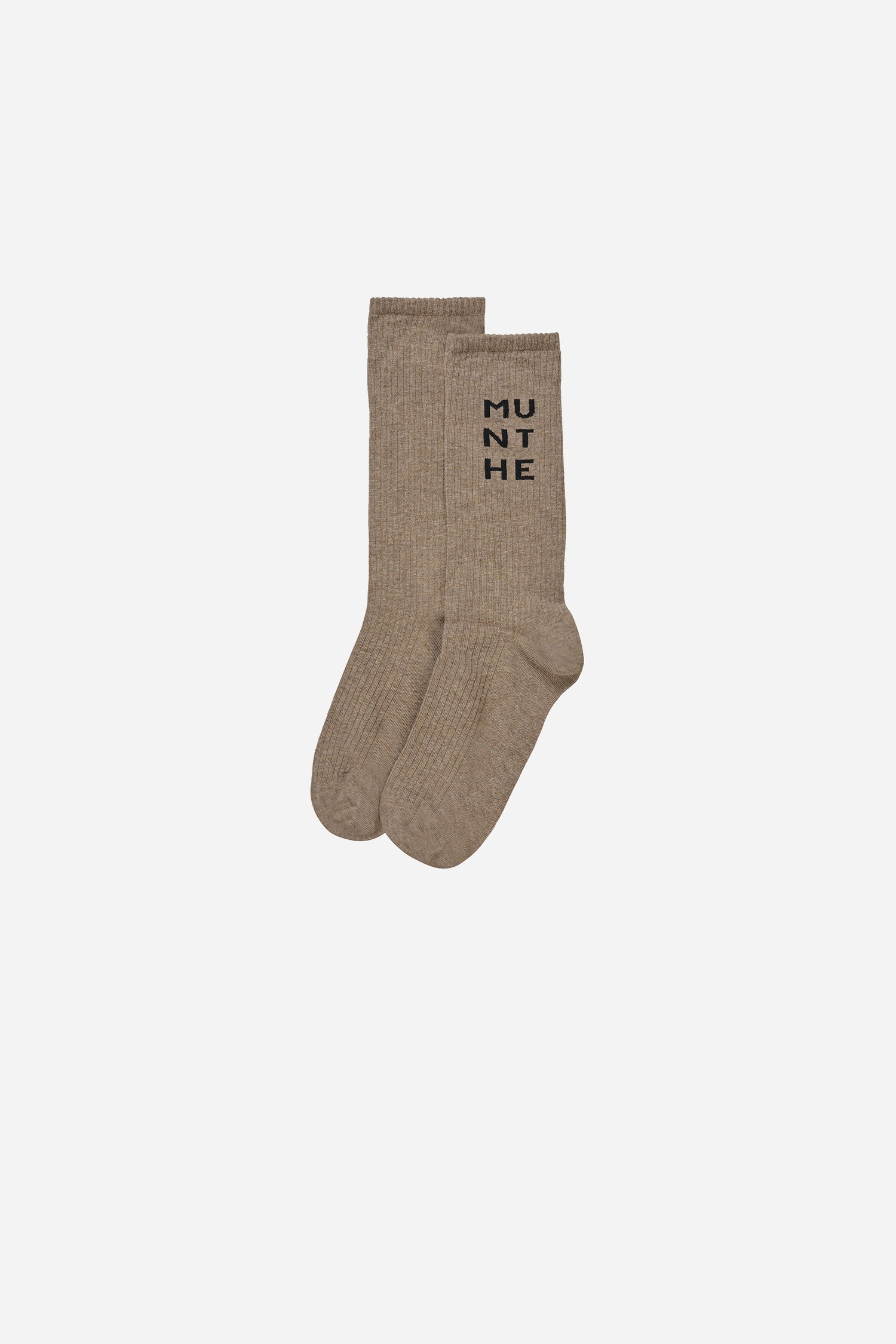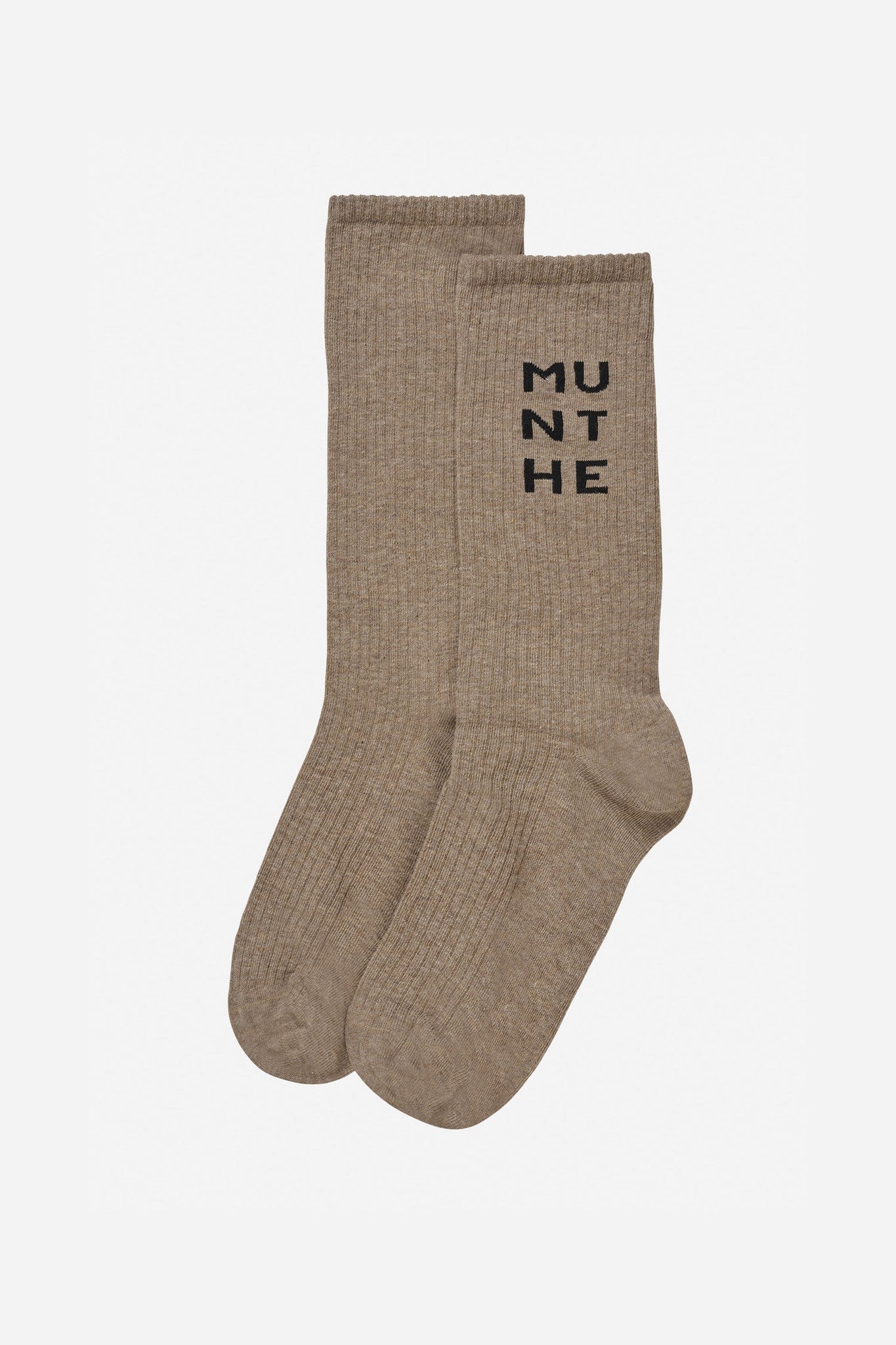 Onesize rib strømper i en blød bomulds blanding, med et MUNTHE logo øverst på hver strømpe.