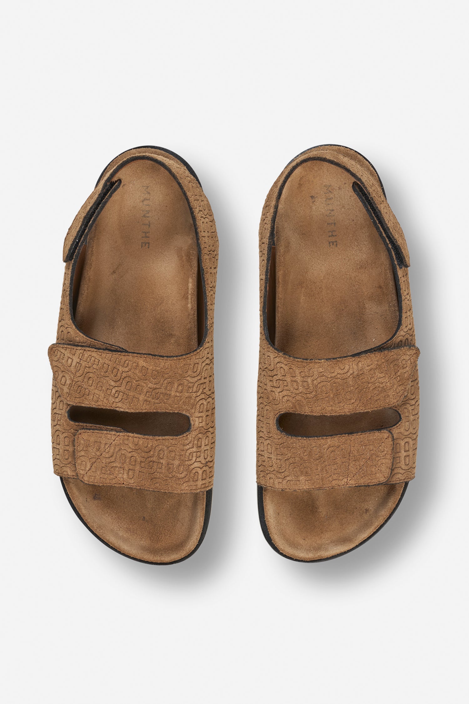 Disse sandaler er fremstillet i læder med præget mønster og har to justerbare velcroremme. Modellen har en blød, formstøbt sål og en let, fleksibel ydersål.