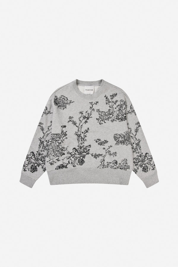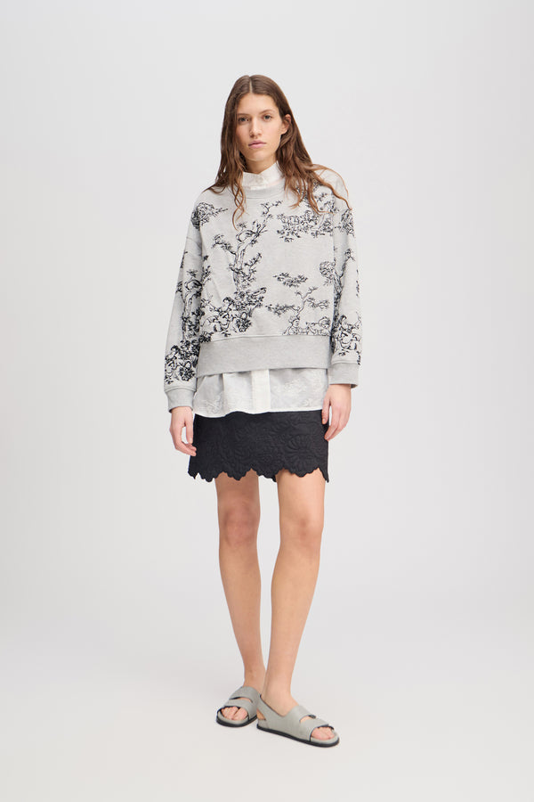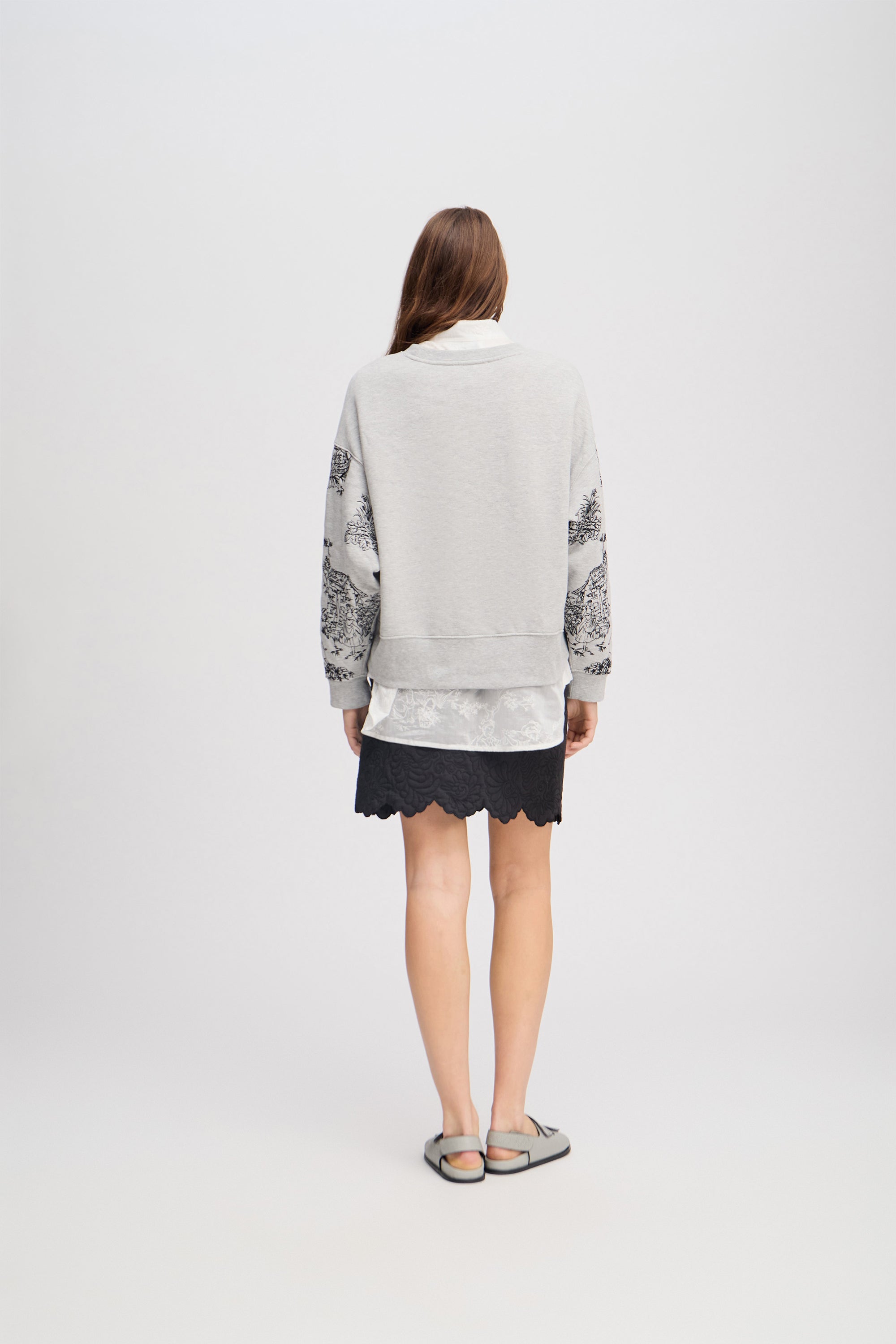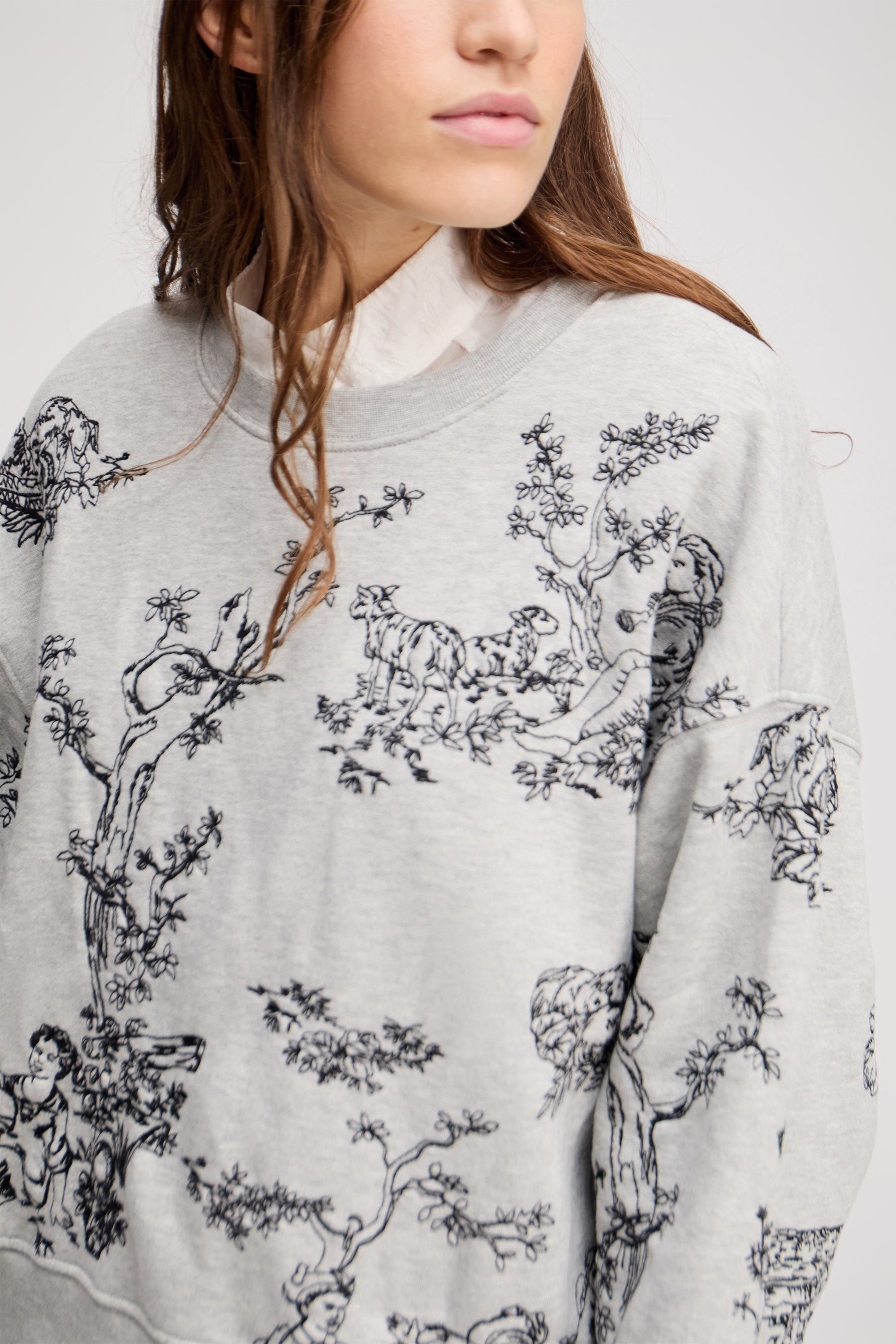 Blød sweatshirt med et elegant kunstbroderi. Denne sweatshirt er designet til en løs pasform med faldende skuldre og en rund halsudskæring.