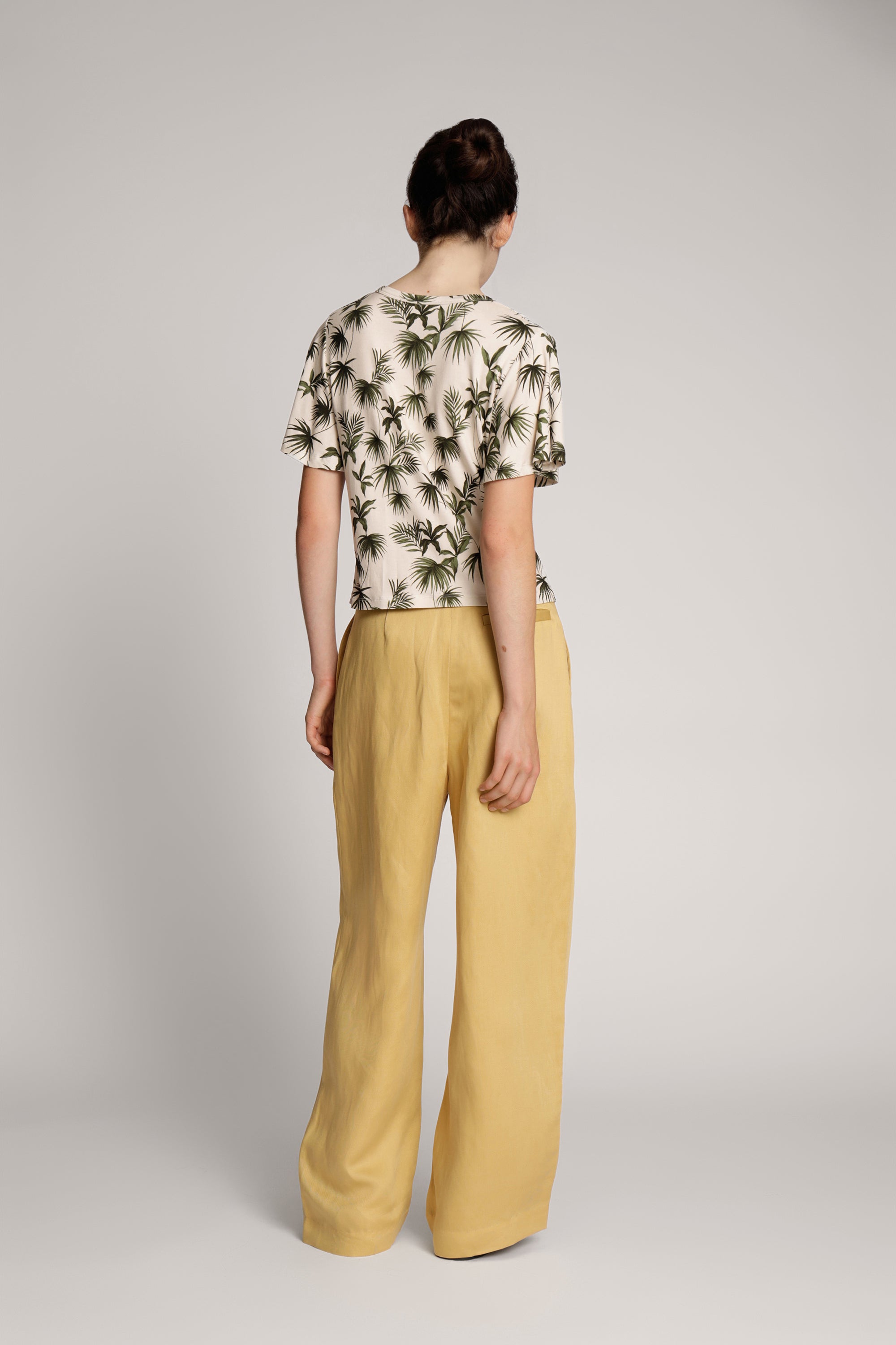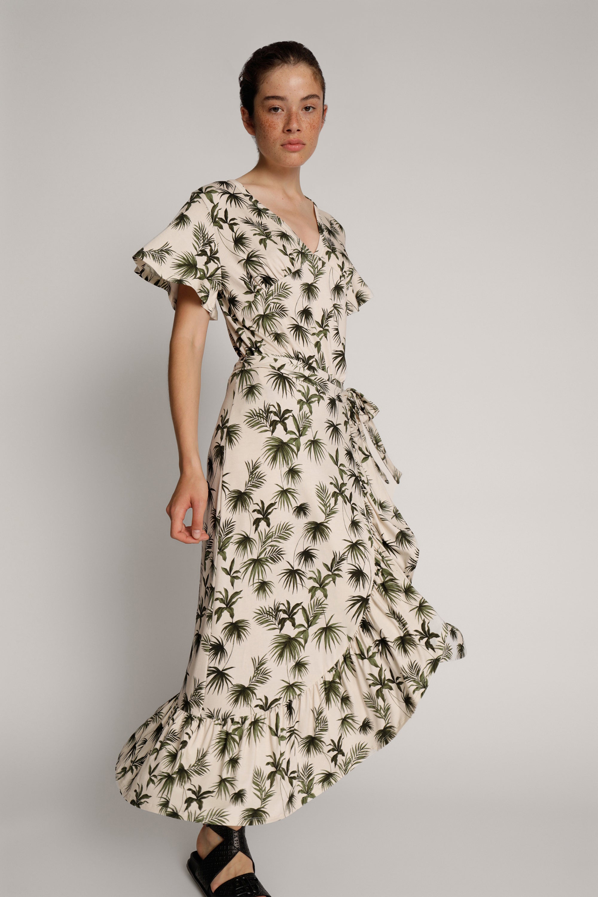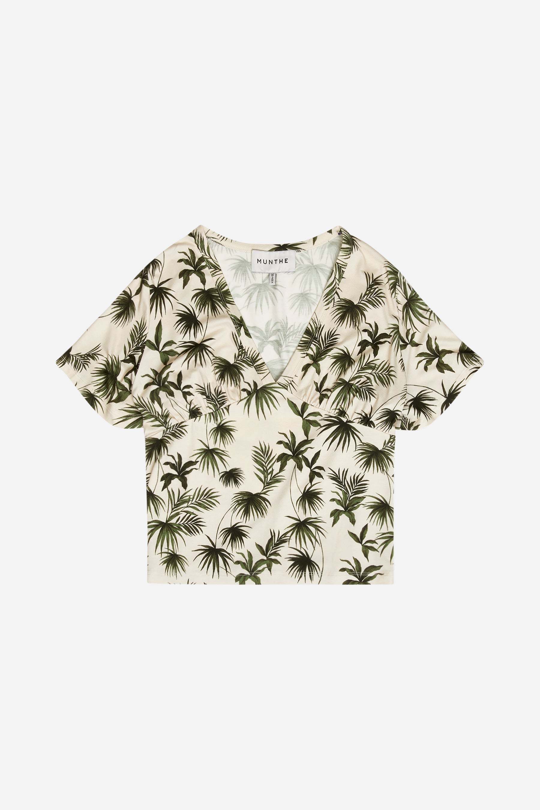Bluse med et smukt print, designet med en dyb v-udskæring og elegante løse ærmer. Blusen er lavet af en blød ecovero blanding og har en normal pasform. Fås i farven olive.
