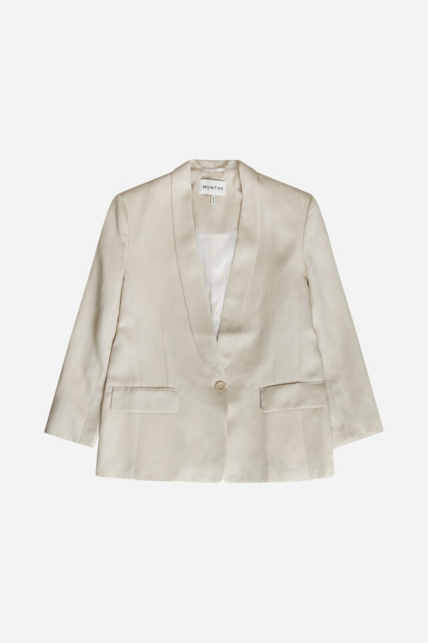 Elegant blazer med et smoking inspireret design. Blazeren har en normal pasform med lige skuldre, lange ærmer og klaplommer foran. Fås i farven gul eller kit.