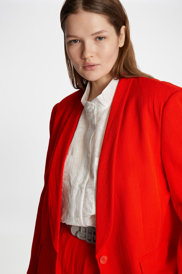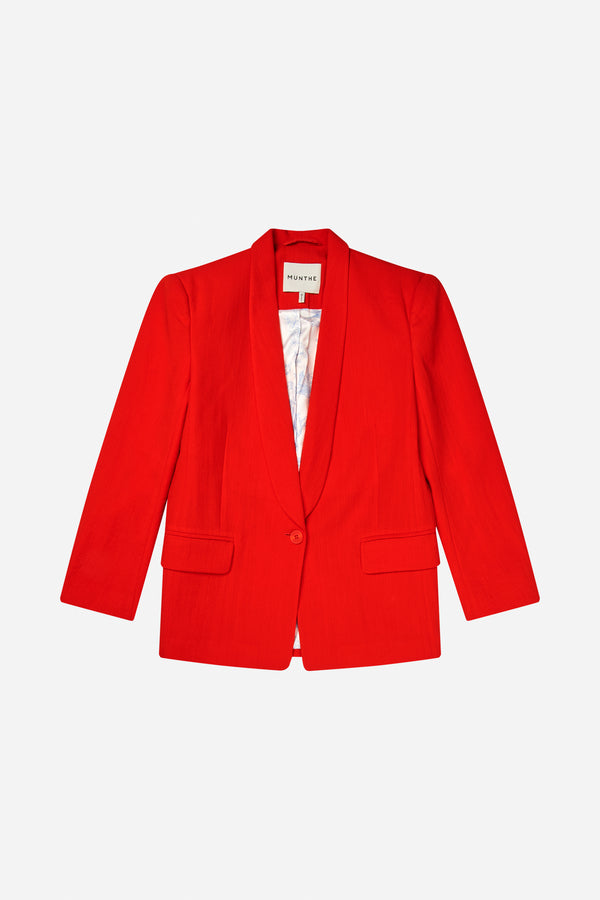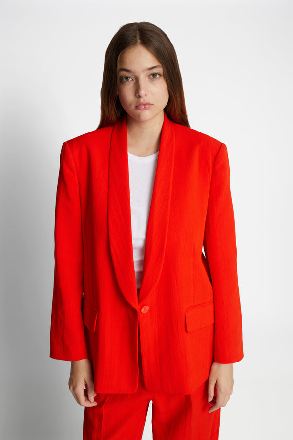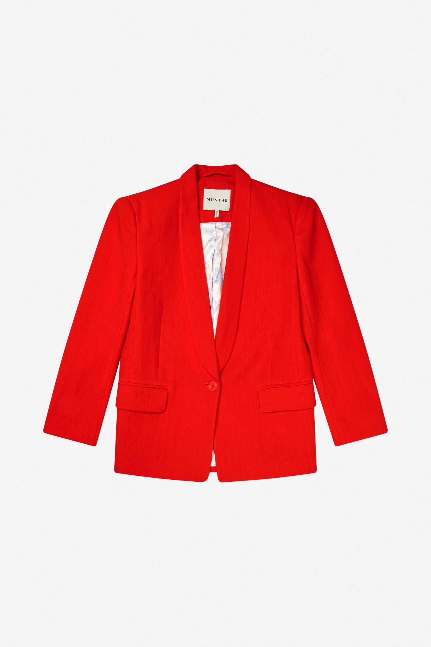 Elegant blazer med et smoking inspireret design. Blazeren har en normal pasform med lige skuldre, lange ærmer og klaplommer foran.