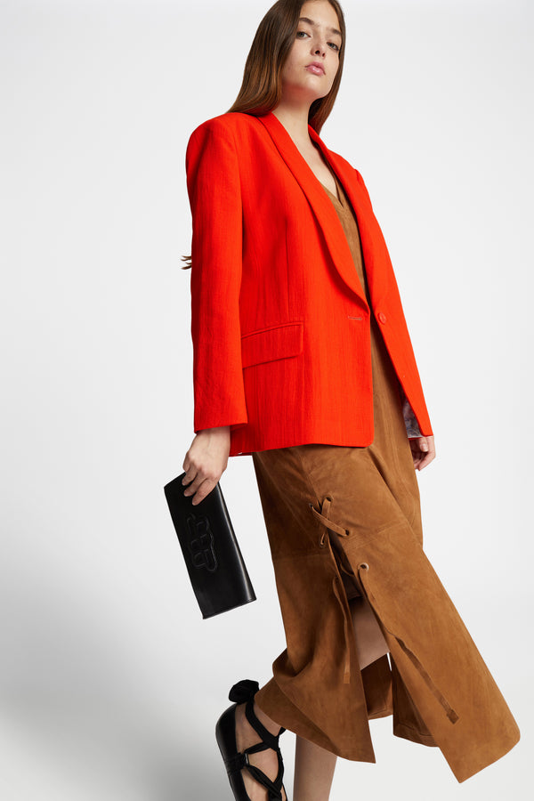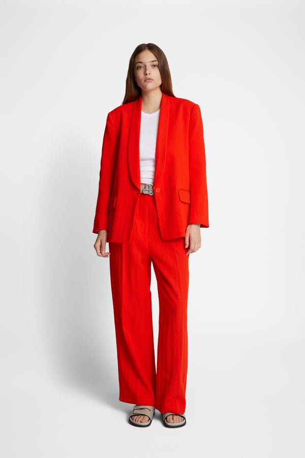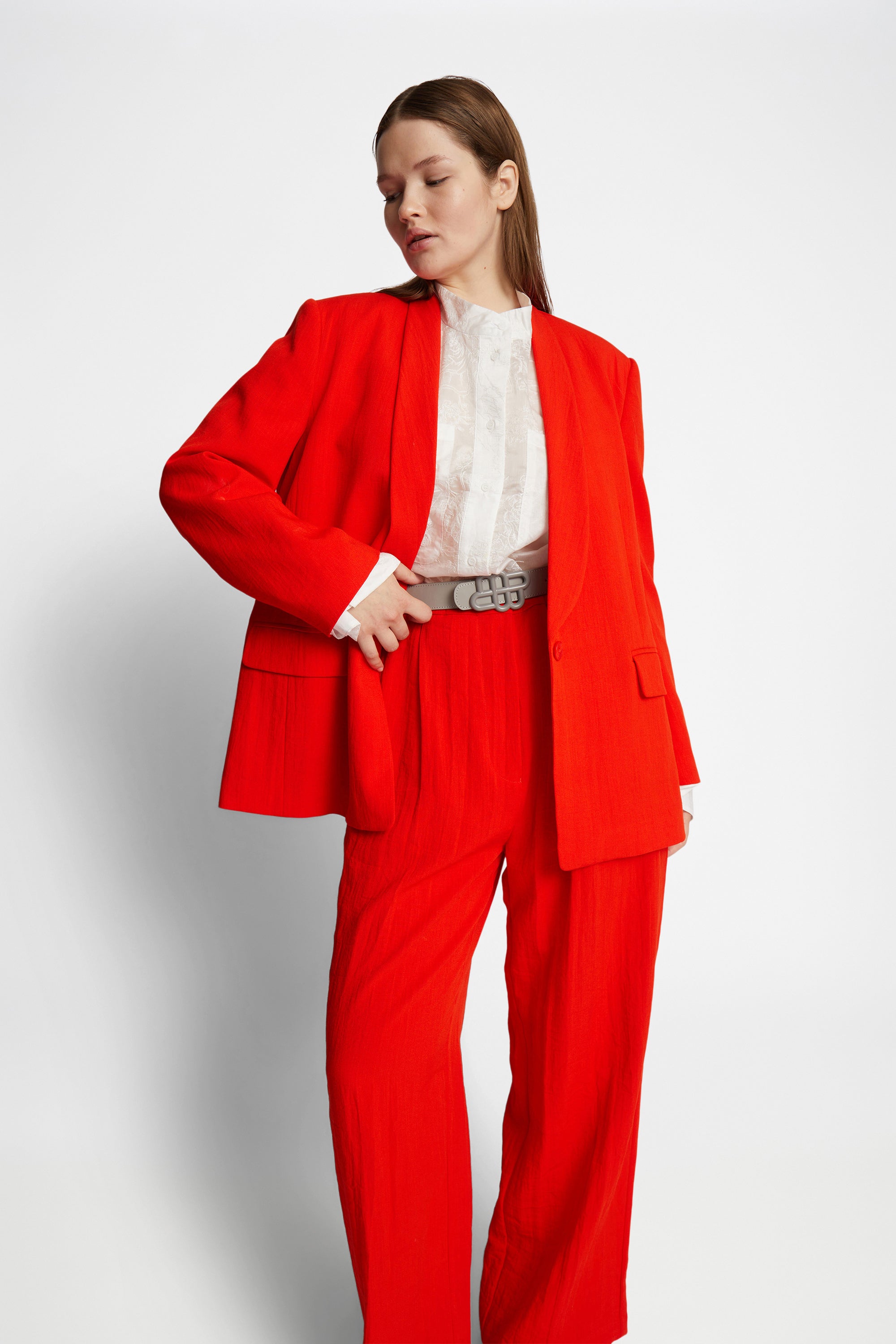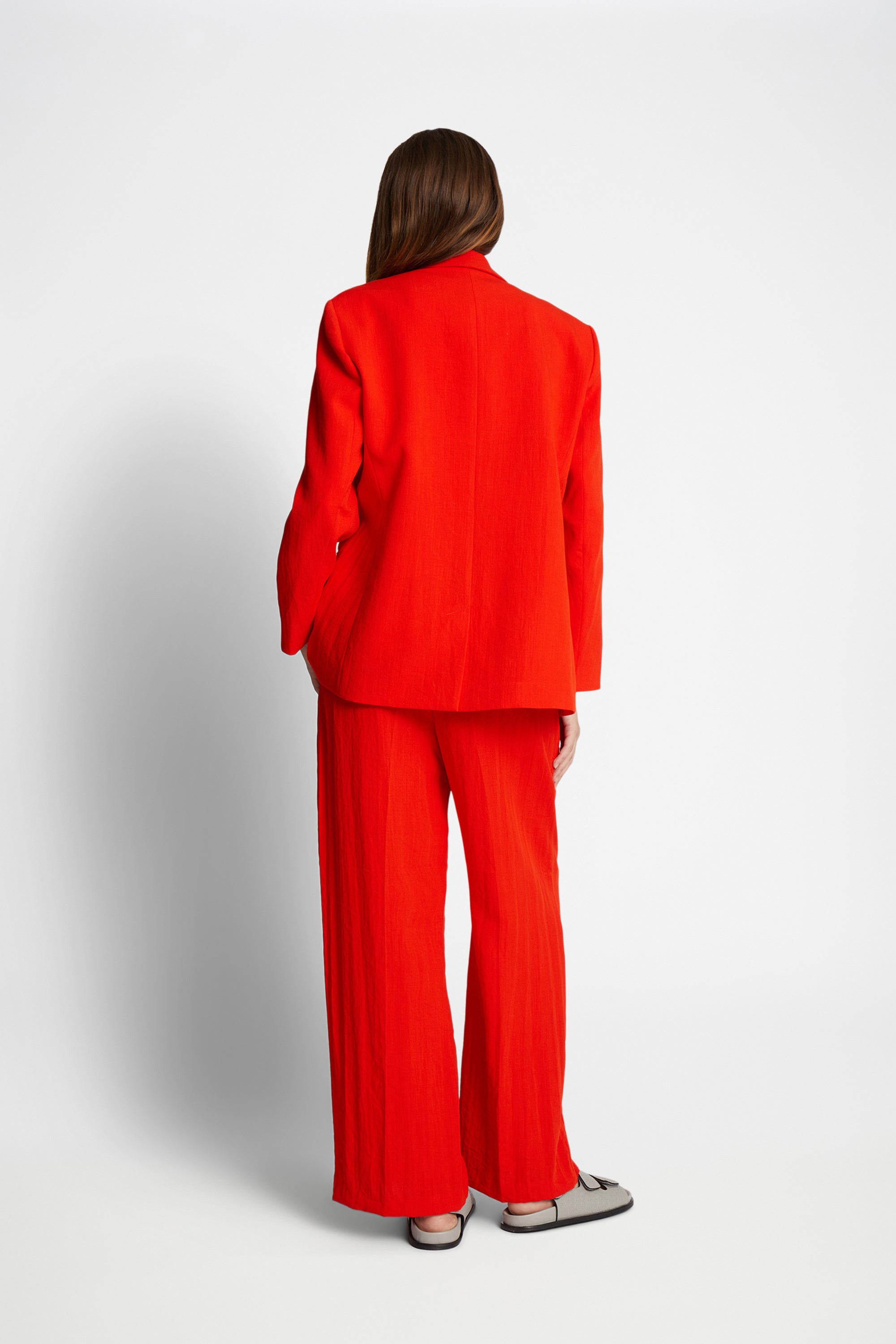 Elegant blazer med et smoking inspireret design. Blazeren har en normal pasform med lige skuldre, lange ærmer og klaplommer foran.