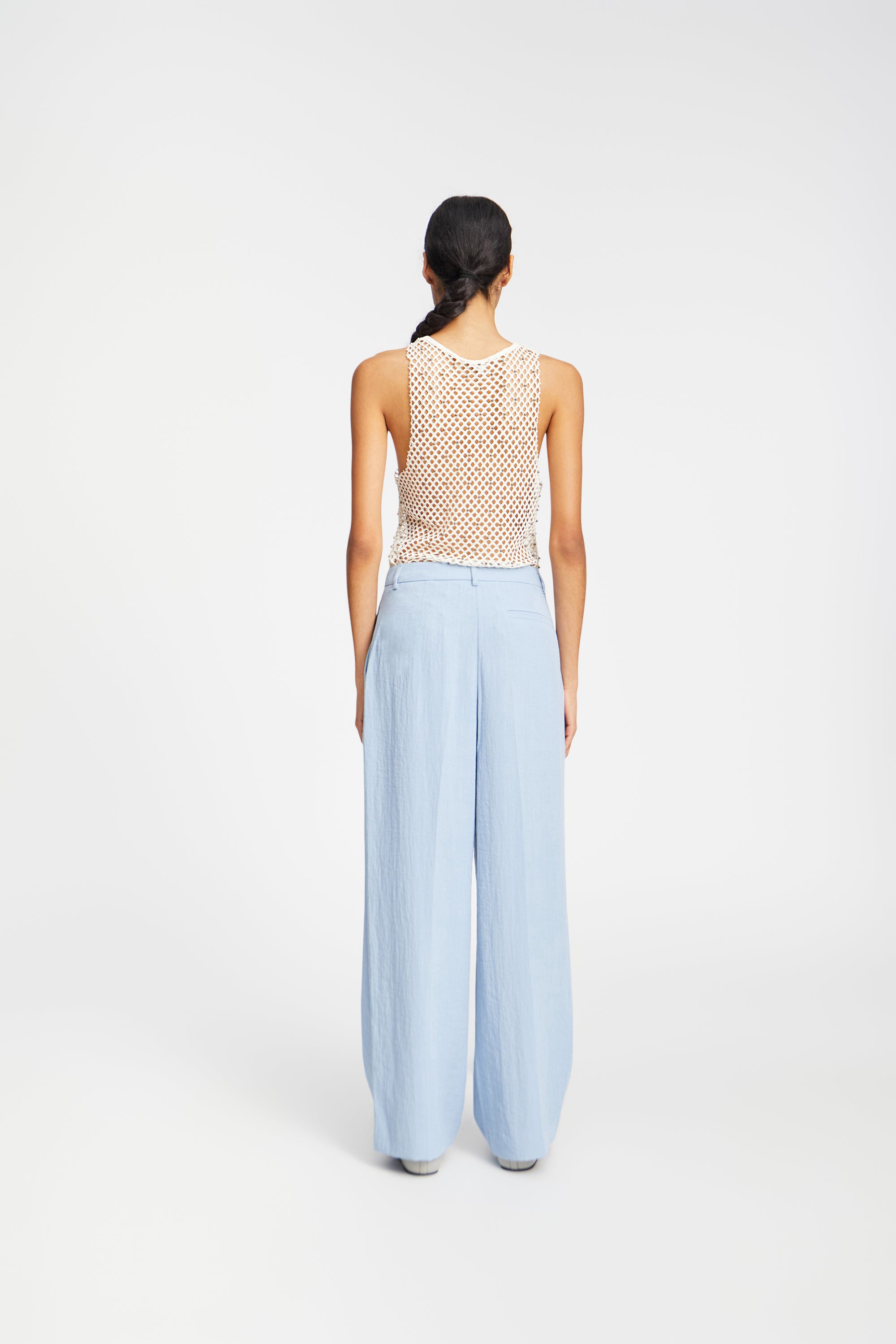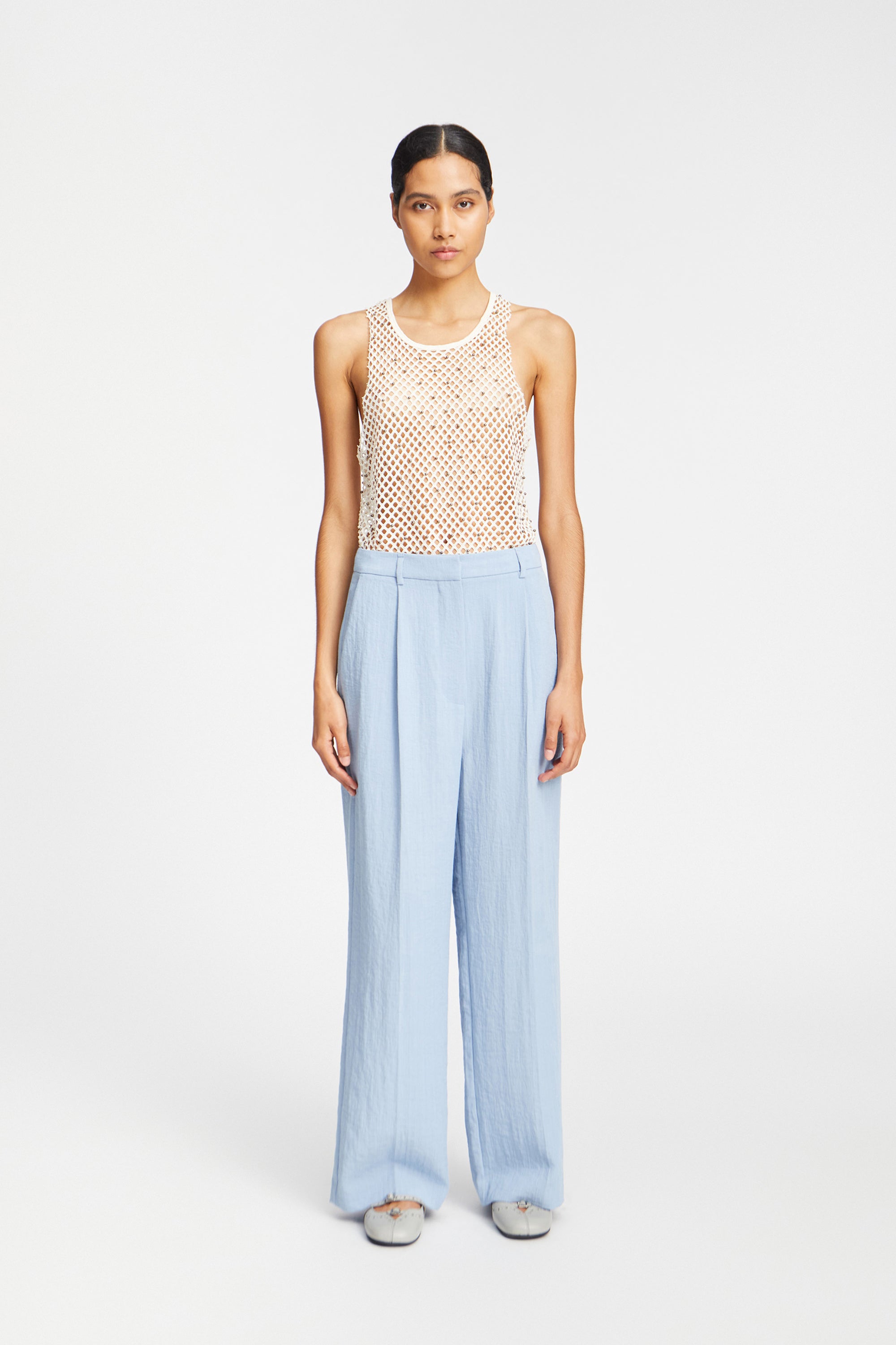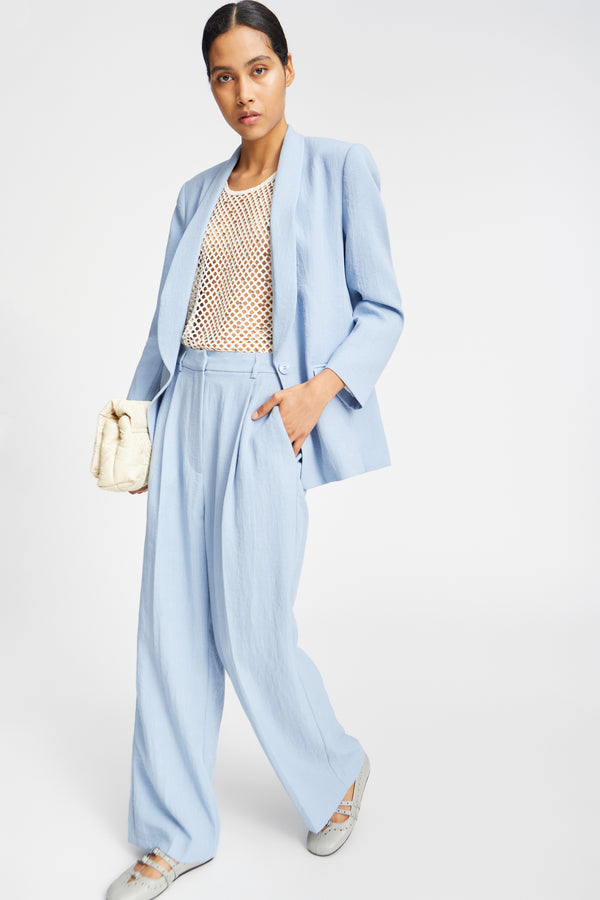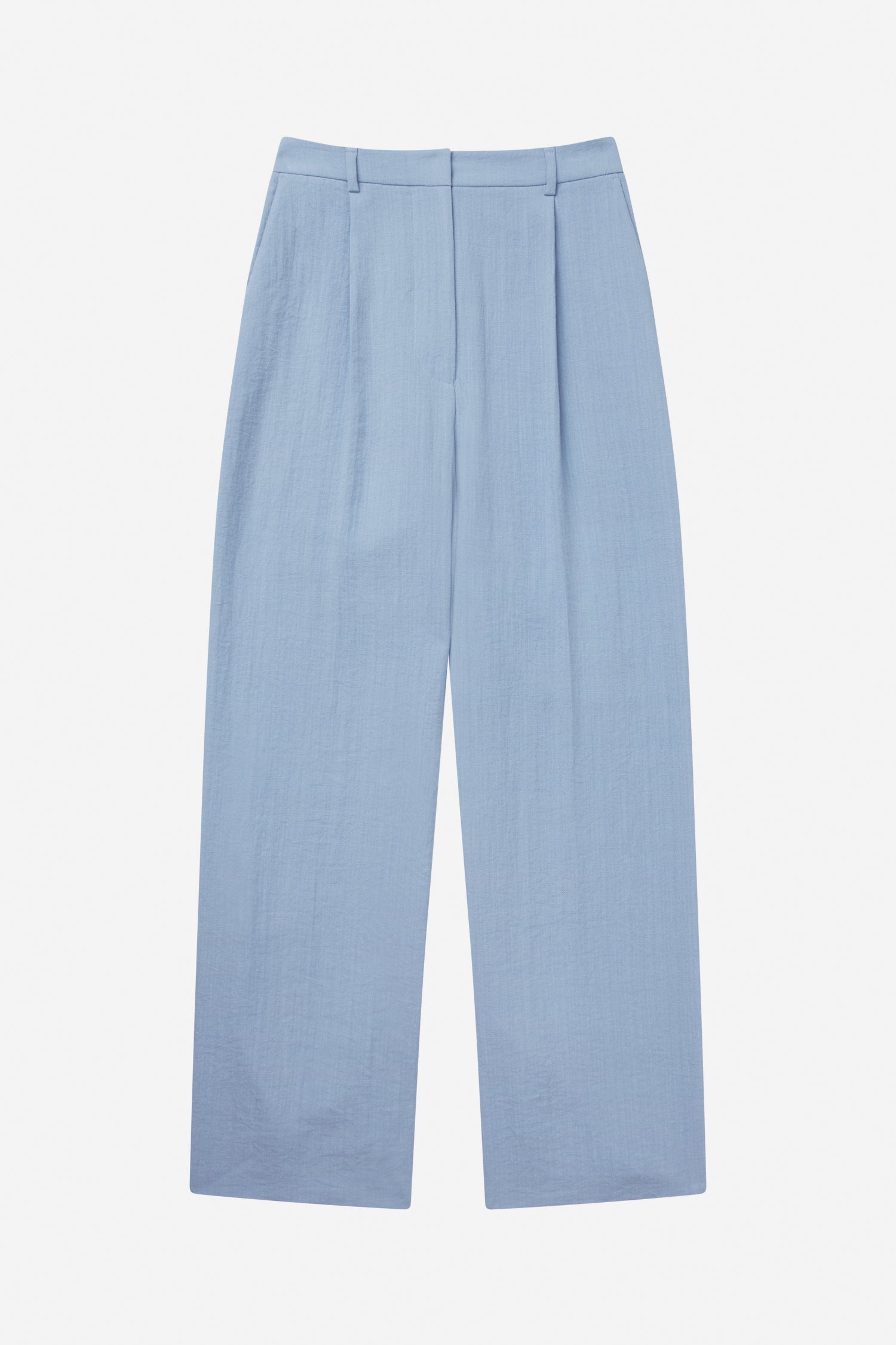 Klassiske jakkesæts bukser med elegante detaljer som pressefolder og lommer i siderne. Bukserne har lynlås foran.