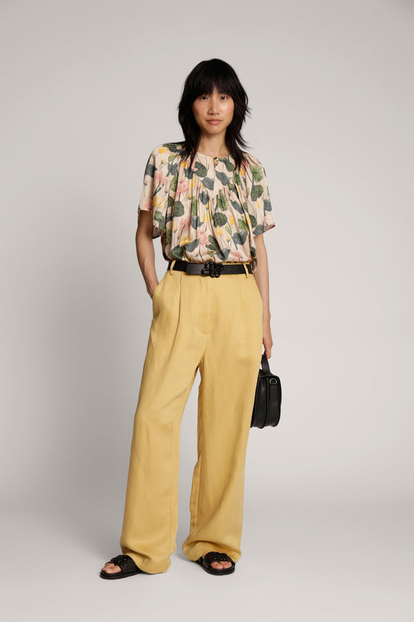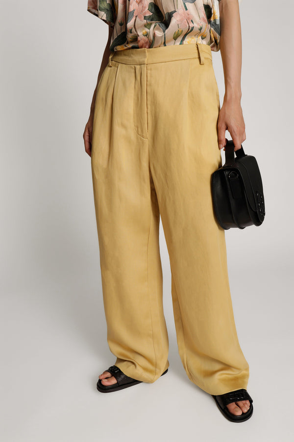 Klassiske jakkesæts bukser med elegante detaljer som pressefolder og lommer i siderne. Bukserne har lynlås foran.