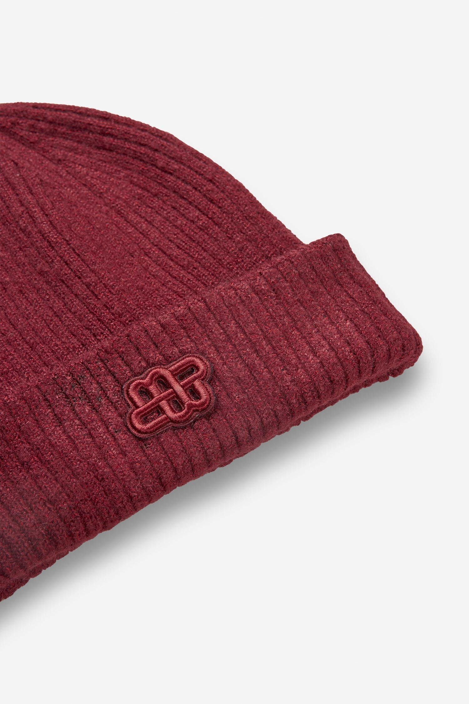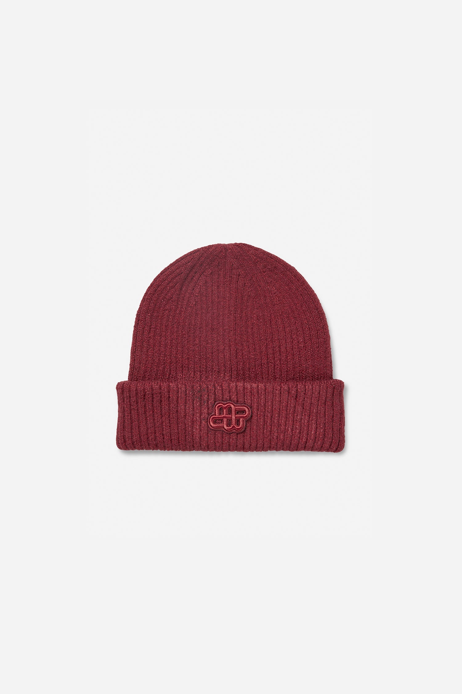 En smuk ribstrikket hue med et elegant MUNTHE-emblem på forsiden. Fremstillet af en blød blanding af genanvendt polyester.