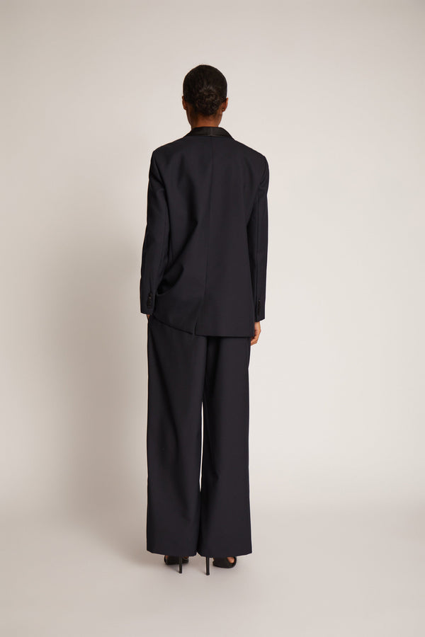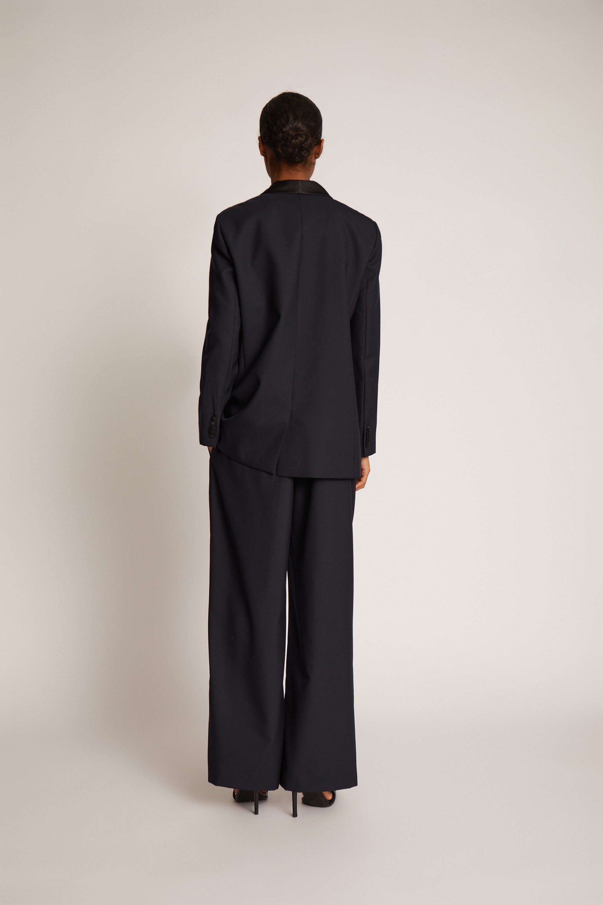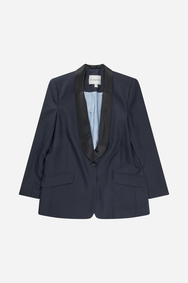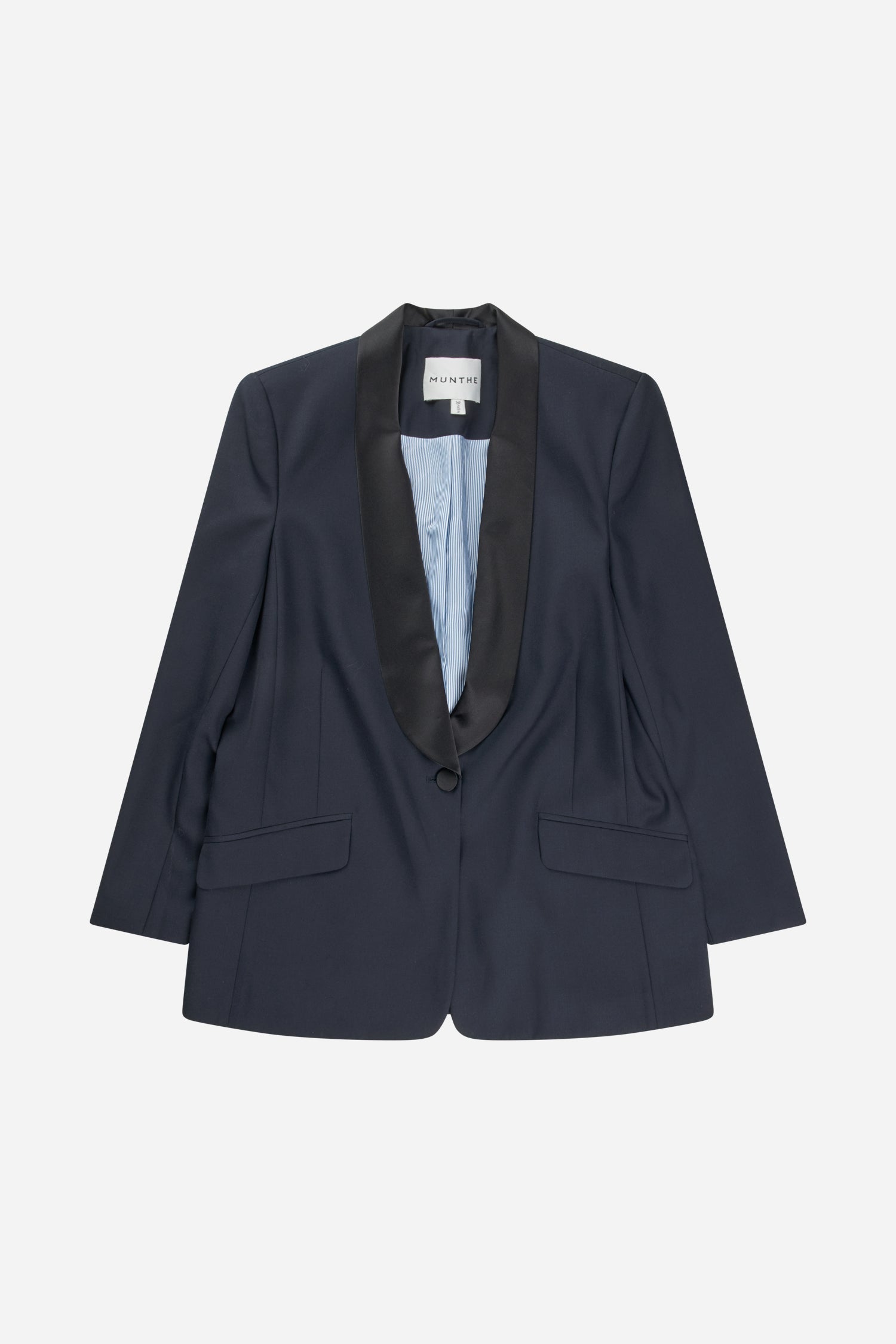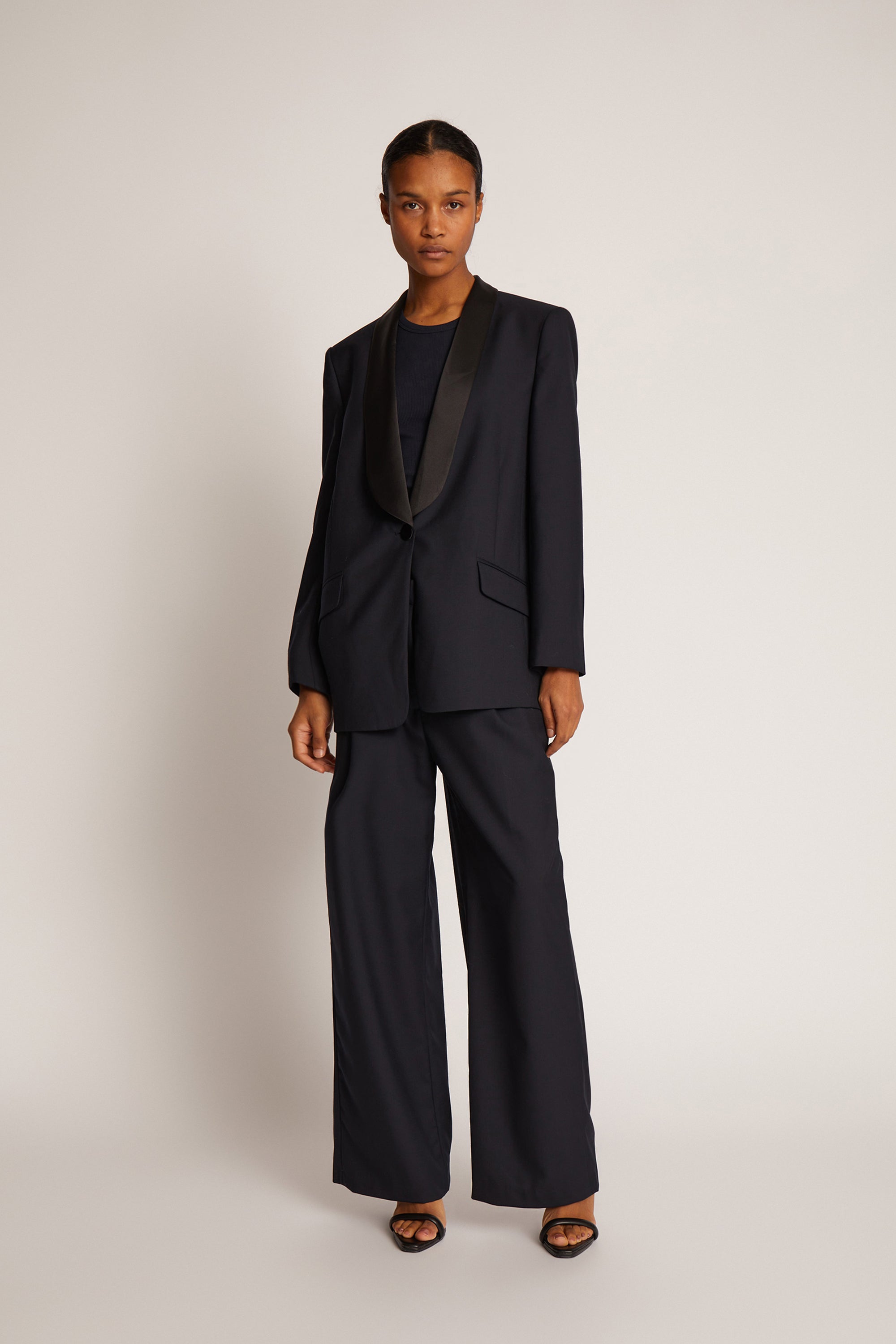 Blazer med et elegant smoking inspireret design. Blazeren har en normal pasform med lige skuldre, lange ærmer og klaplommer foran.