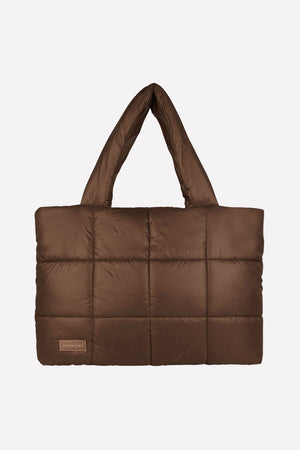 Taske med en blød hank, designet med en elegant polstring struktur og et lille MUNTHE logomærke. Tasken er lavet af 100% genanvendt polyester.