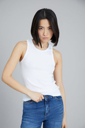 Tank top designet i en blød ecovero viscose blanding. Denne tank er designet i en rib kvalitet med en rund hals og en tætsiddende pasform.
