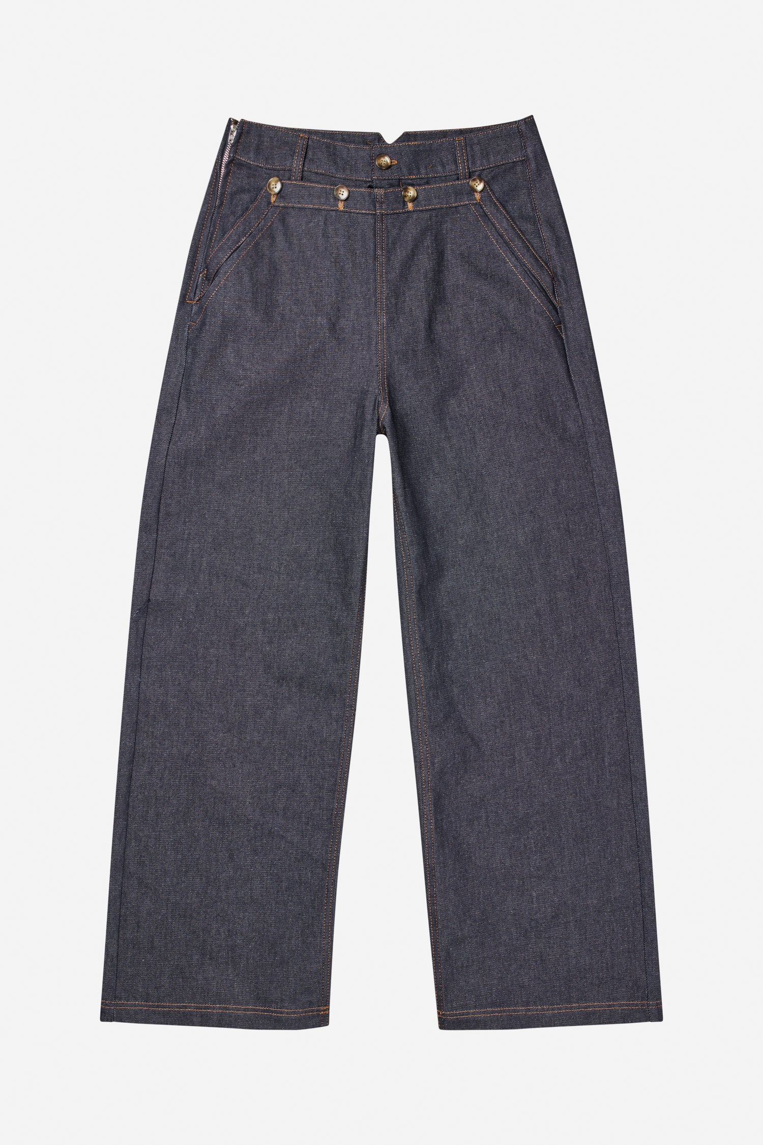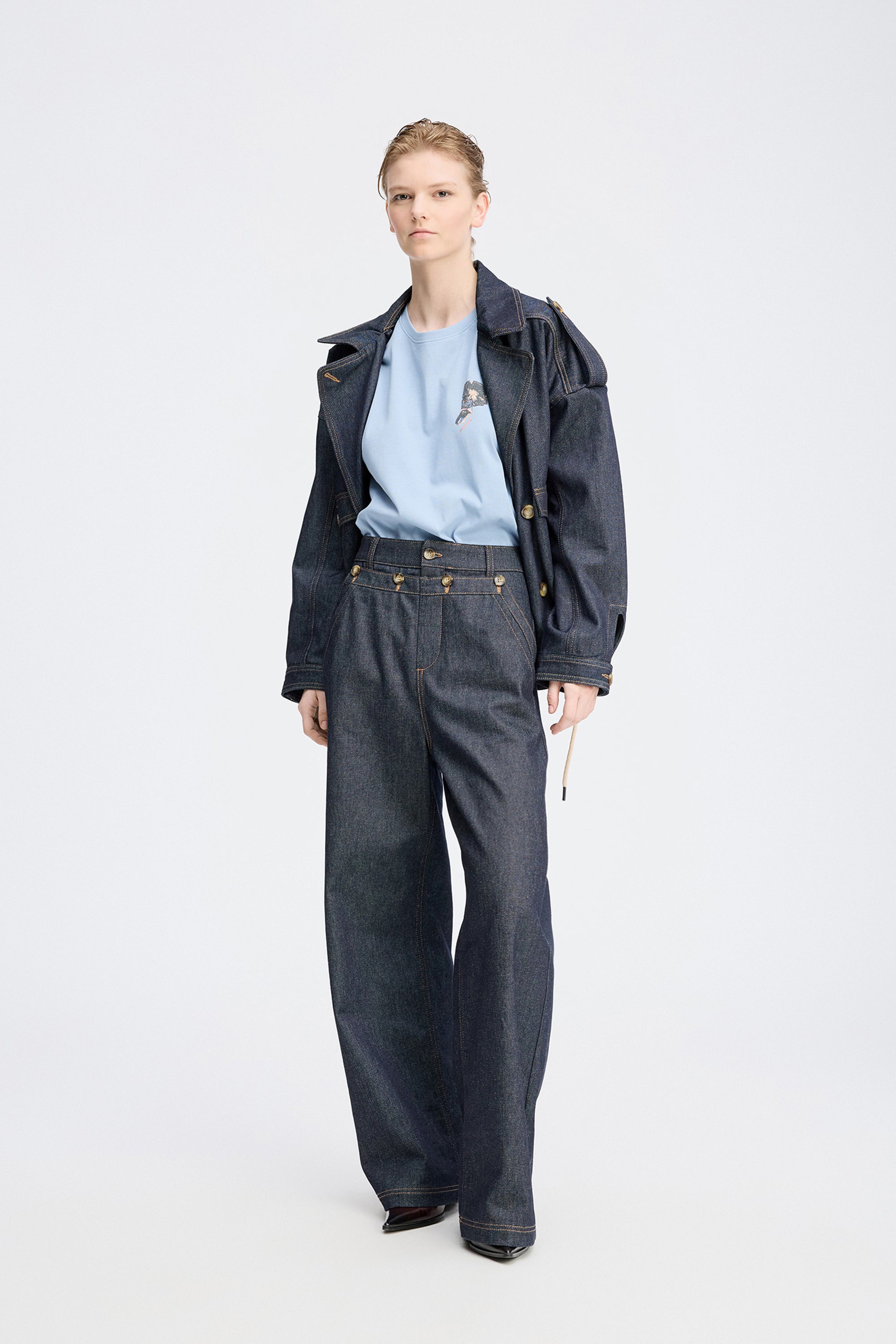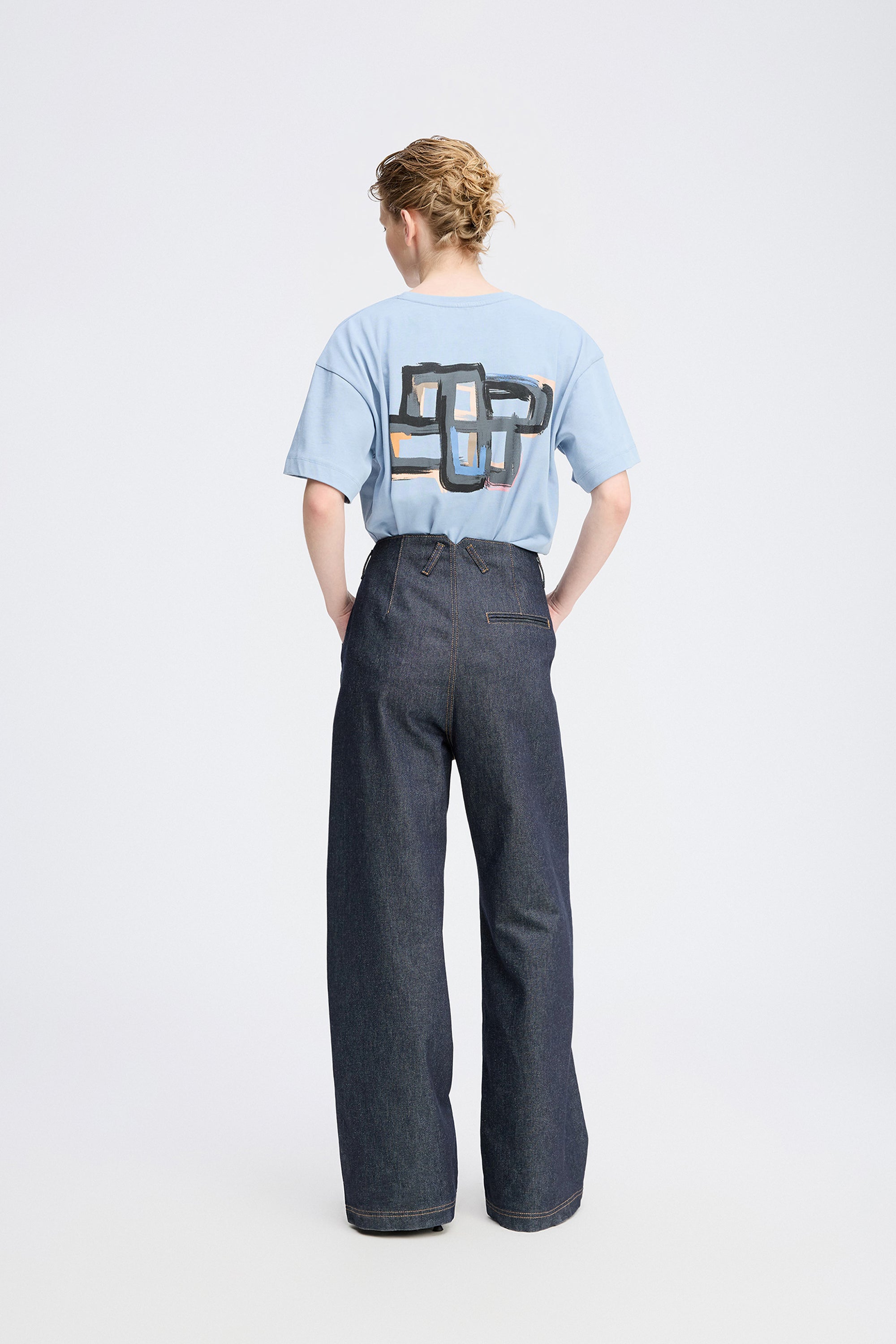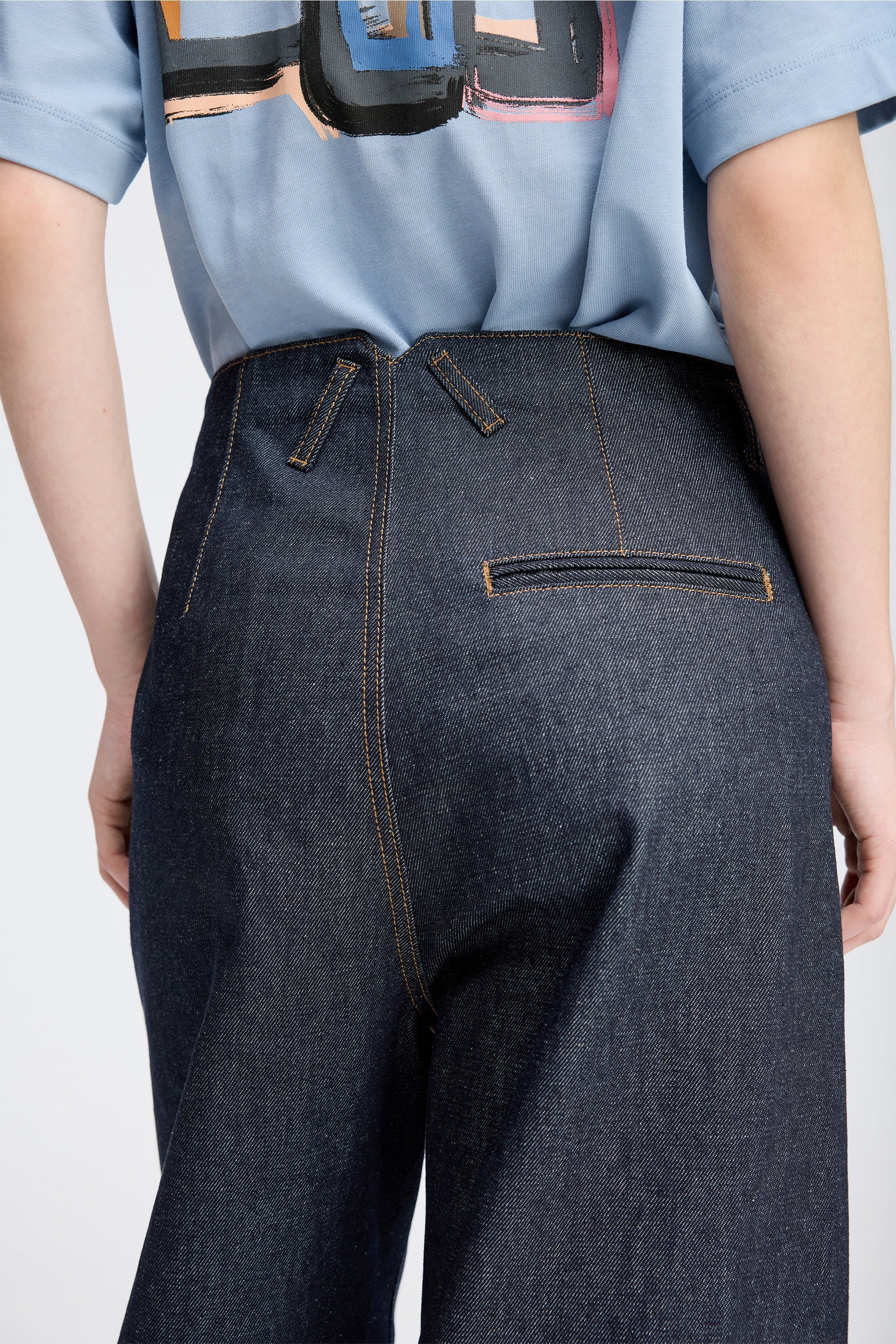 For at holde dit rå denim pænt, anbefaler vi at vaske det skånsomt på et mildt program, med skånsomt vaskemiddel. På grund af rå denims natur, kan der forekomme en naturlig farveændring med tiden – det er helt normalt og giver dit denim et unikt look over tid.