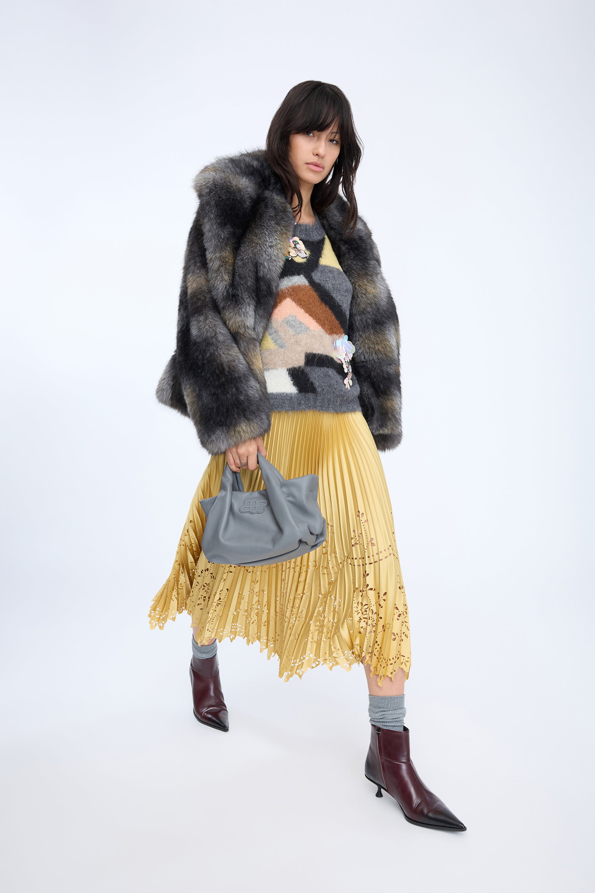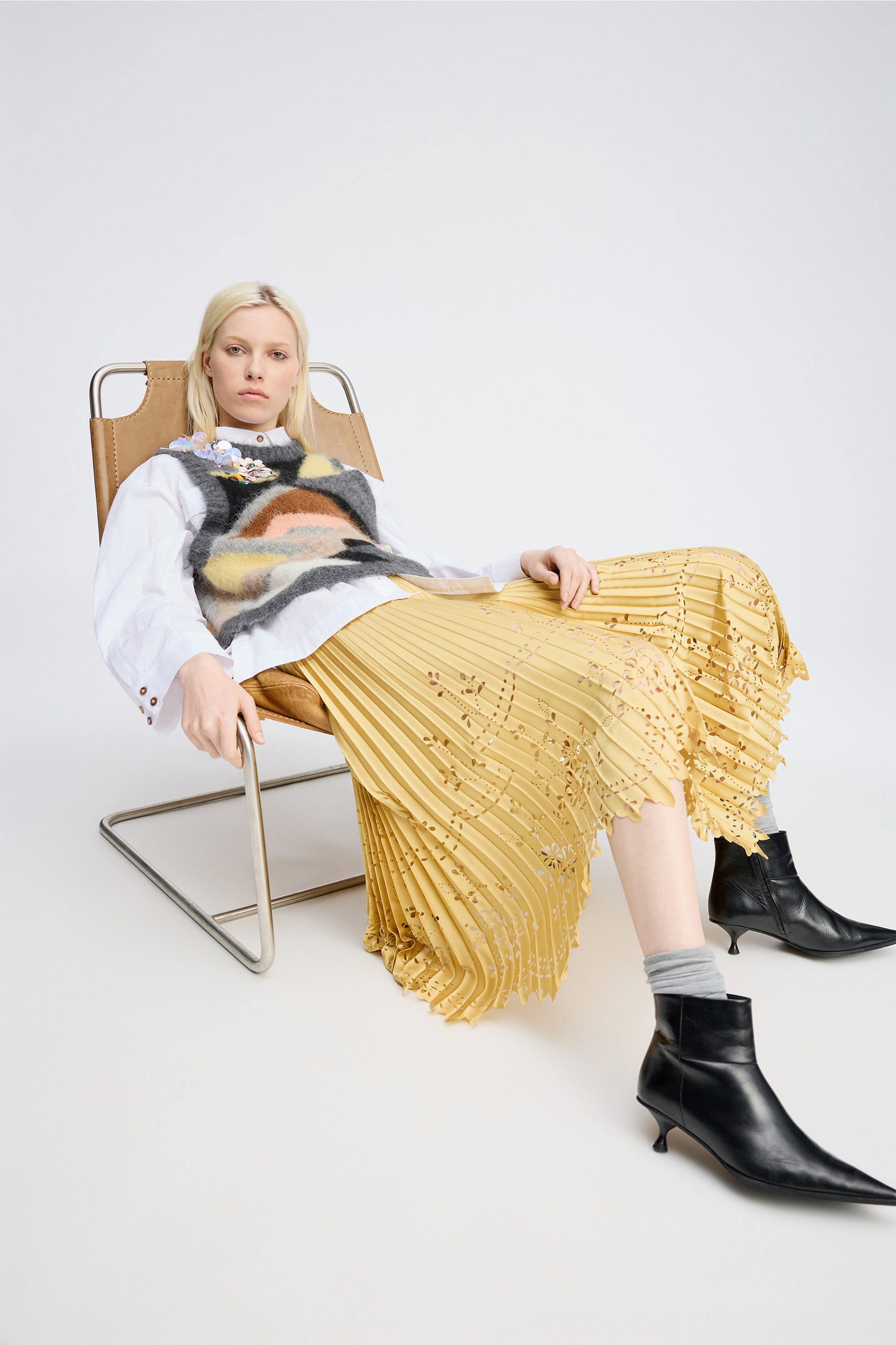 Elegant plisseret nederdel med smukke laserskårne detaljer. Designet med en elastisk talje prydet med et diskret MUNTHE-logo.
