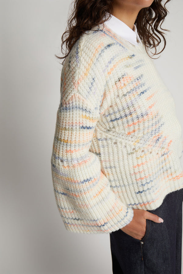 Blød strik med en smuk nistret struktur, lavet af en blød uldblanding. Denne strik er designet med elegante ærmer med en voluminøs finish og er lavet til en normal pasform.
