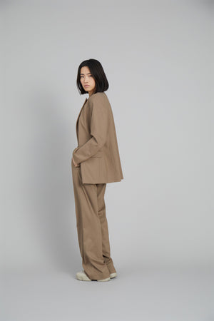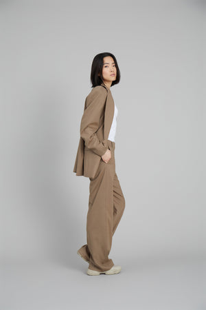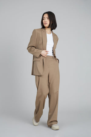 Elegant blazer i en genanvendt polyester- og uldblanding. Blazeren har lange ærmer med knapper bagpå ærmet, og er designet i en almindelig pasform med klaplommer foran, og en enkelt knap til at lukke blazeren med.