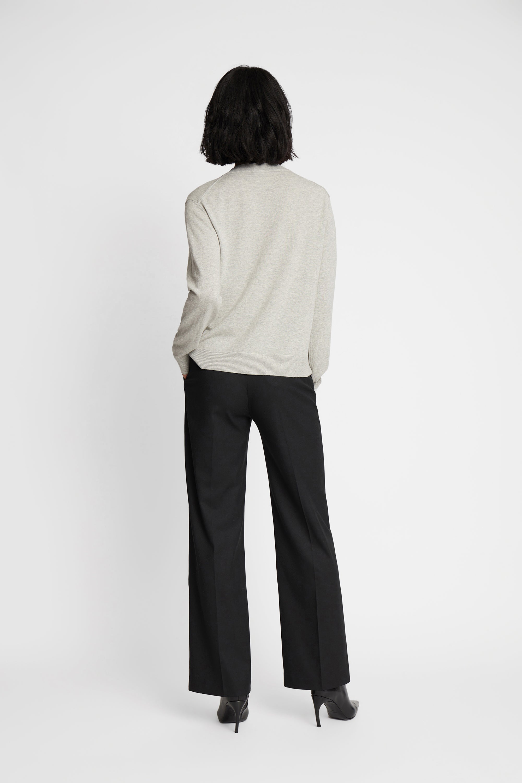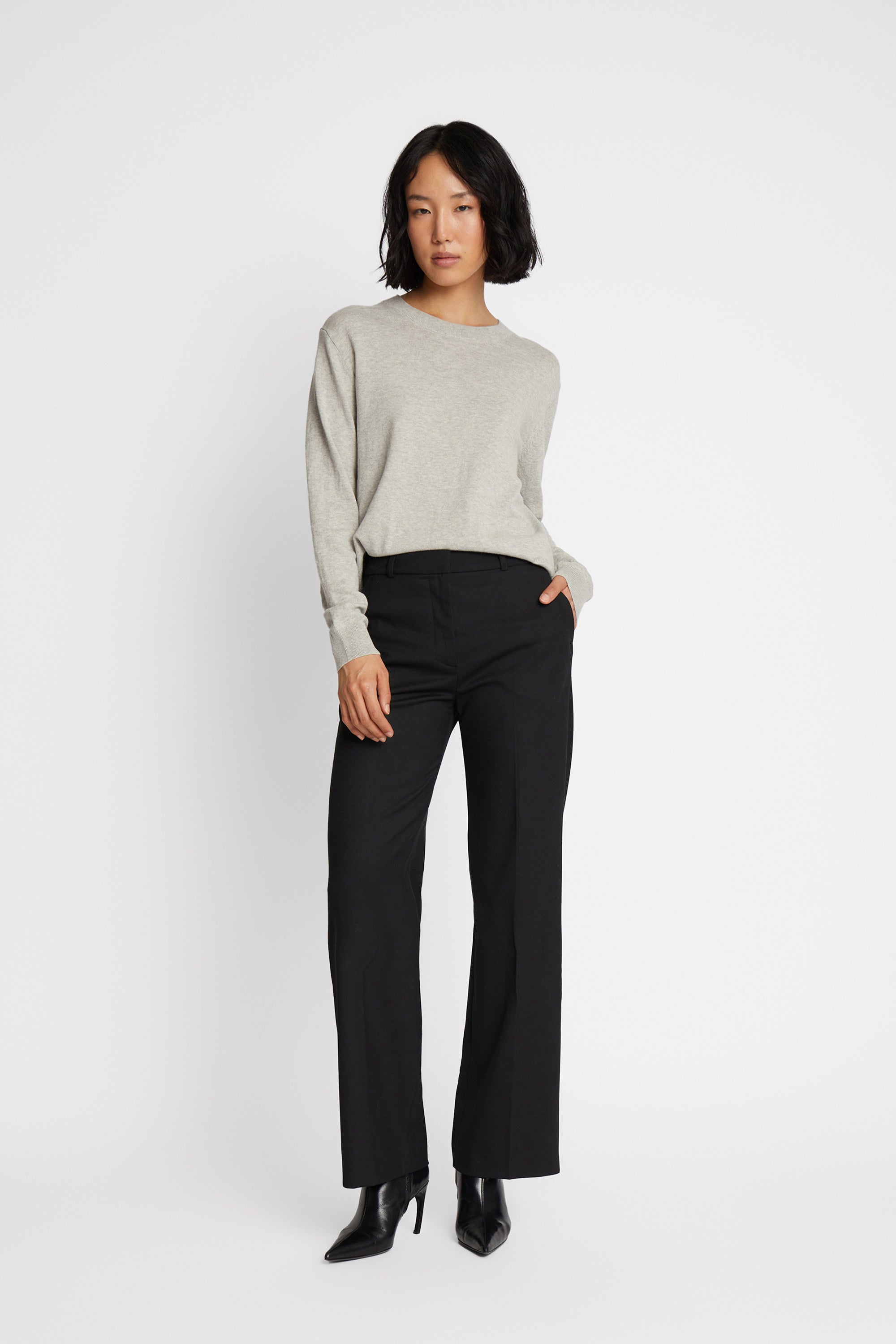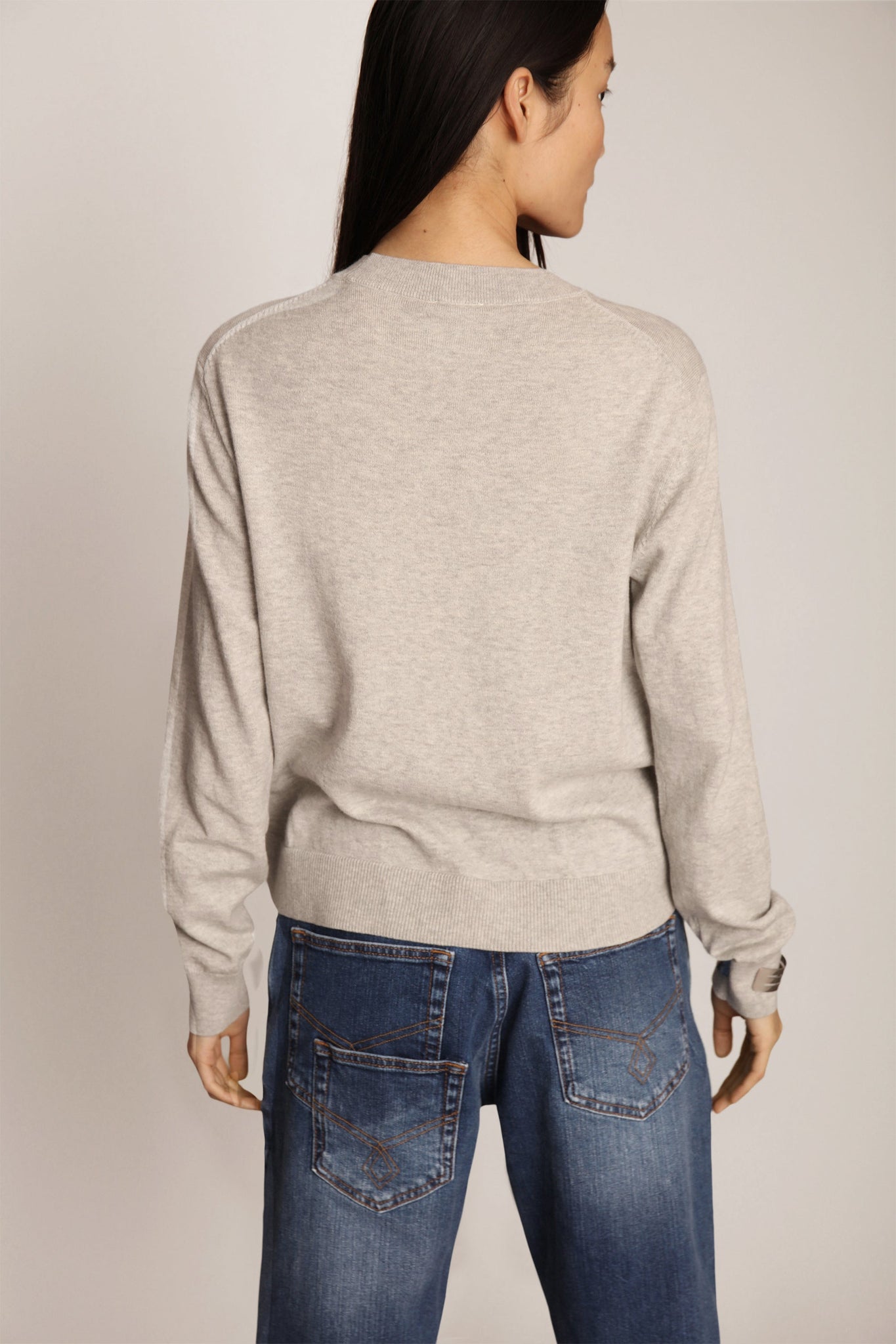 Klassisk let strik lavet af en blød merinould blanding. Denne strik har lange ærmer, en rund halsudskæring og en elegant rib langs kanterne.