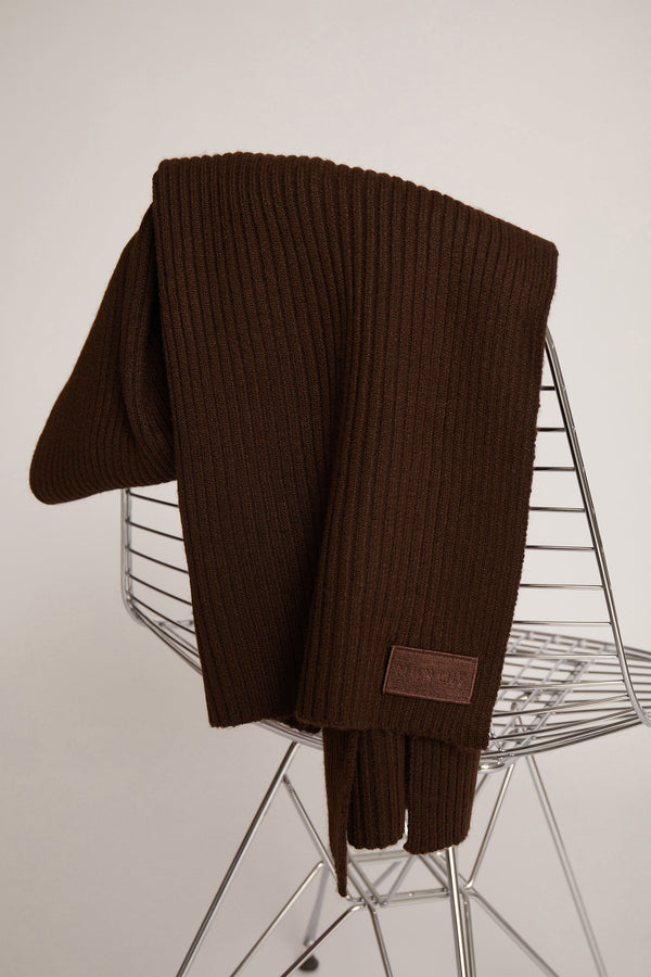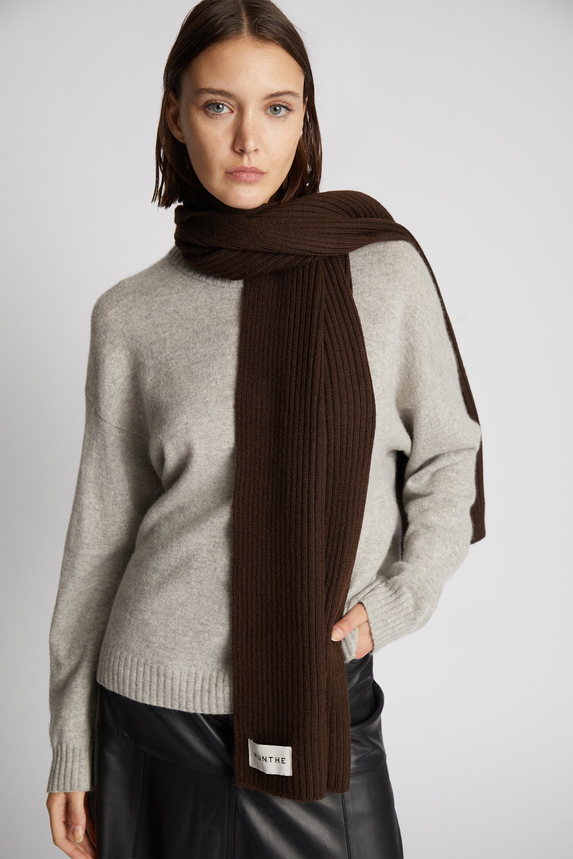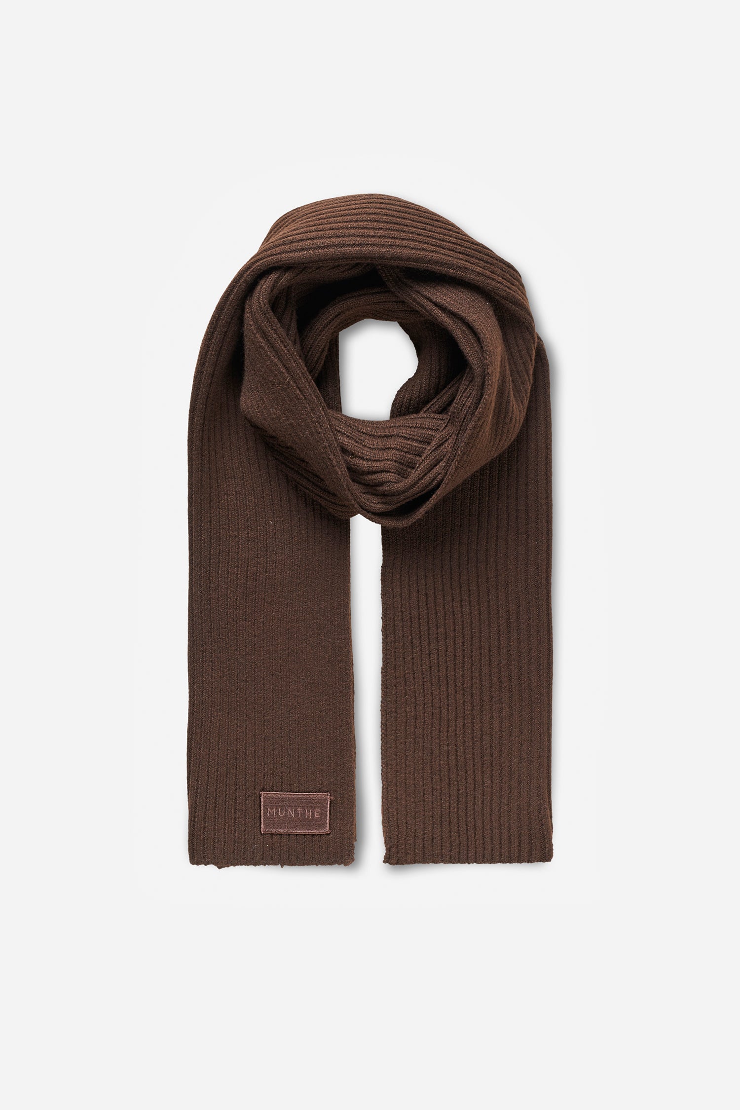 Et blødt ribstrikket halstørklæde med et elegant MUNTHE logo patch.