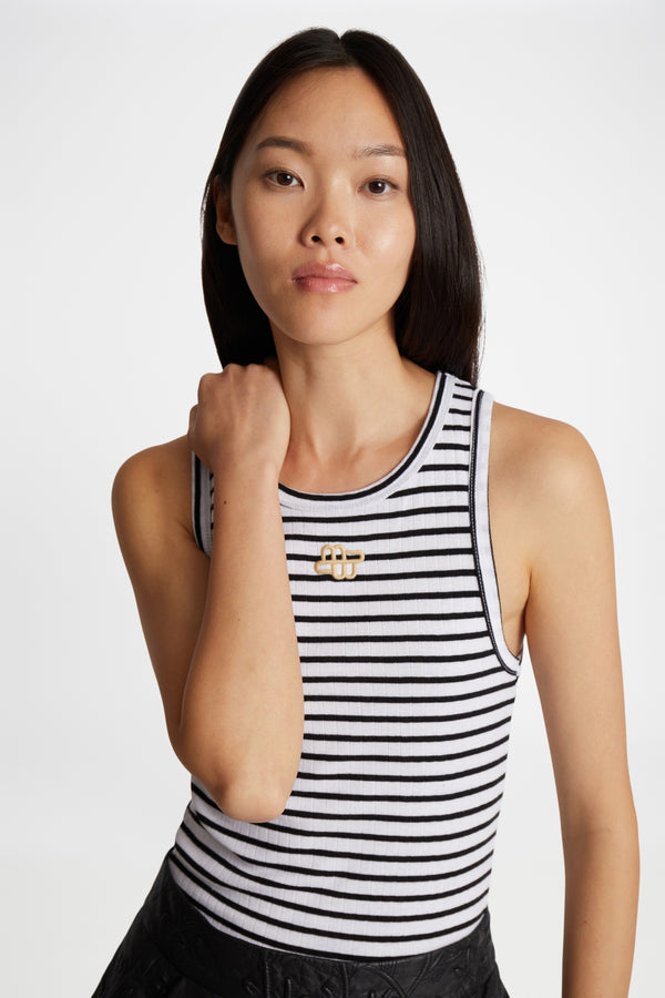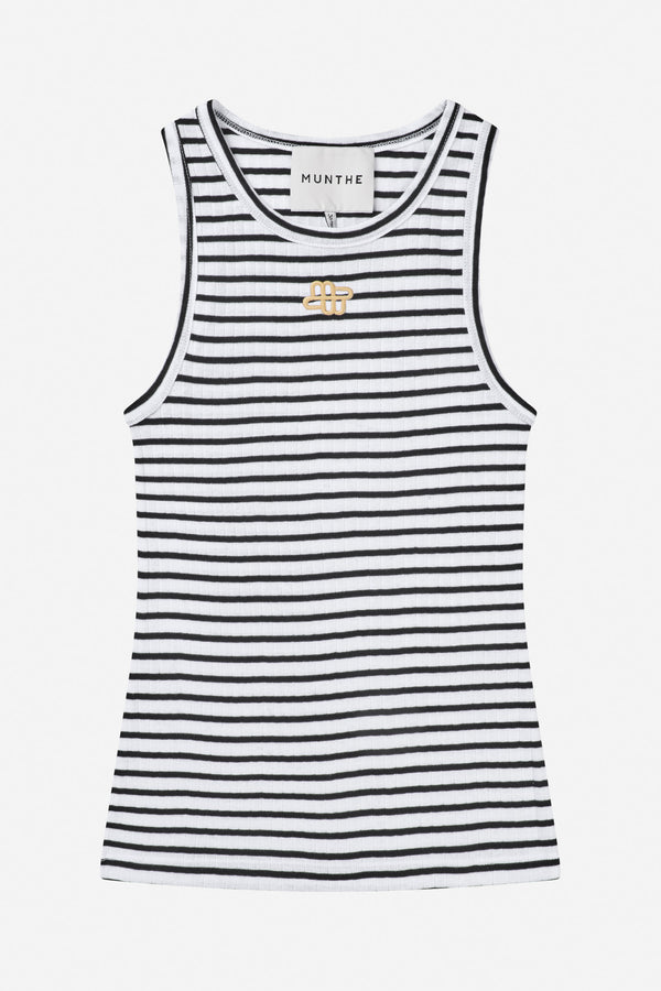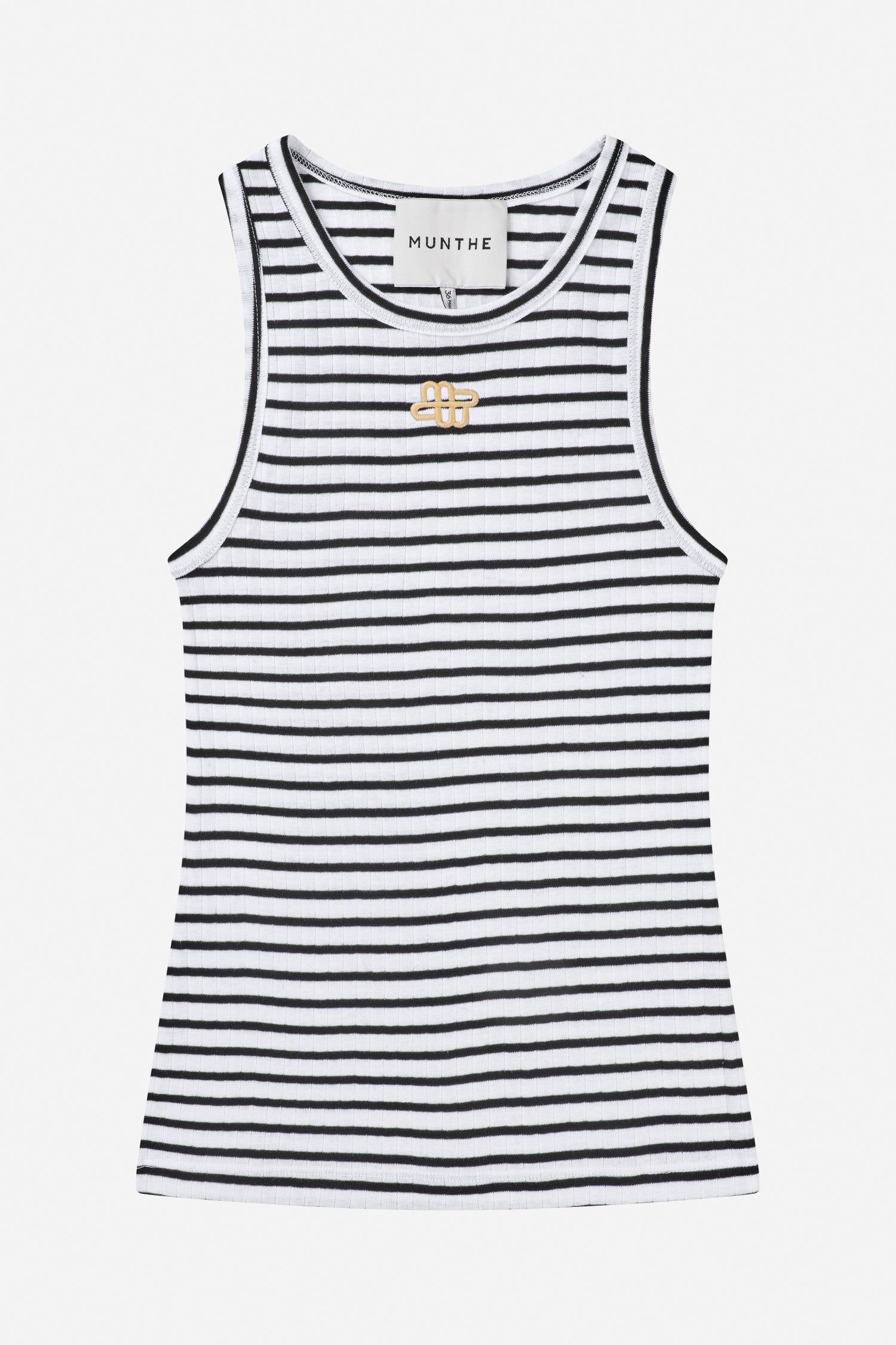 Tank top i 100 % økologisk bomuld med et elegant MUNTHE emblem broderi på brystet. Denne Tank top er designet til en tæt pasform med en rund halsudskæring.