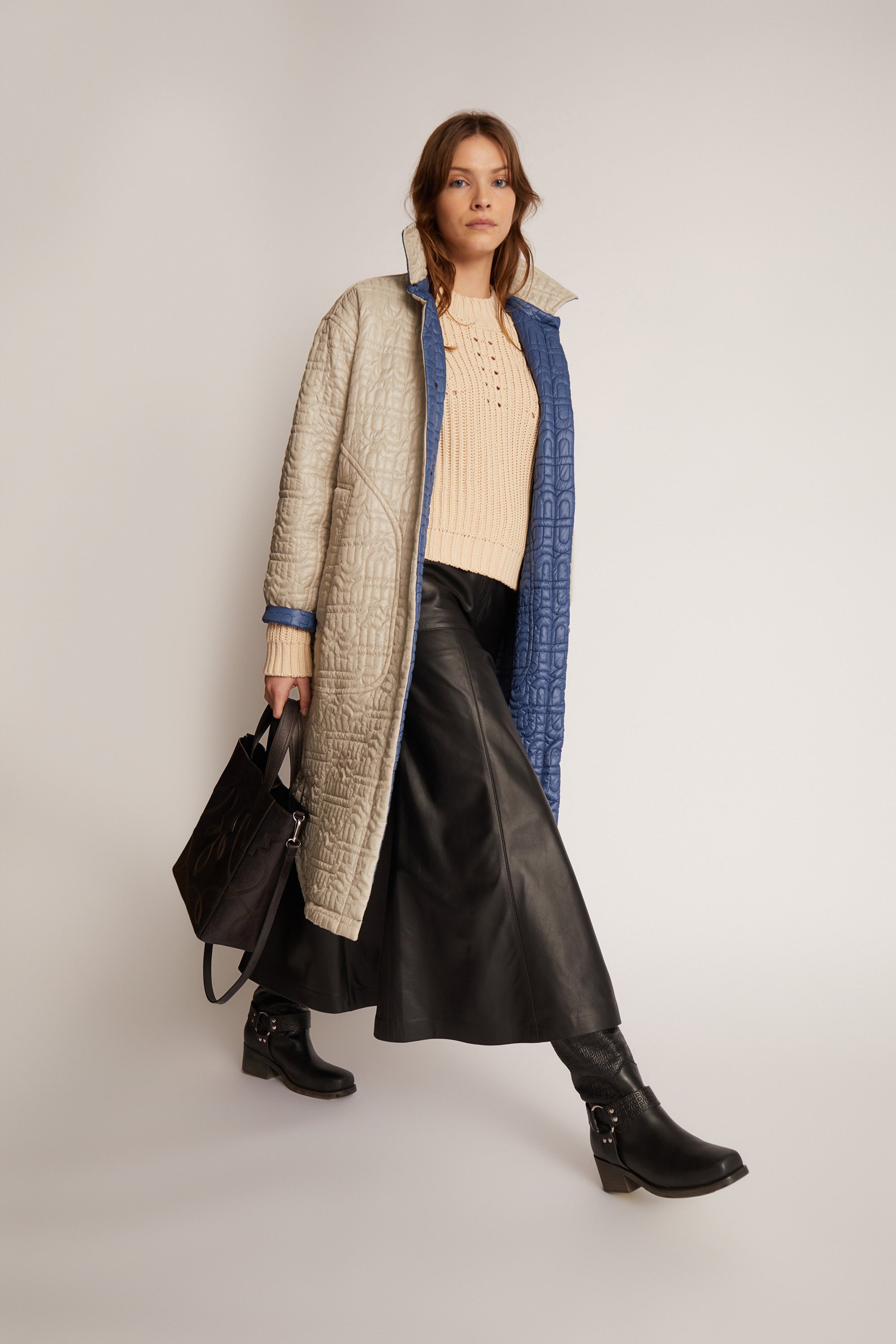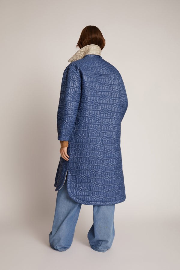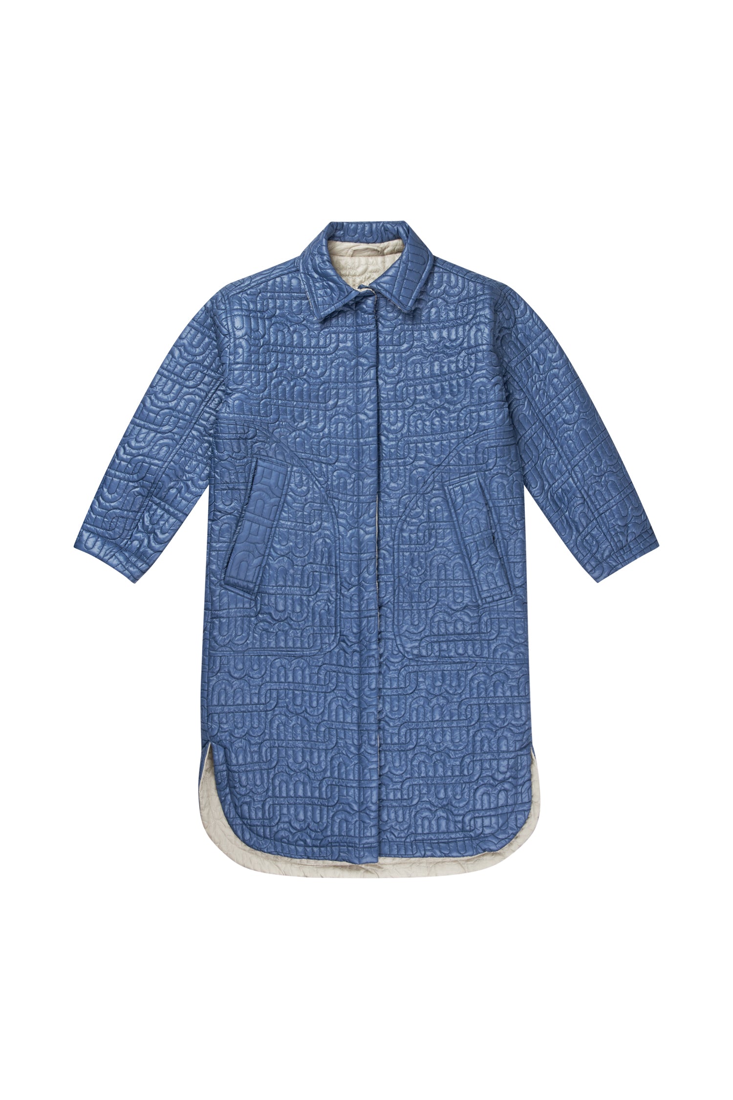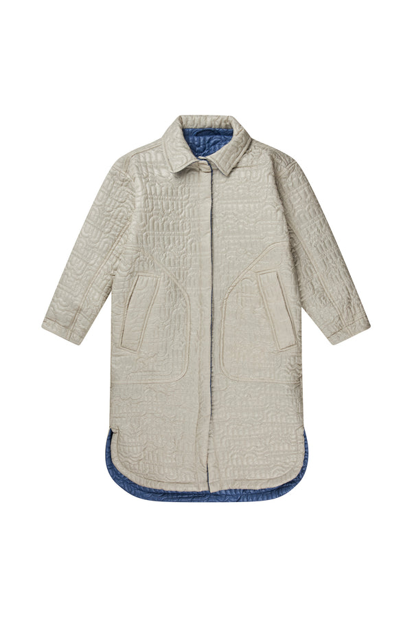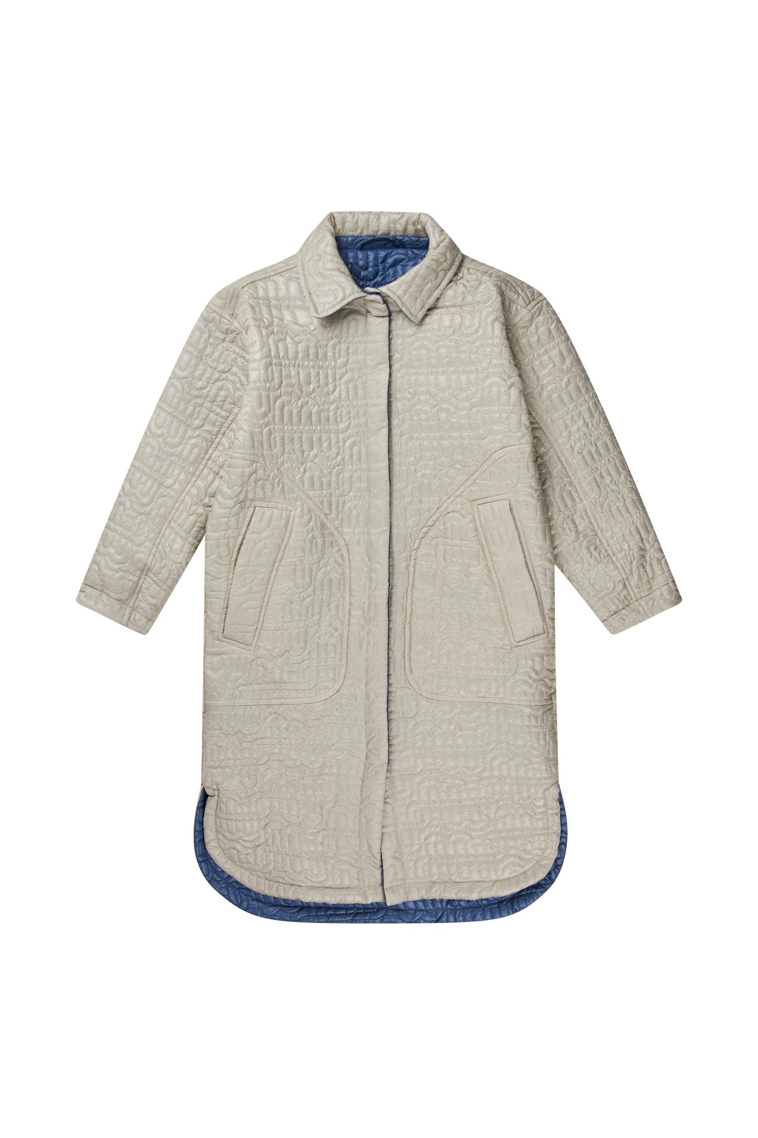 En smuk, alsidig, polstret jakke, designet med mulighed for at vende jakken, og opnå et farveskift. Jakken er lavet med lommer, skjult knaplukning foran, en elegant krave og små slidser i siderne af jakken.