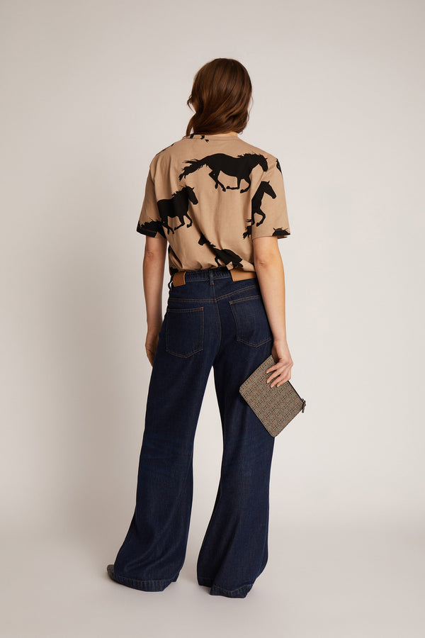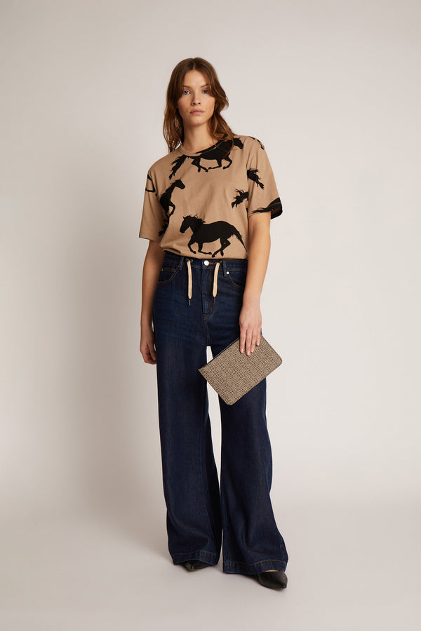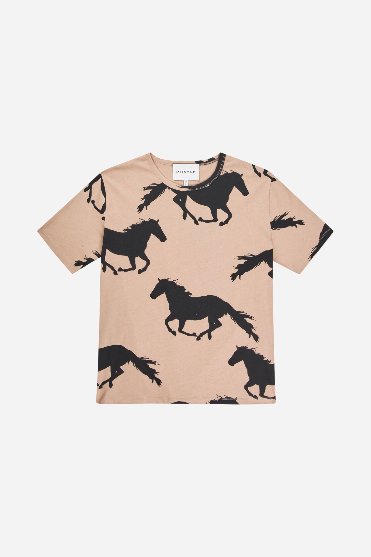 T-shirt i 100% økologisk bomuld med et elegant heste print. T-shirten har en løs pasform, rund hals og korte ærmer.
