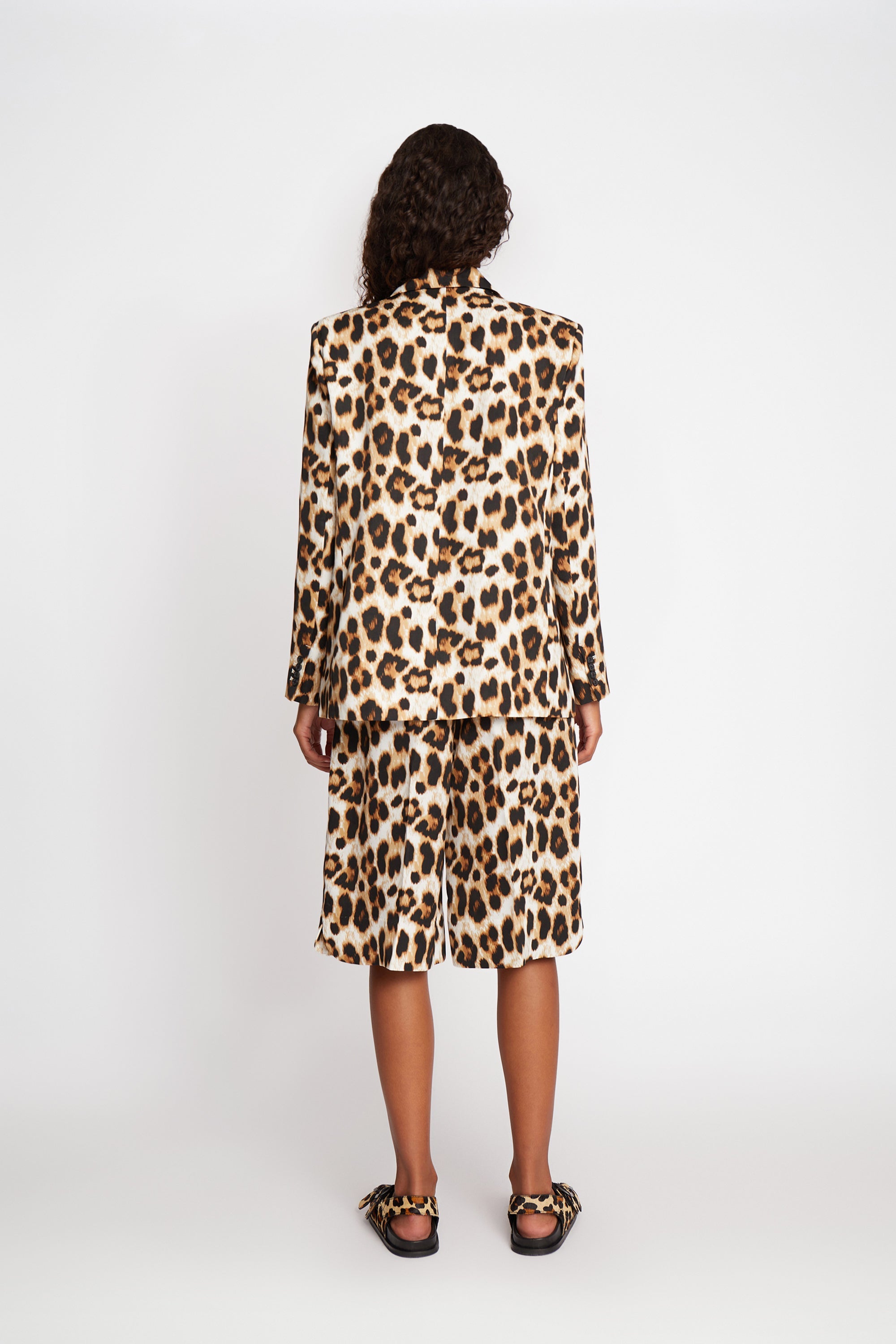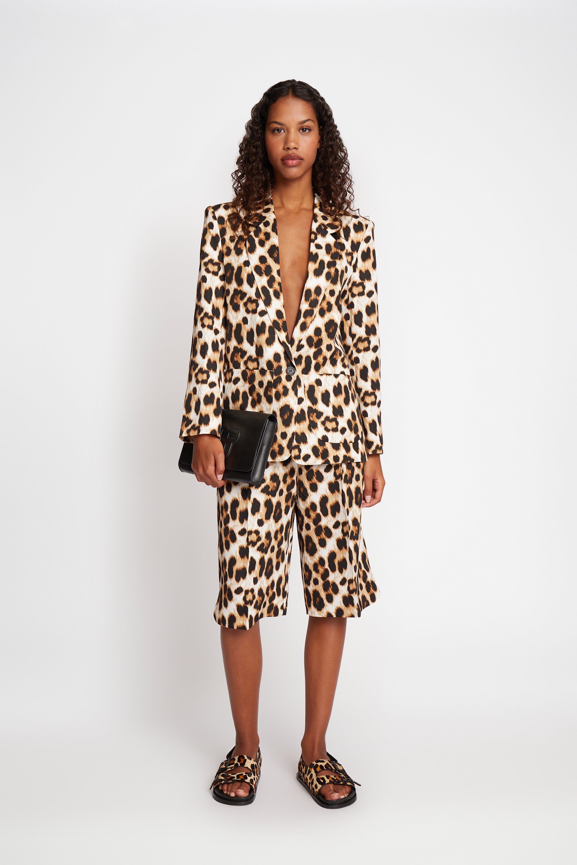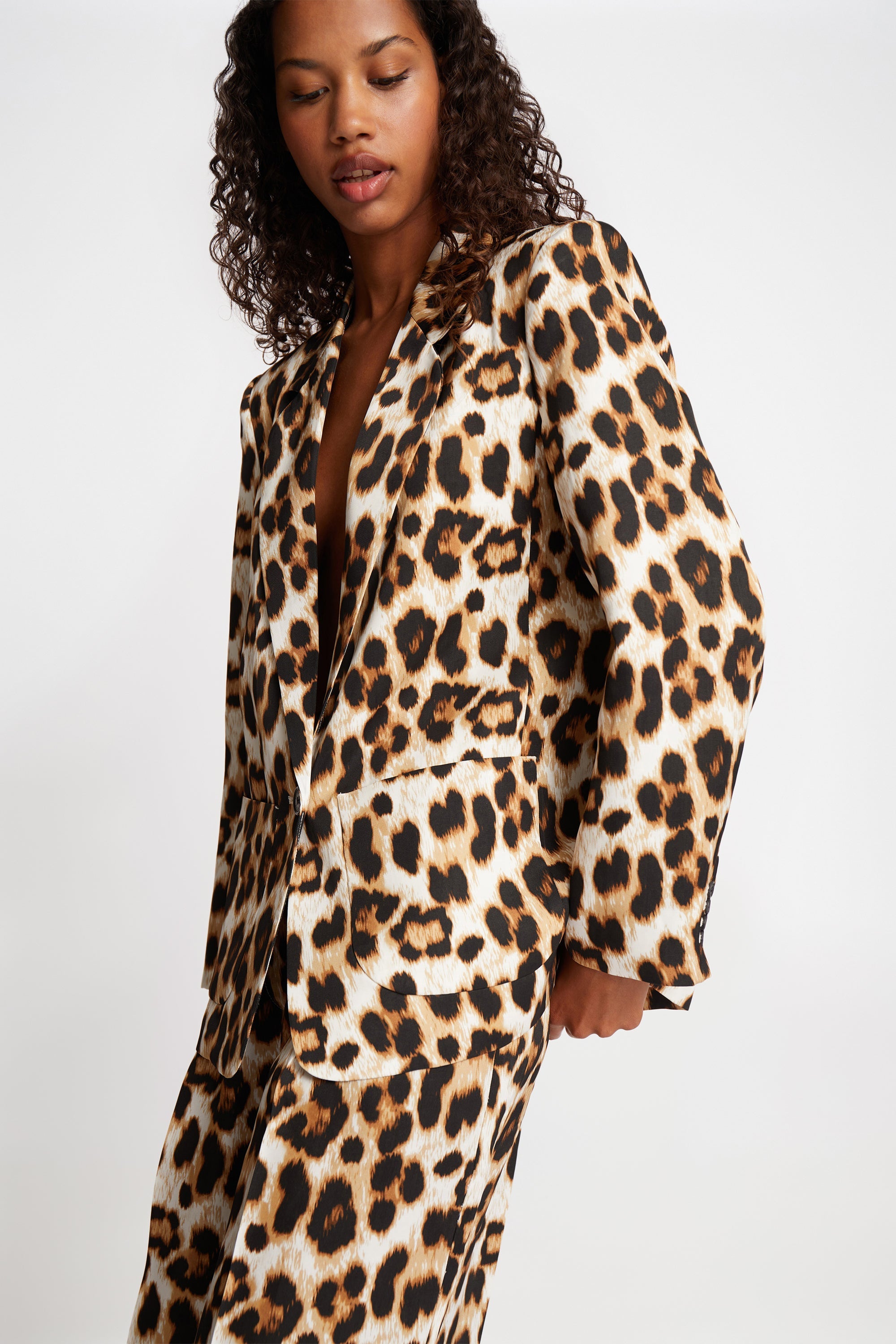 Blazer med et smukt all-over leo print, med elegante lommer og en enkelt knap lukning. Jakken er designet med et fint nålestribet for.